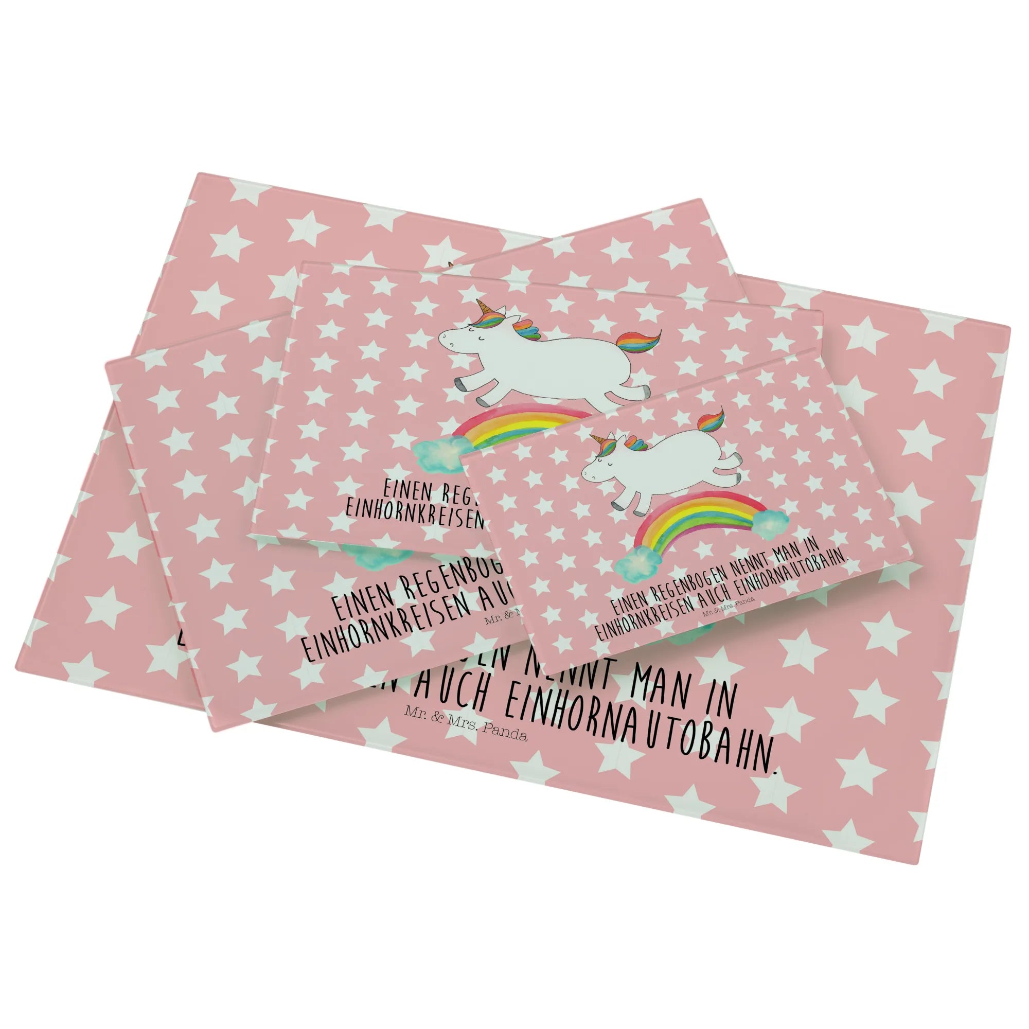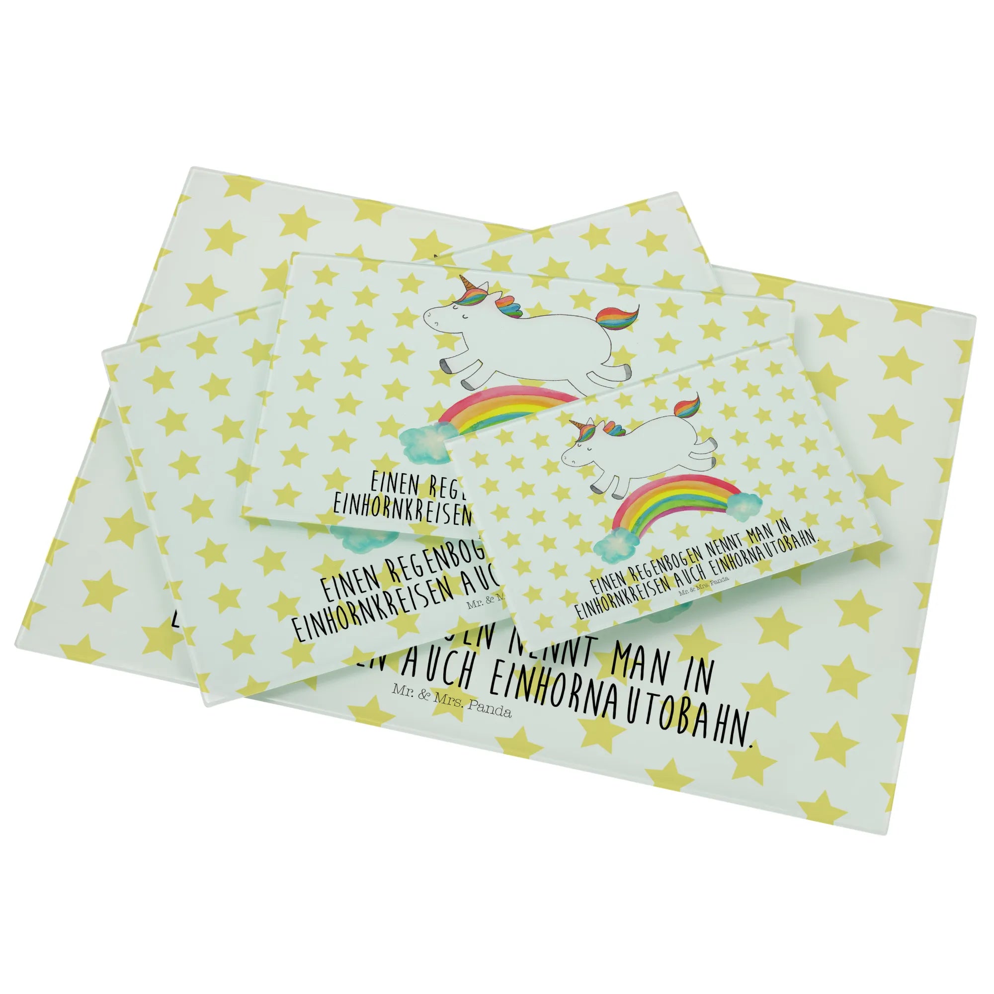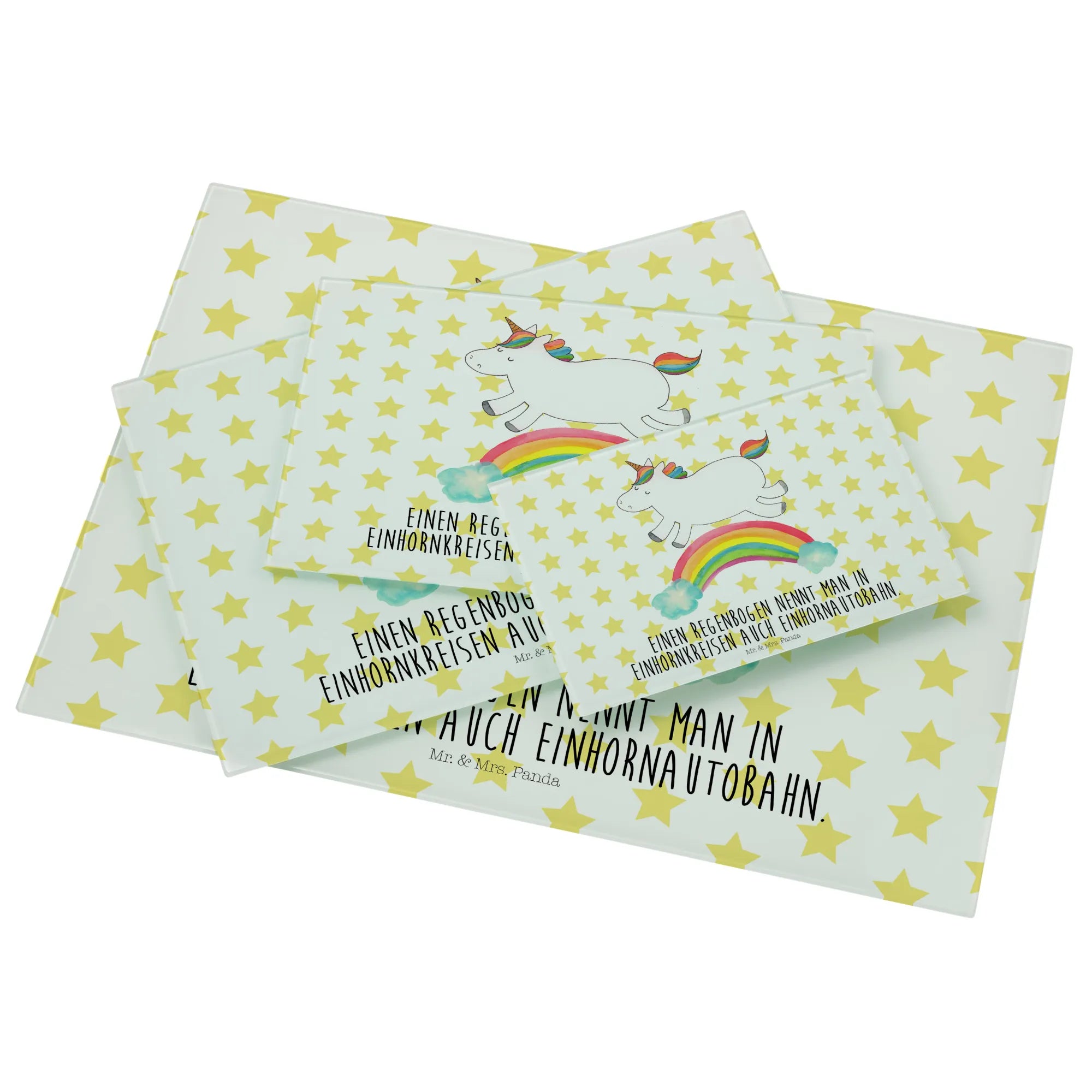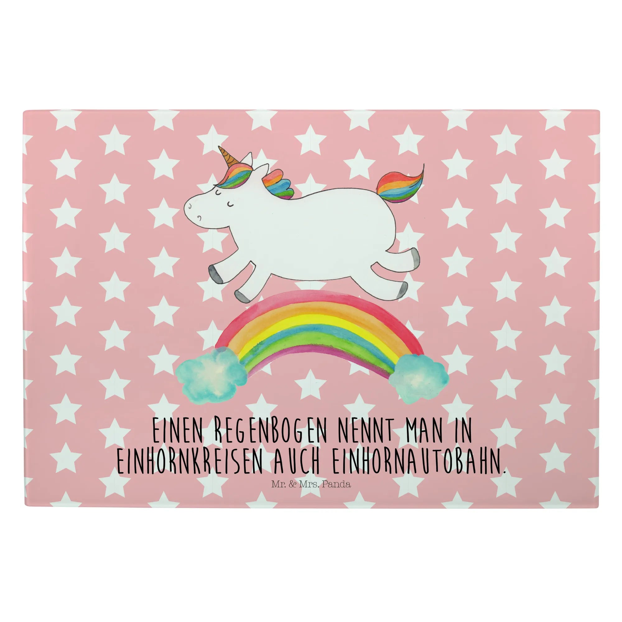 Das Einhorn Motiv ist besonders bei Erwachsenen beliebt, die sich gerne an die zauberhafte Kindheit erinnern, in der Einhörner die Helden ihrer Geschichten waren. Mit einem süßen Motto, dass jedes Herz erwärmt, ist das Medium Glas Schneidbrett von Mr. & Mrs. Panda das perfekte Geschenk für wissbegierige Freunde: "Einen Regenbogen nennt man in Einhornkreisen auch Einhornautobahn." Egal ob du es kaufst, um es zu verschenken oder es selbst nutzen möchtest, es wird definitiv für Freude und Staunen sorgen.