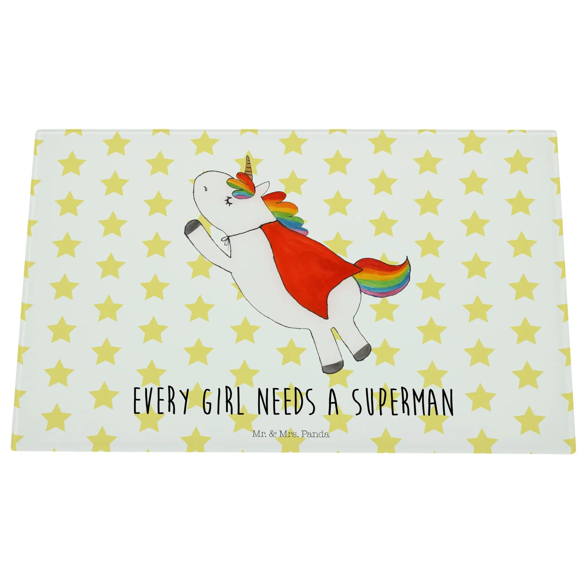 Das XL Glas Schneidbrett mit dem bezaubernden Motiv "Einhorn Super" von Mr. & Mrs. Panda ist die perfekte Ergänzung für jede Küche!