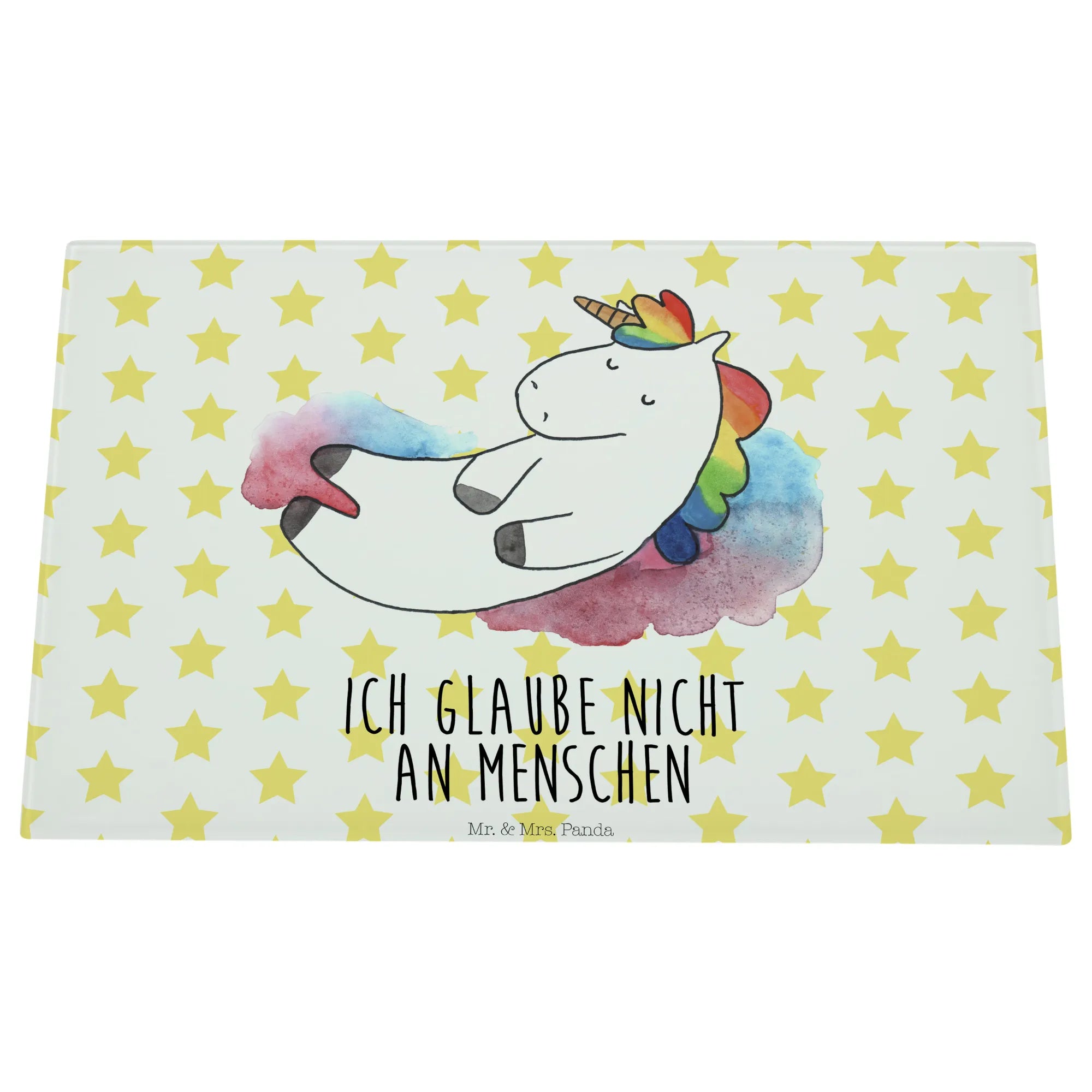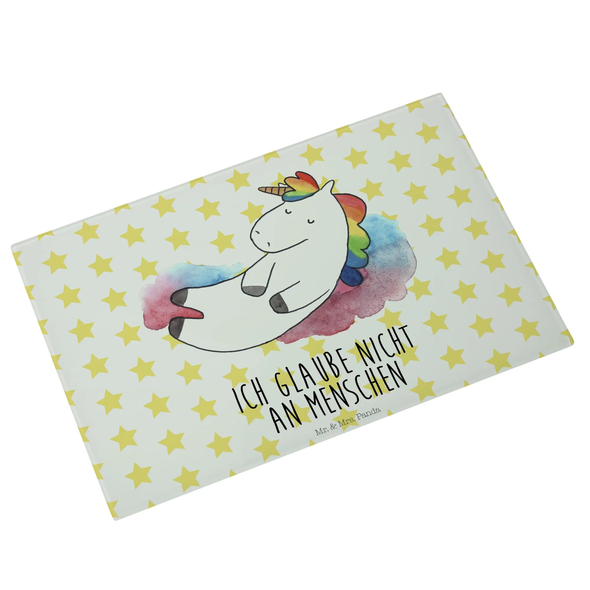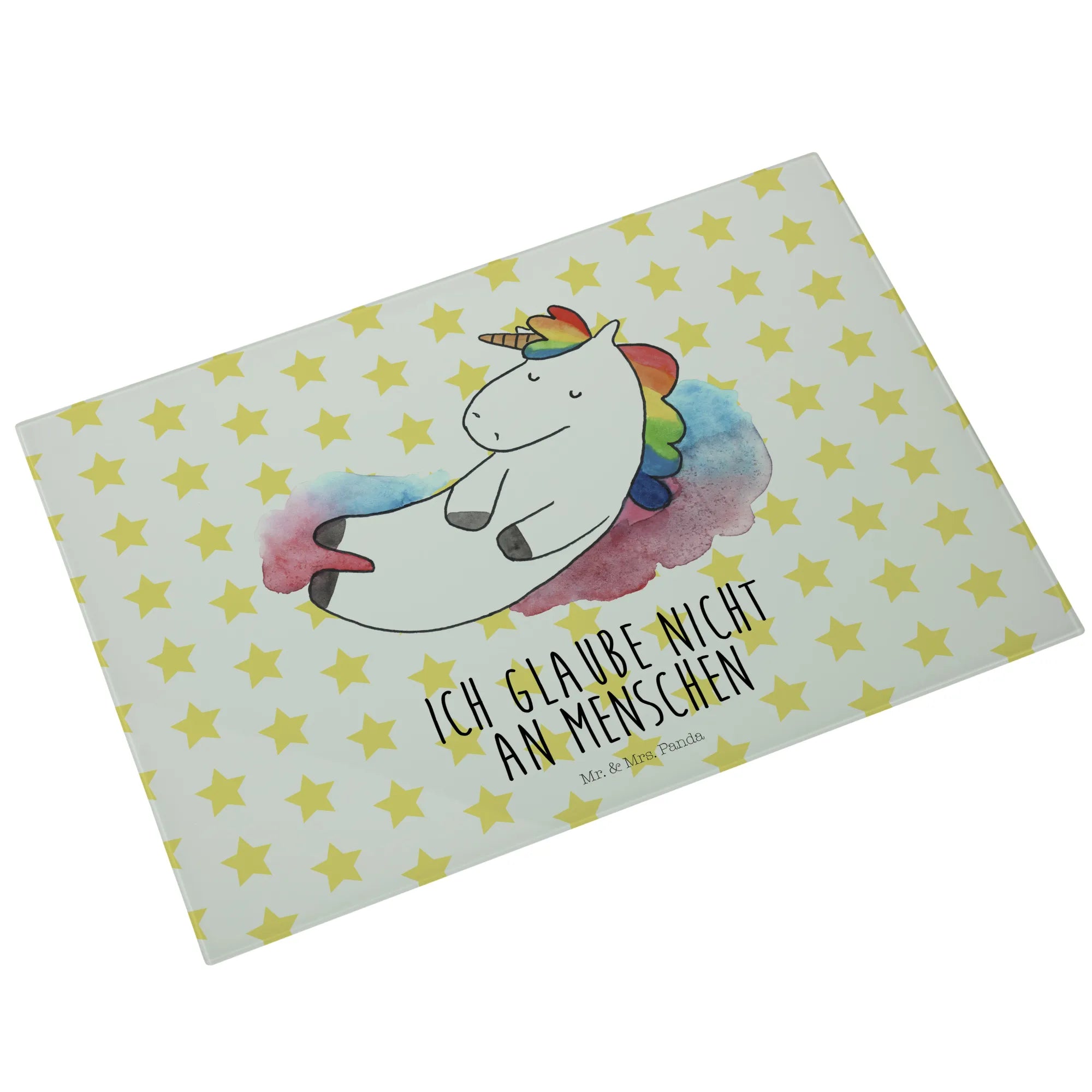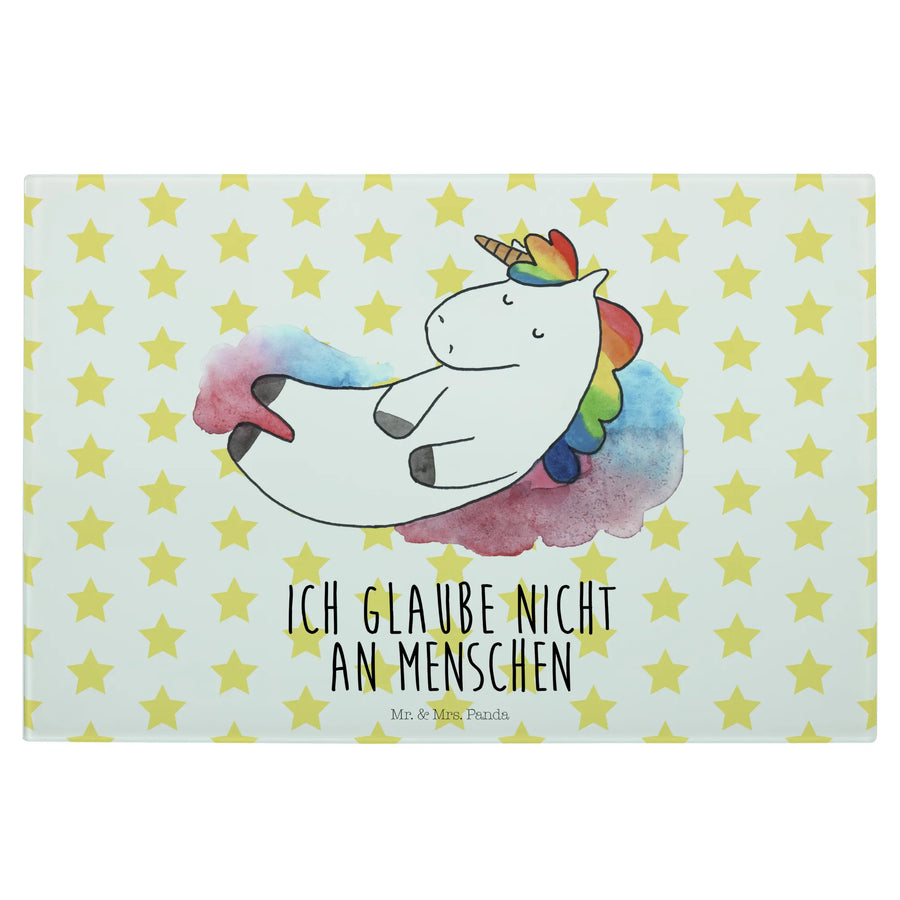 Das Medium Glas Schneidbrett "Einhorn Wolke 7" von Mr. & Mrs. Panda ist das perfekte Geschenk für alle Einhorn-Liebhaber und Küchenzauberer! Mit seinem liebevollen Design zaubert es jedem, der es sieht, ein Lächeln ins Gesicht. Das entspannte Einhorn, das auf seiner Wolke schwebt, trägt den witzigen Spruch "Ich glaube nicht an Menschen", der perfekt die entspannte Haltung des Einhorns widerspiegelt.