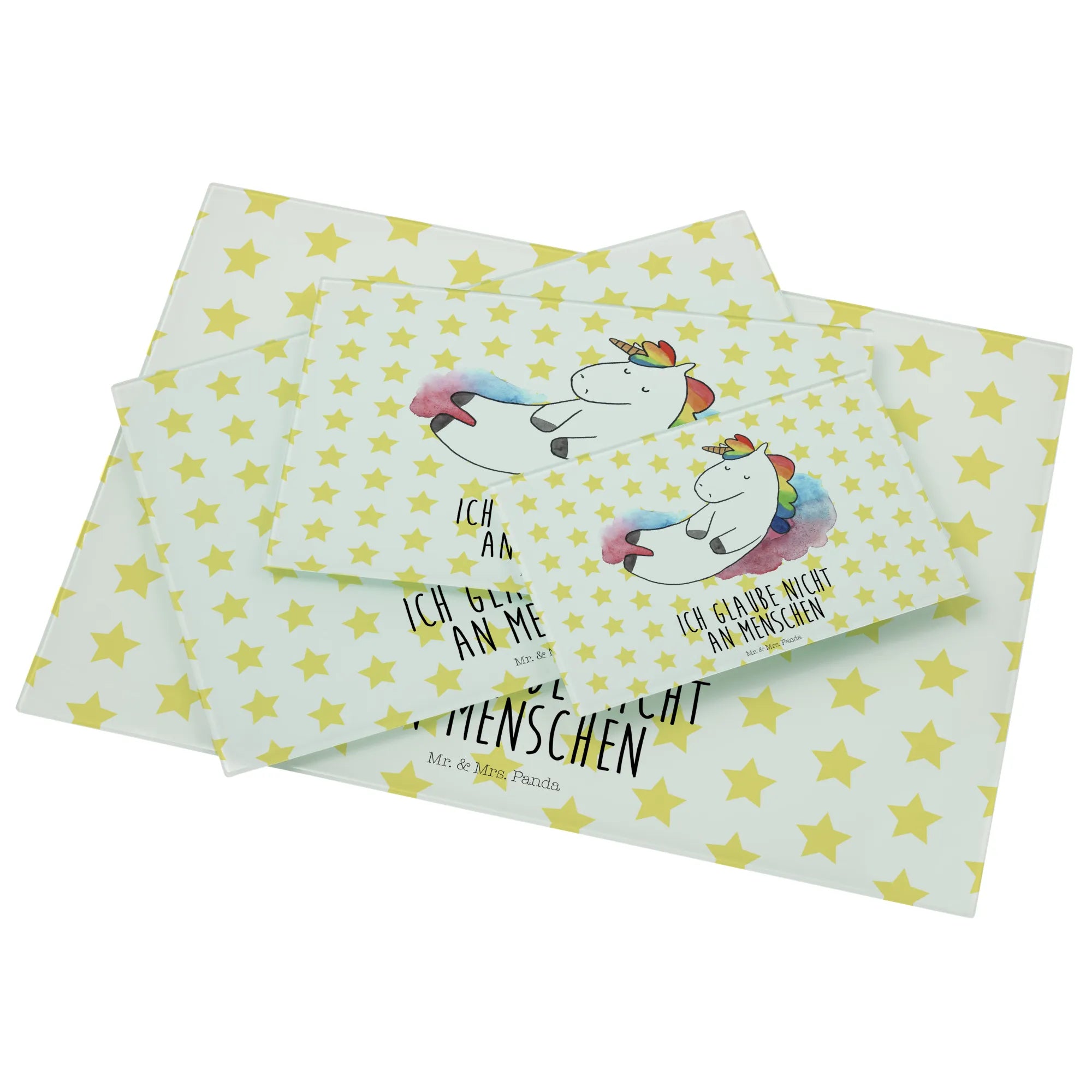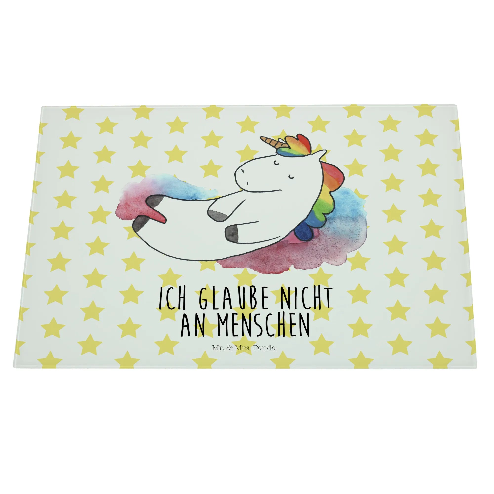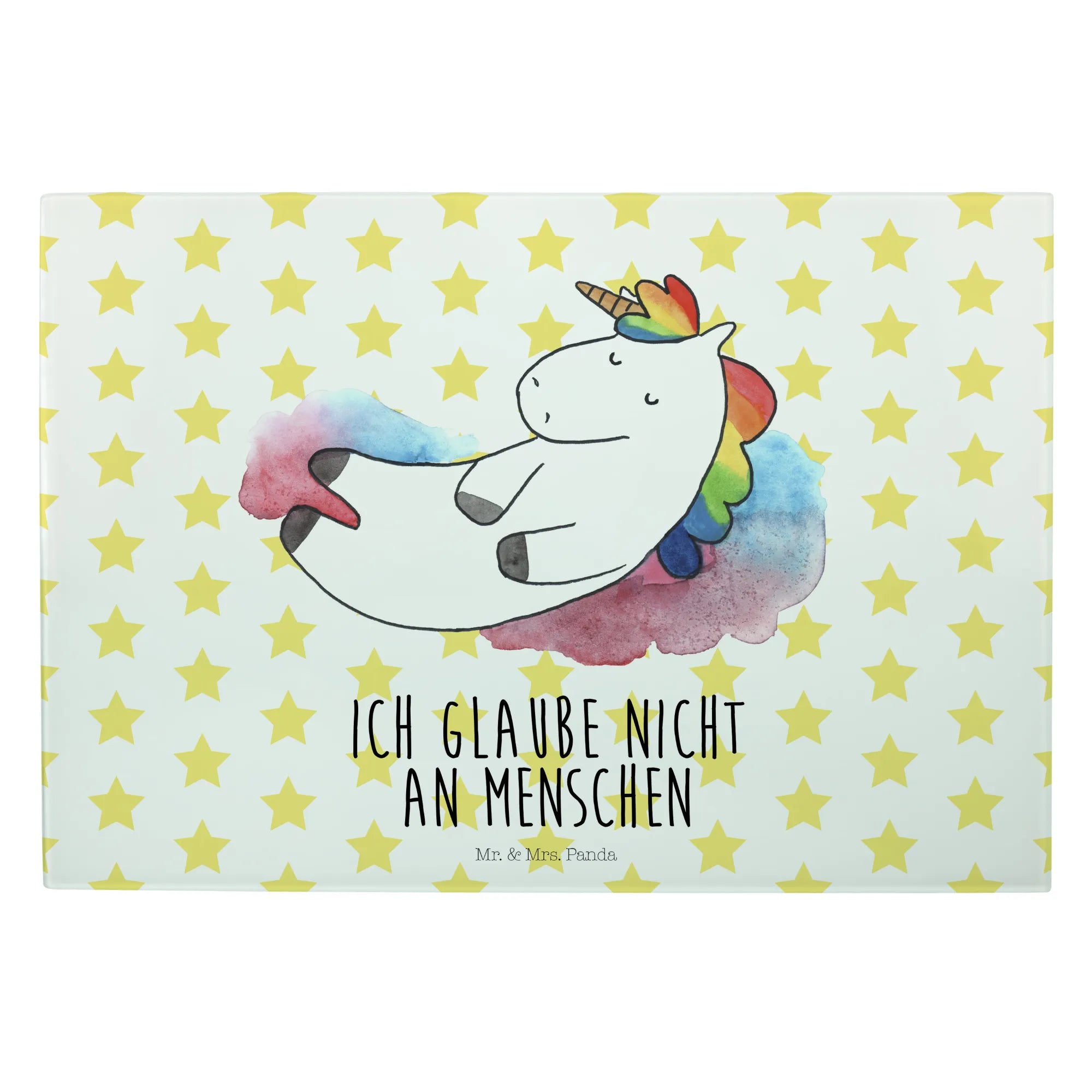 Das Medium Glas Schneidbrett "Einhorn Wolke 7" von Mr. & Mrs. Panda ist das perfekte Geschenk für alle Einhorn-Liebhaber und Küchenzauberer! Mit seinem liebevollen Design zaubert es jedem, der es sieht, ein Lächeln ins Gesicht. Das entspannte Einhorn, das auf seiner Wolke schwebt, trägt den witzigen Spruch "Ich glaube nicht an Menschen", der perfekt die entspannte Haltung des Einhorns widerspiegelt.