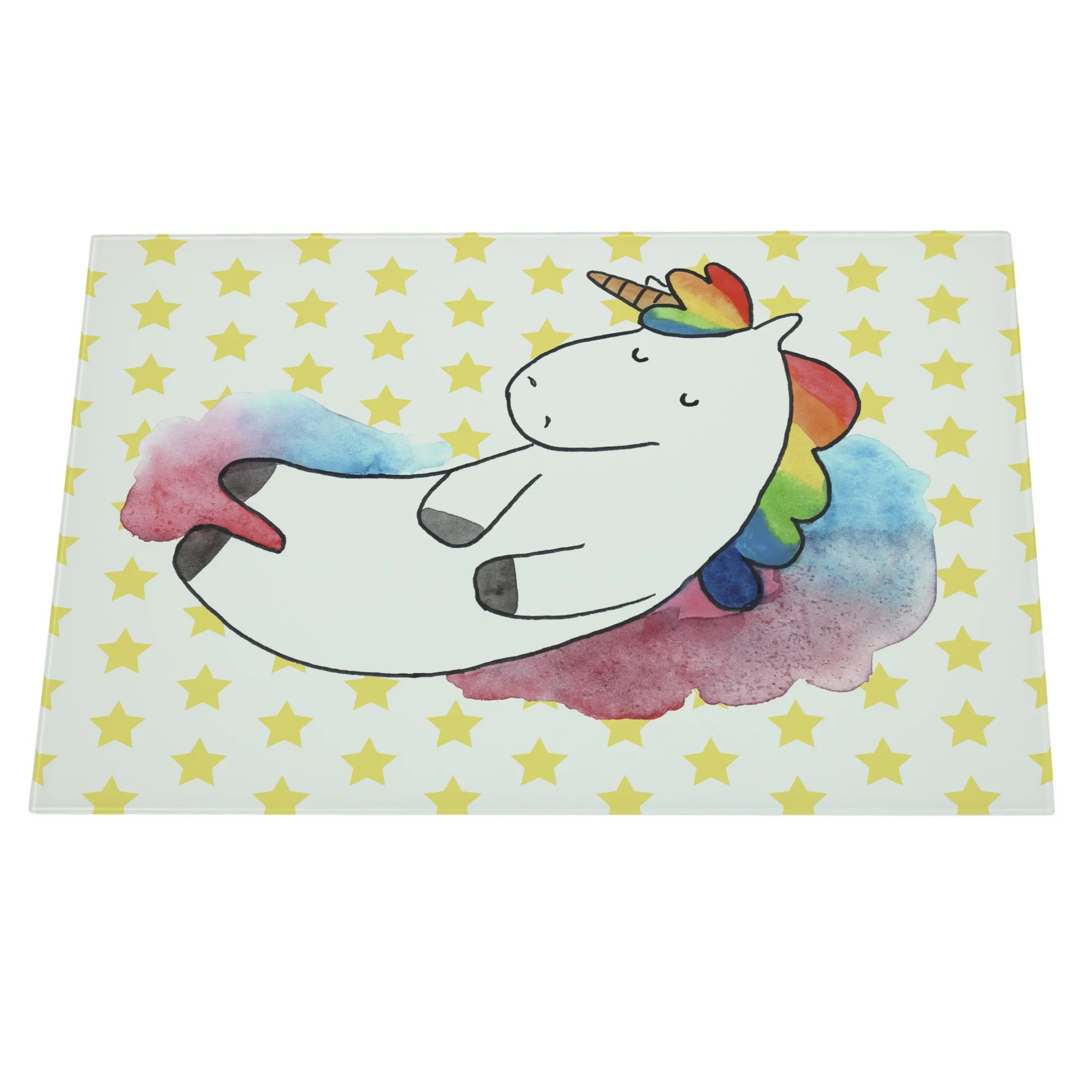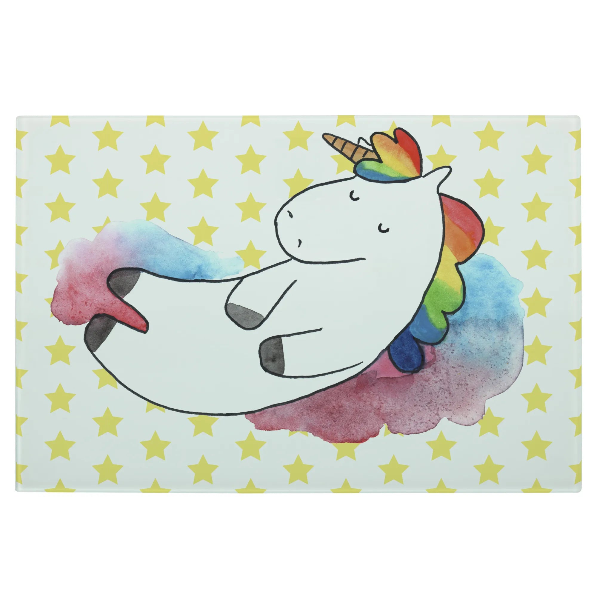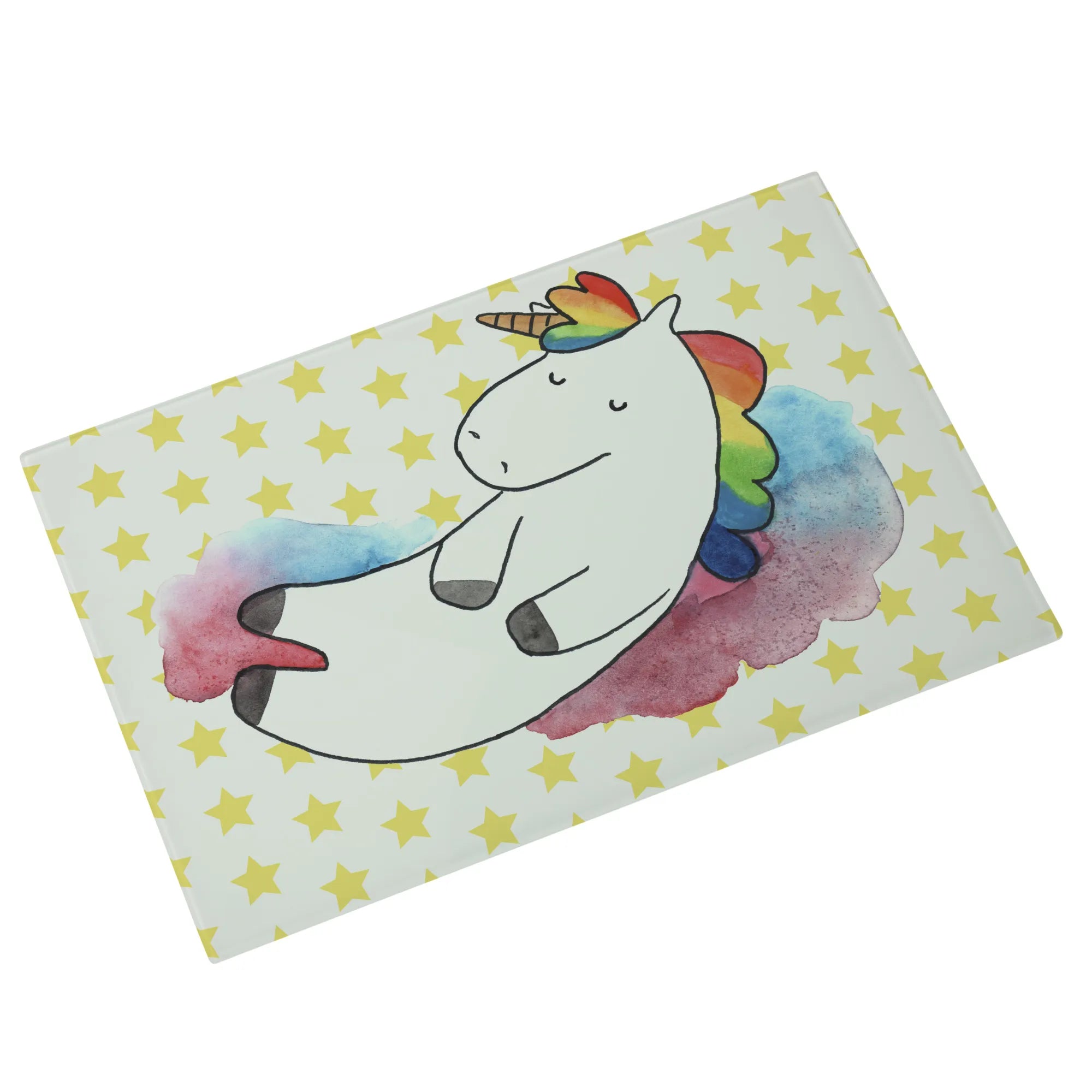Glasschneidebrett Einhorn Wolke 7 - Medium Glas Schneidbrett - mit Spruch - Weiß