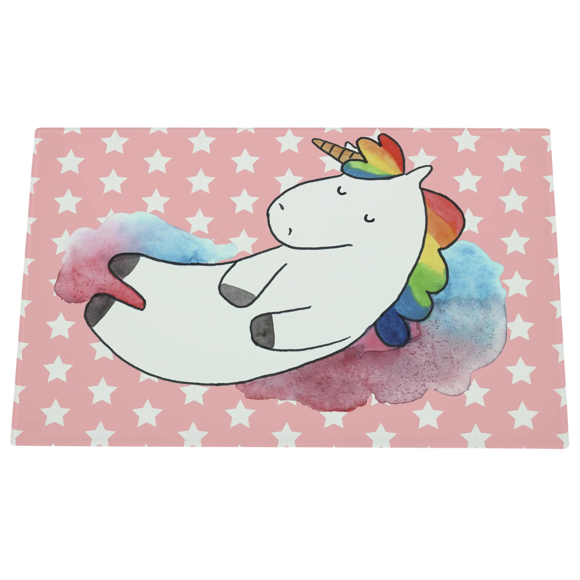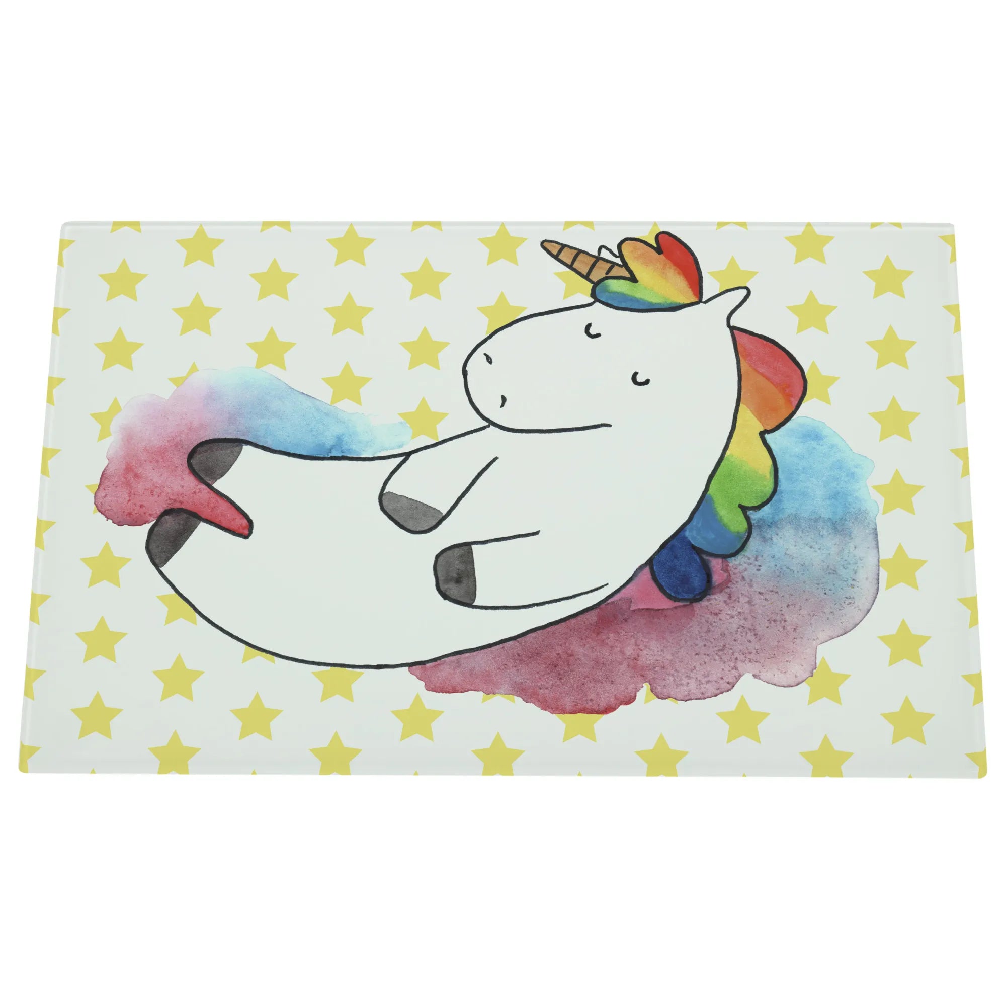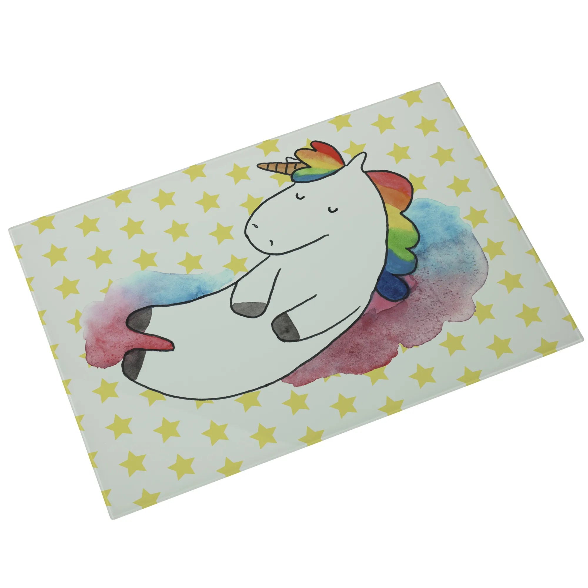 Glasschneidebrett Einhorn Wolke 7 - Medium Glas Schneidbrett - mit Spruch - Weiß