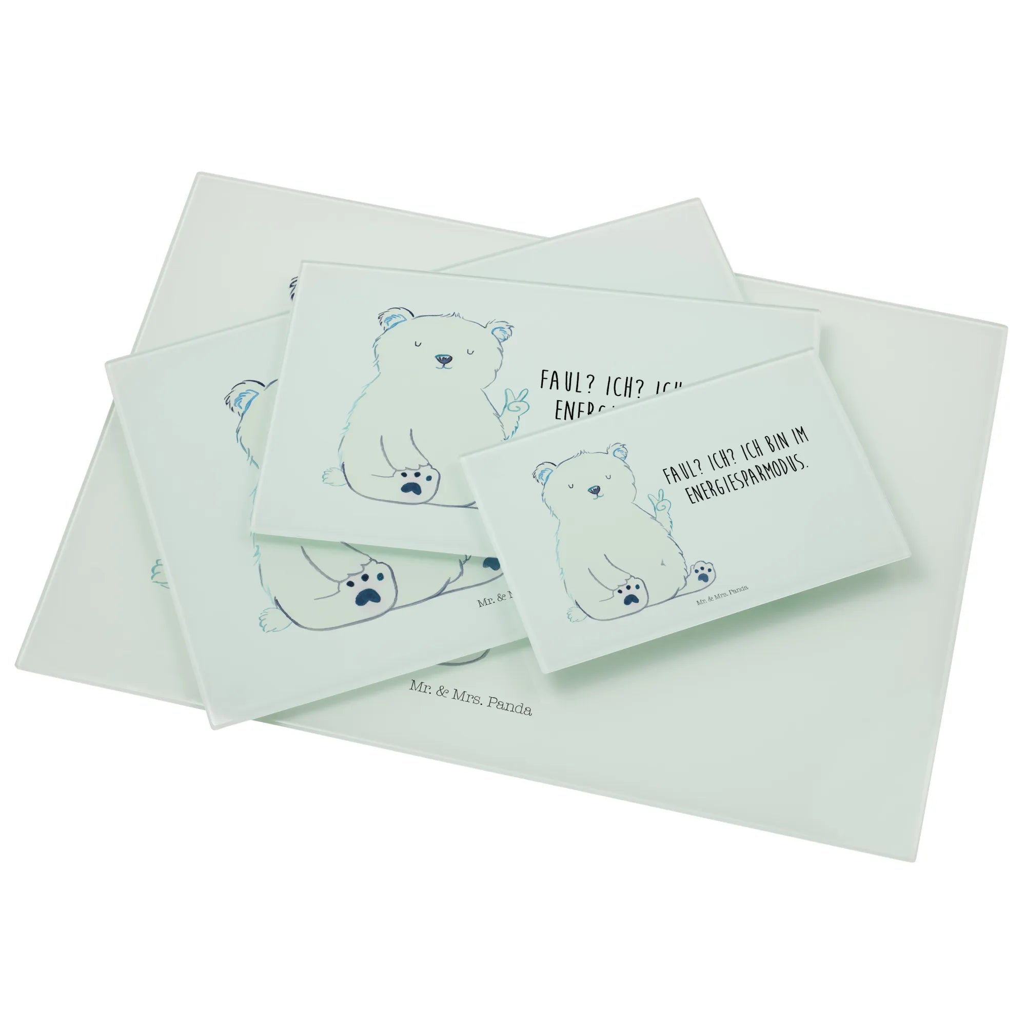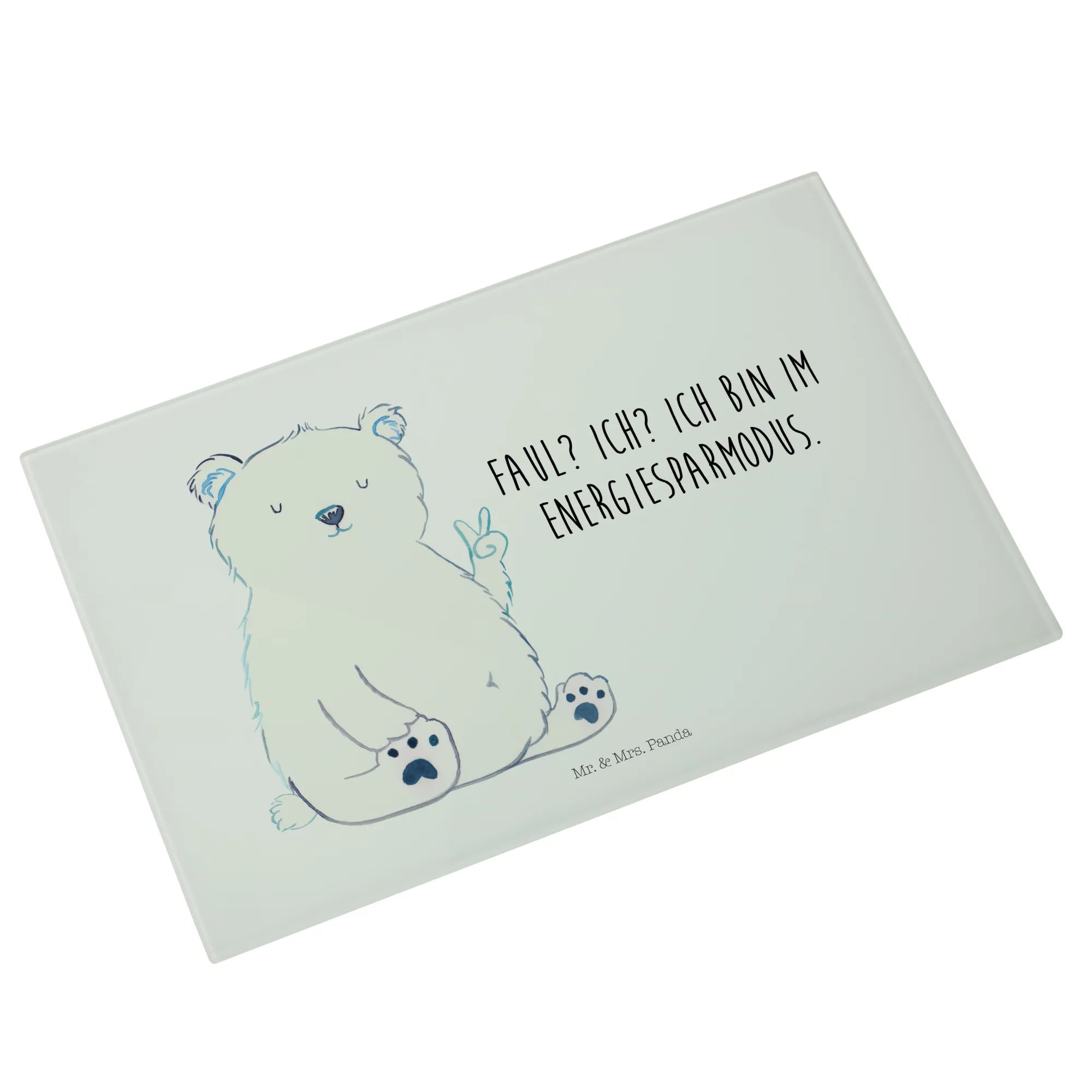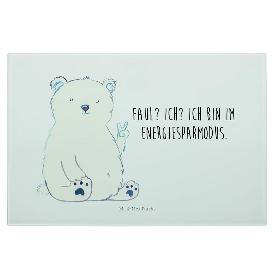 Glasschneidebrett Eisbär Faul - Medium Glas Schneidbrett - mit Spruch - Weiß