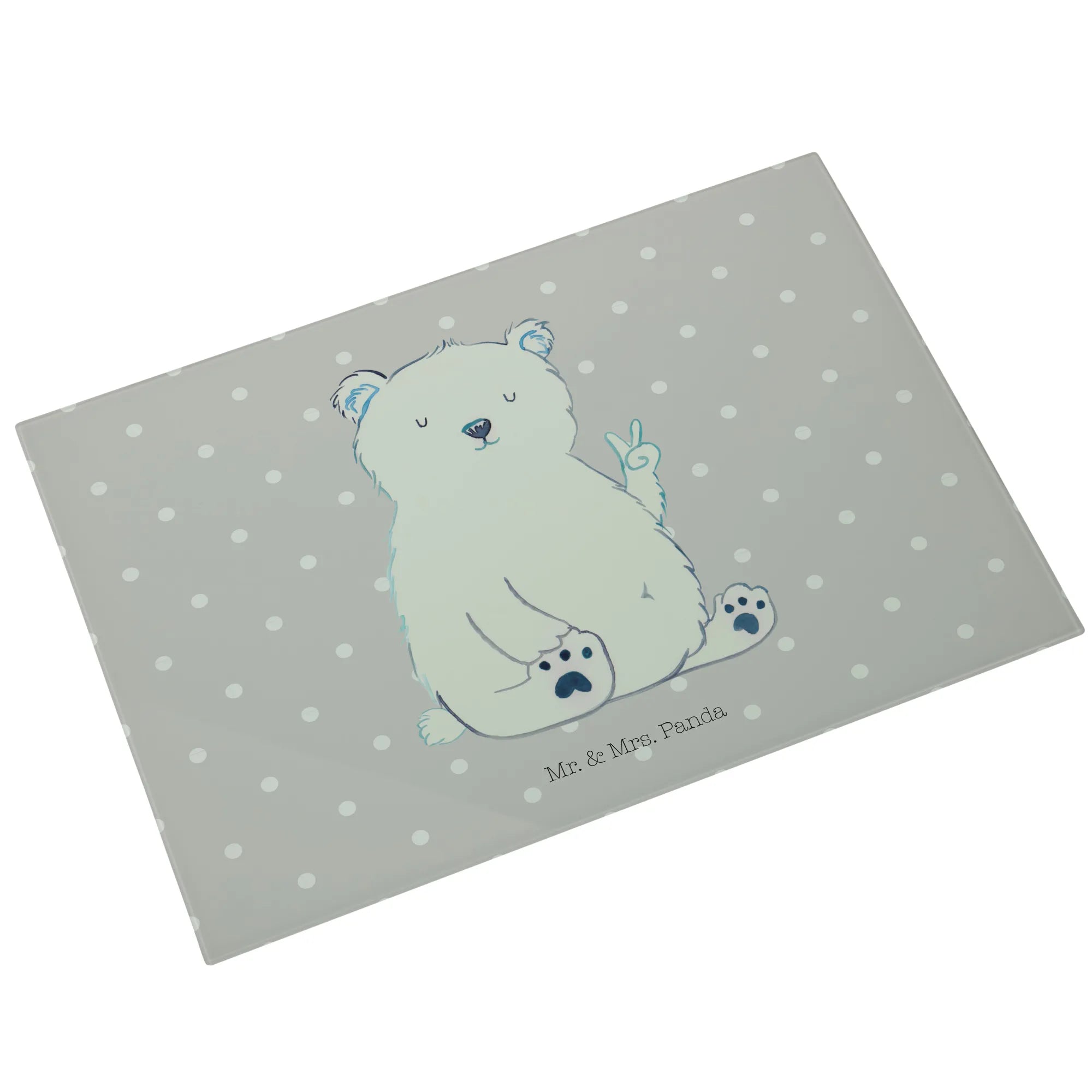 Das XL Glas Schneidbrett Eisbär Faul von Mr. & Mrs. Panda ist nicht nur ein praktisches Küchenutensil, sondern auch ein wunderschönes Dekoobjekt für jedes Zuhause. Mit seinen Maßen von 389 mm x 284 mm x 4 mm bietet es ausreichend Platz für die Vorbereitung deiner Lieblingsgerichte.