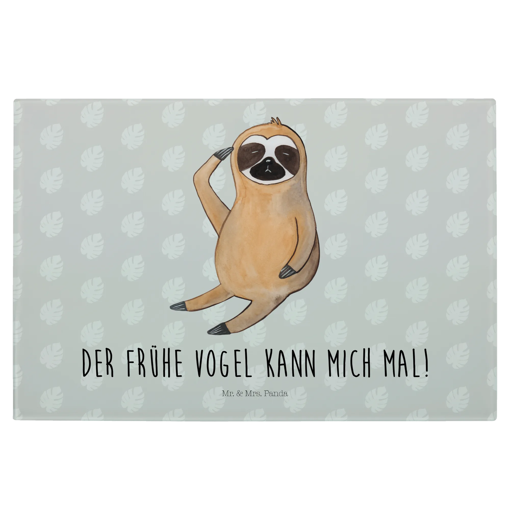 Das süße Faultier, das sich an die Schläfe tippt und der Spruch "Der frühe Vogel kann mich mal!" zaubern jedem ein Lächeln ins Gesicht. Hergestellt aus kratzfestem Glas ist dieses Schneidbrett nicht nur robust und langlebig, sondern auch ein echter Hingucker. Mit seinen praktischen Maßen von 284 mm x 200 mm x 4 mm bietet es genügend Platz für all deine Kochkreationen.