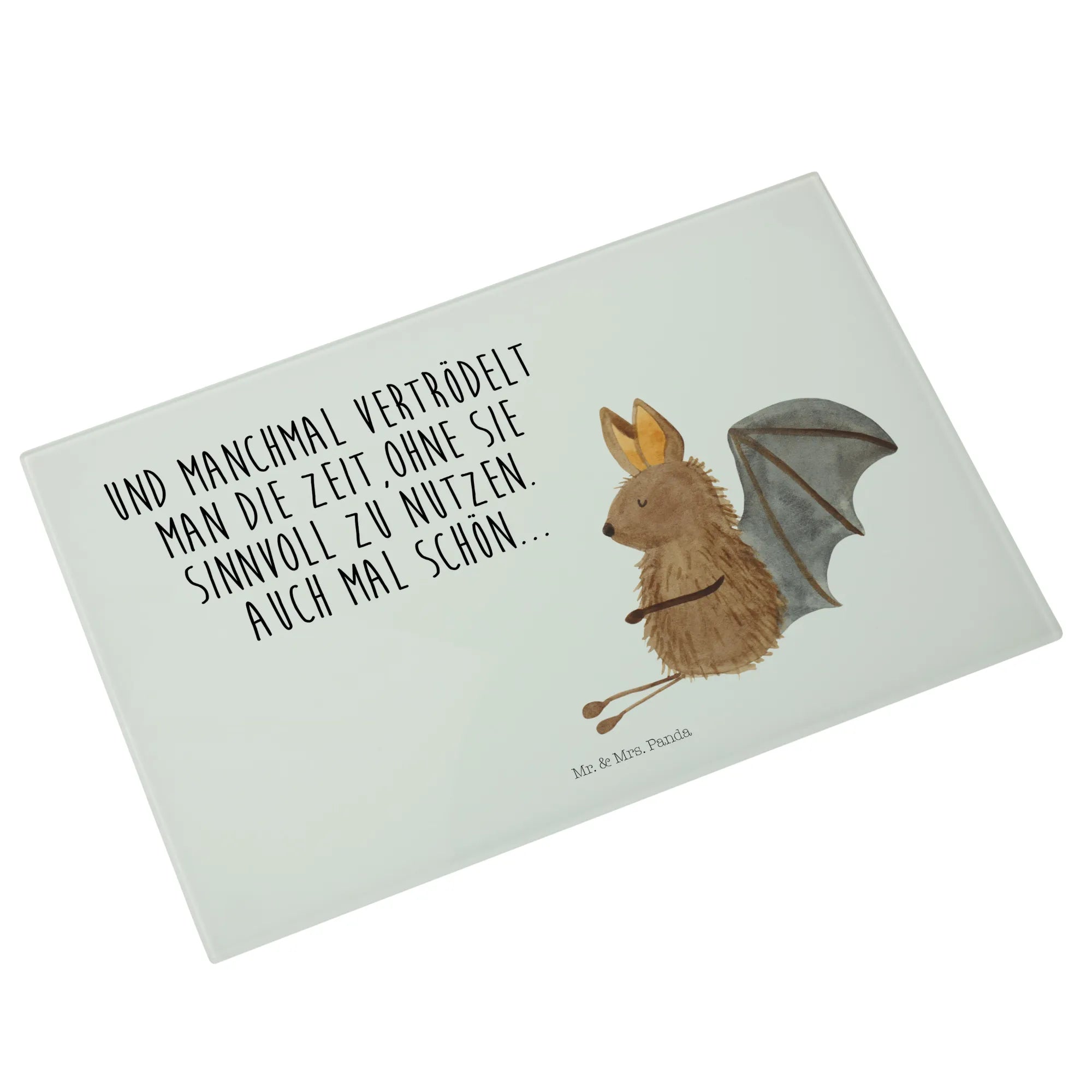 Glasschneidebrett Fledermaus Sitzen - Medium Glas Schneidbrett - mit Spruch - Weiß