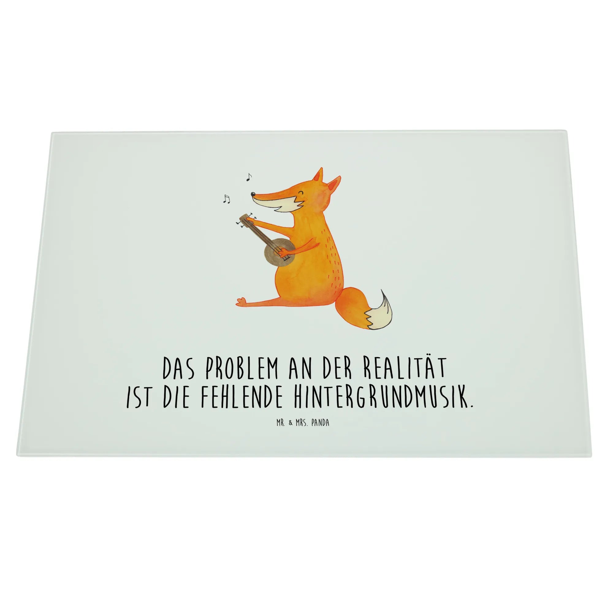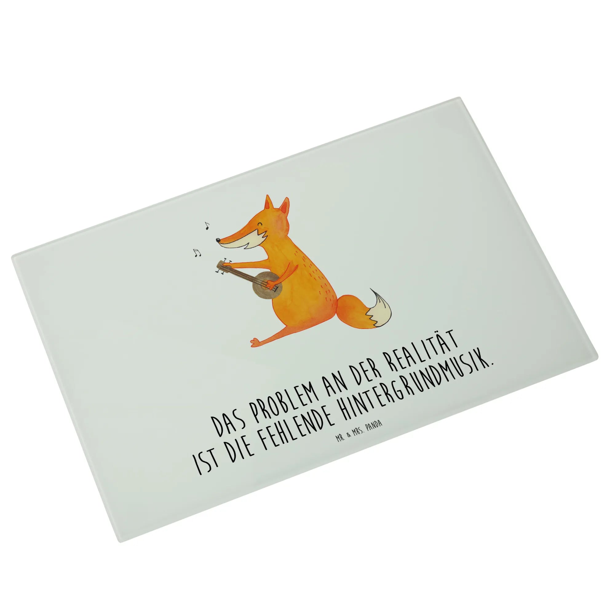 Glasschneidebrett Fuchs Gitarre - Medium Glas Schneidbrett - mit Spruch - Weiß