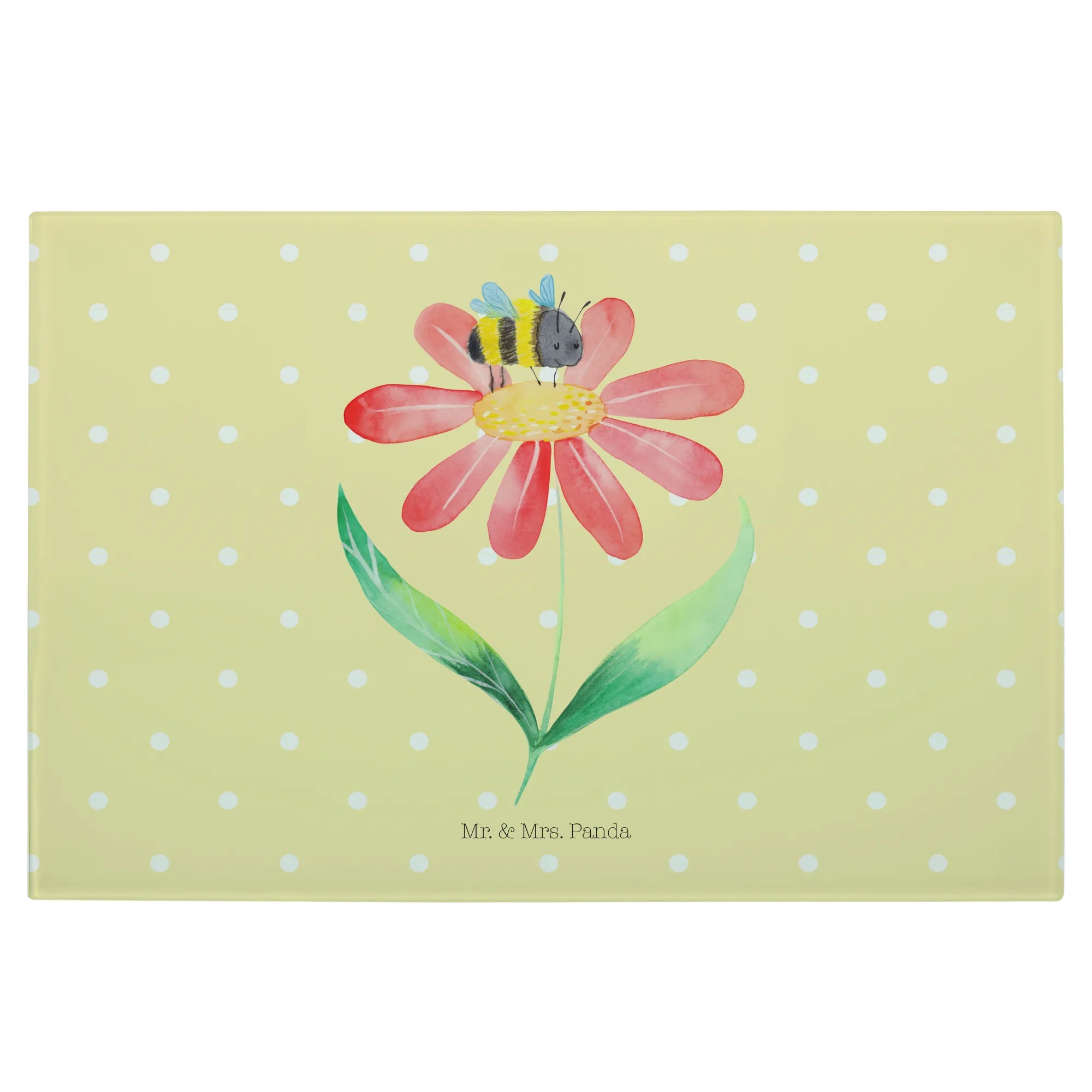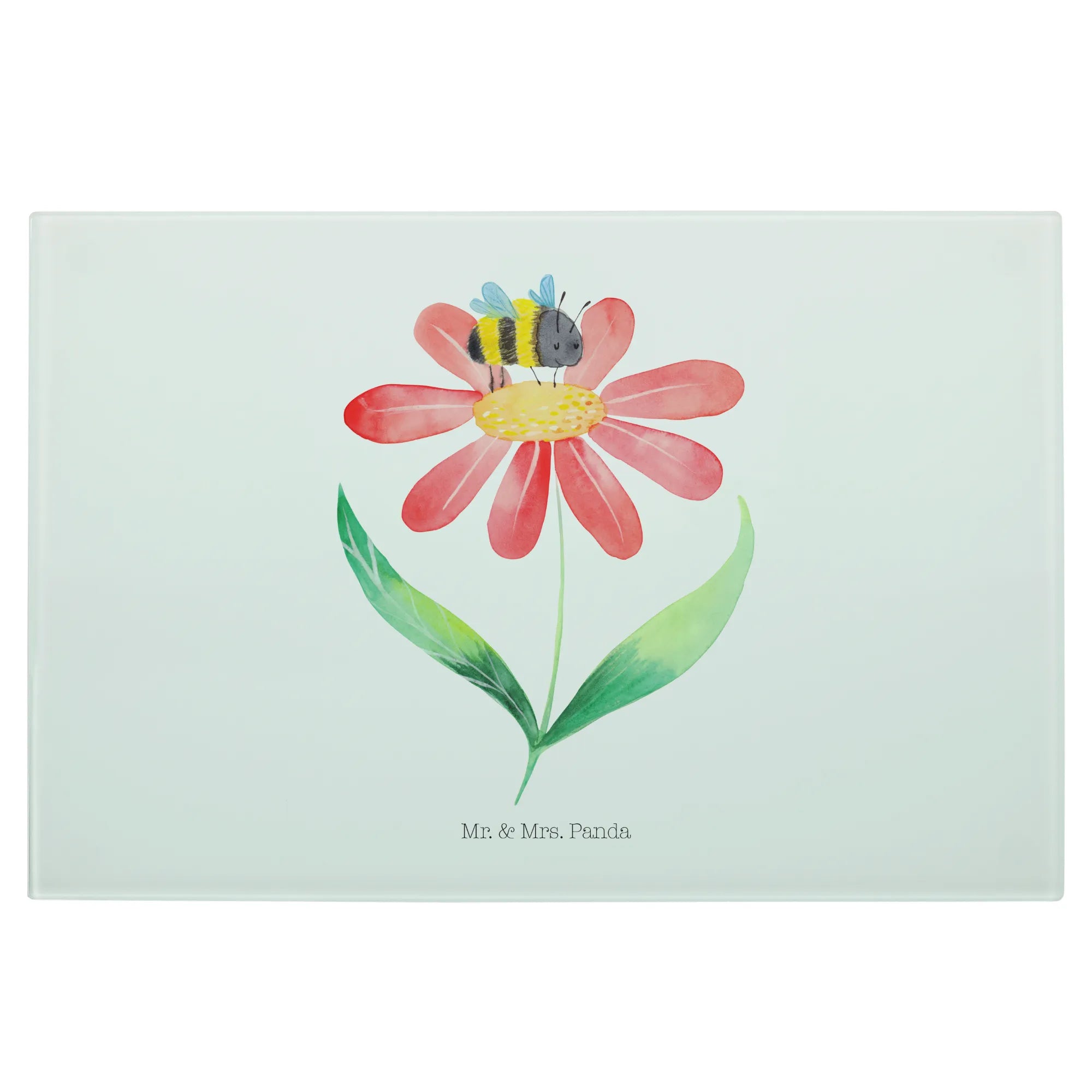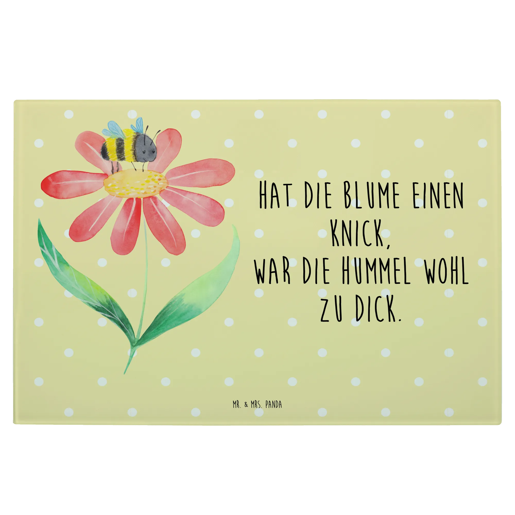 Das Medium Glas Schneidbrett mit dem zauberhaften Motiv Hummel Blume von Mr. & Mrs. Panda ist nicht nur ein echter Blickfang in deiner Küche, sondern auch das perfekte Geschenk für Freunde und Familie!