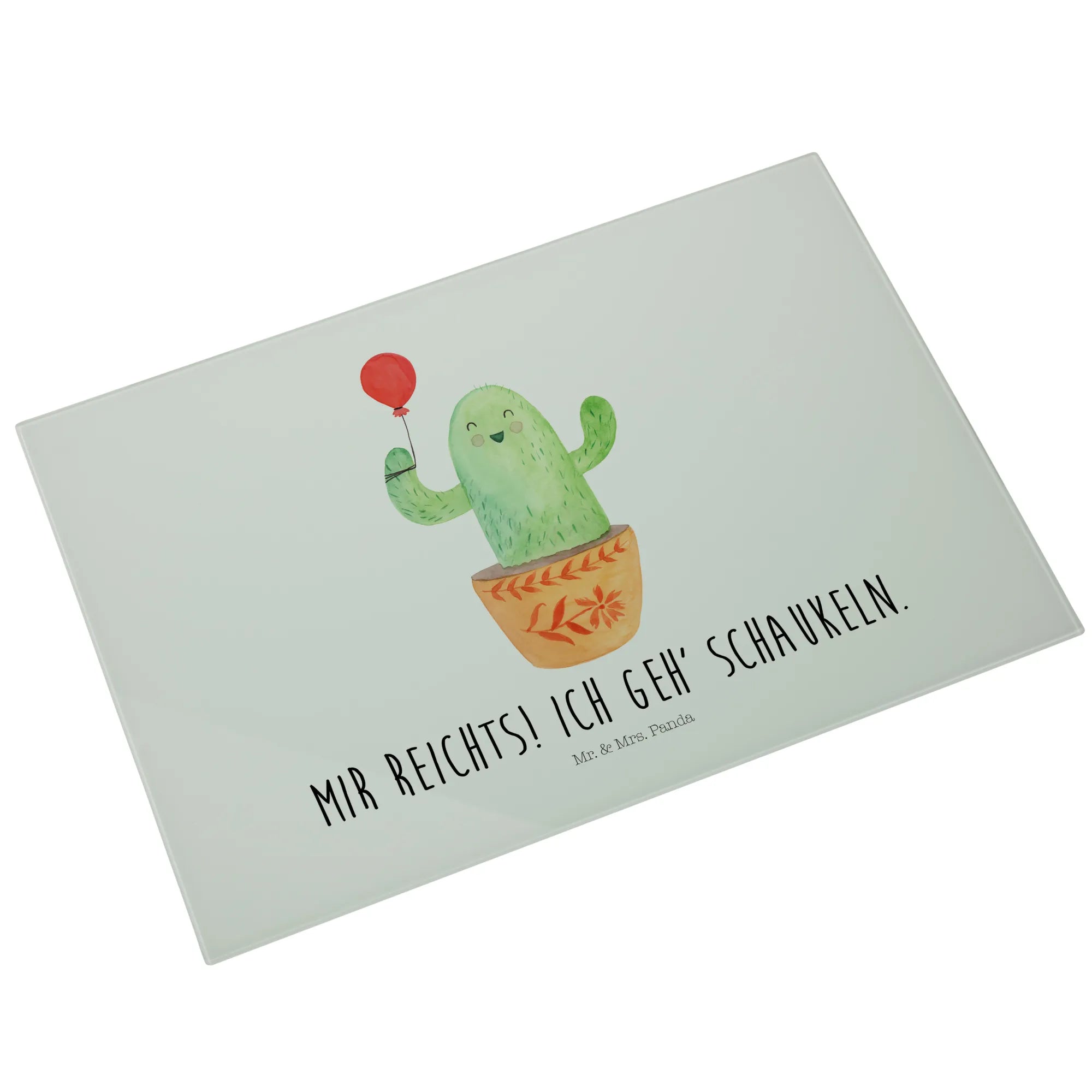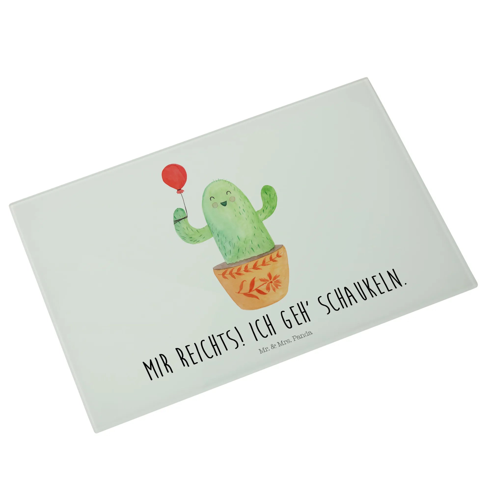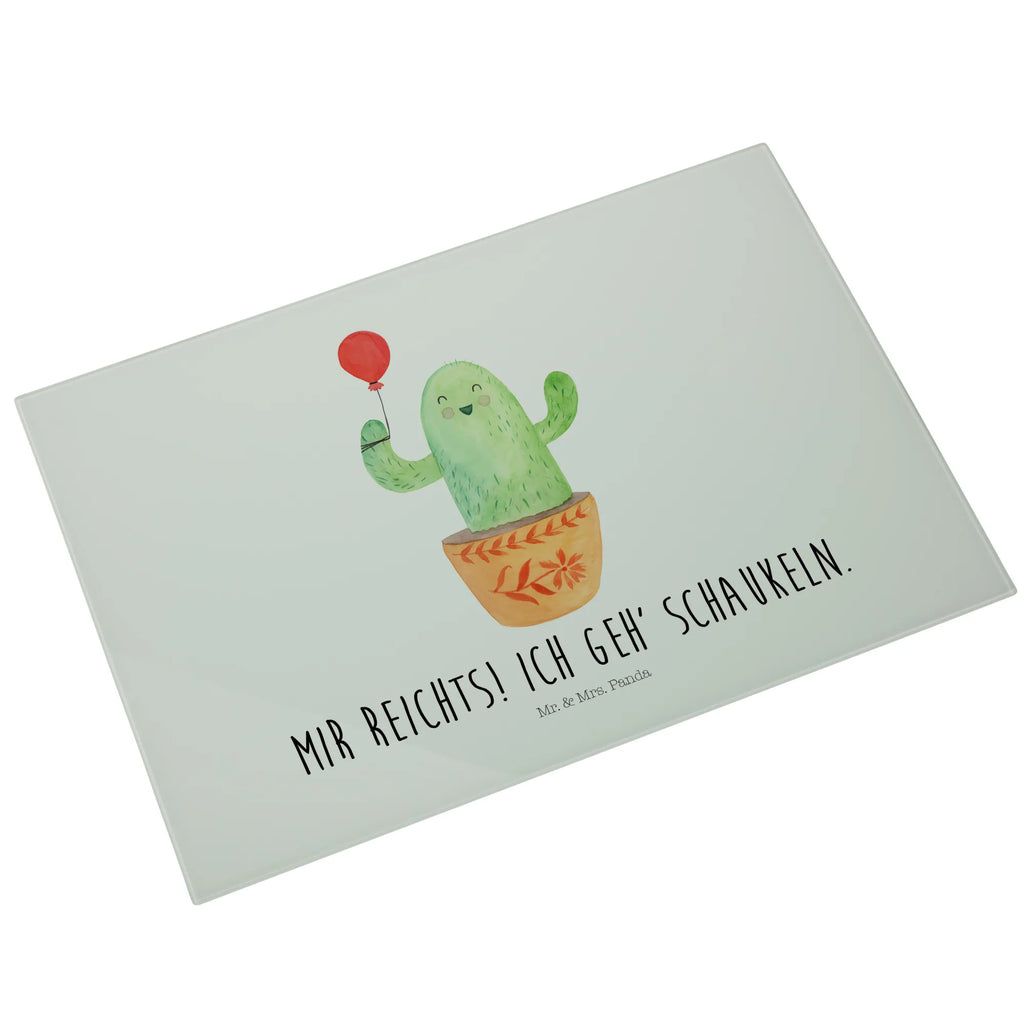 Glasschneidebrett Kaktus Luftballon - Medium Glas Schneidbrett - mit Spruch