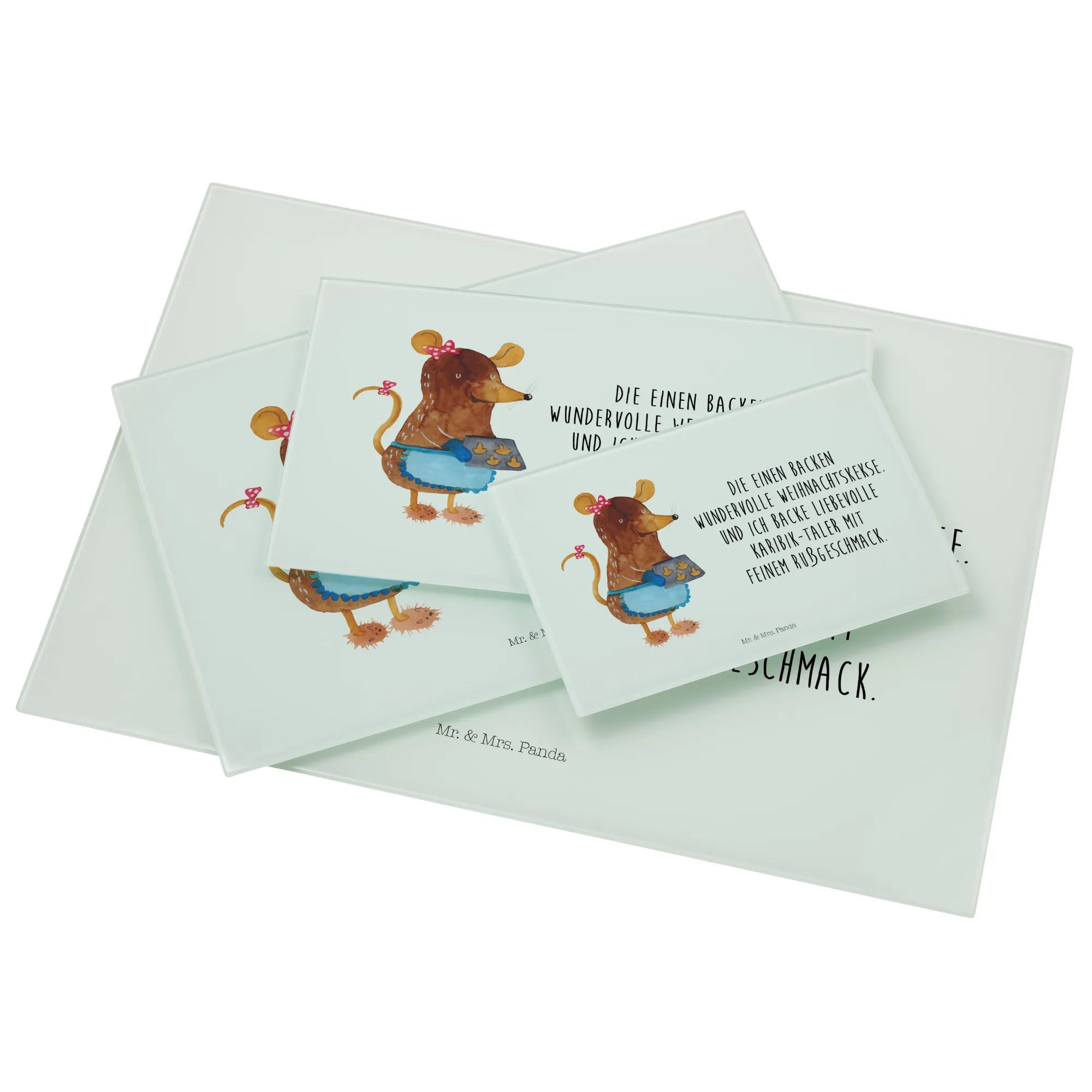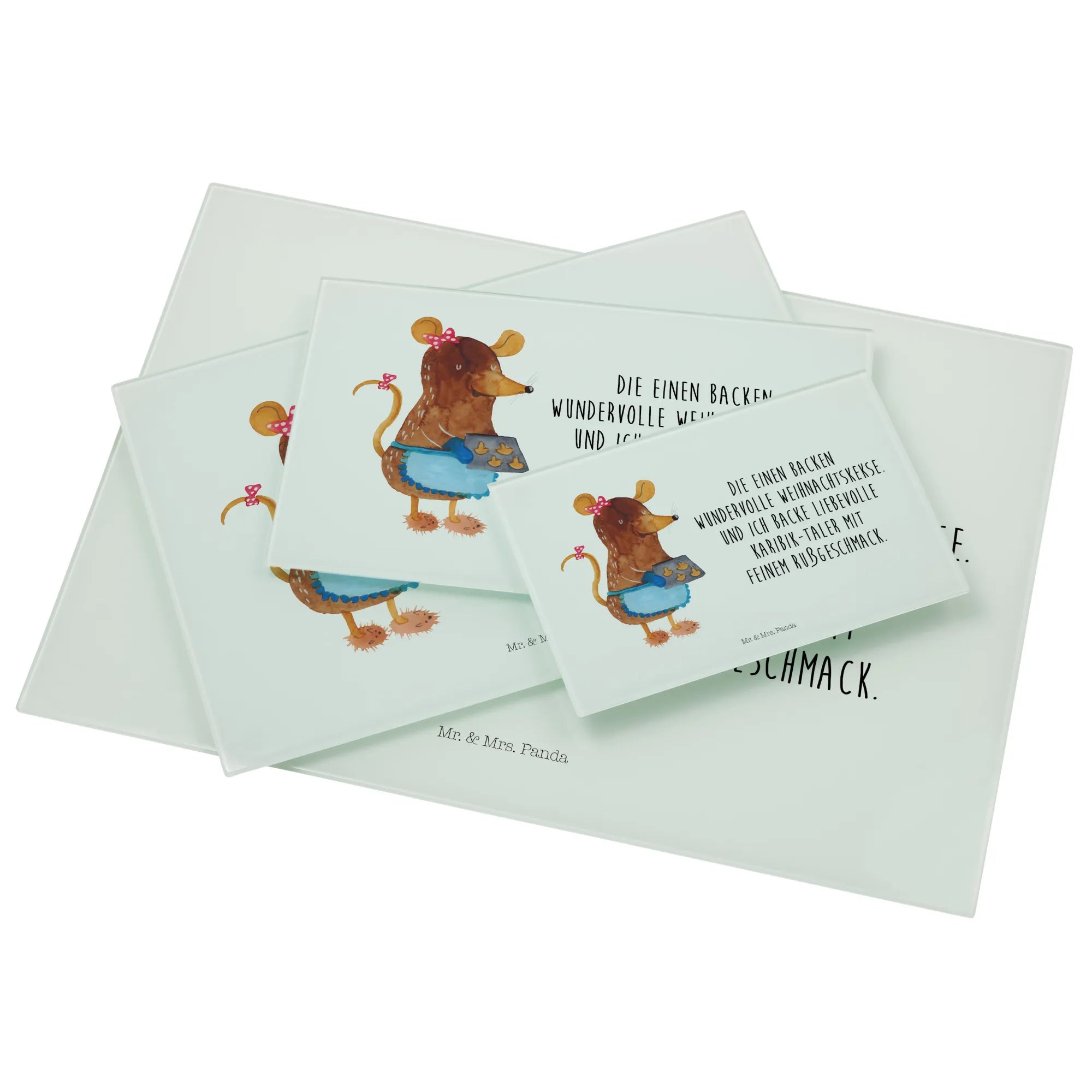 Das XL Glas Schneidbrett mit dem süßen Motiv "Maus Kekse" von Mr. & Mrs. Panda ist das perfekte Geschenk für alle, die die winterliche Backzeit lieben!