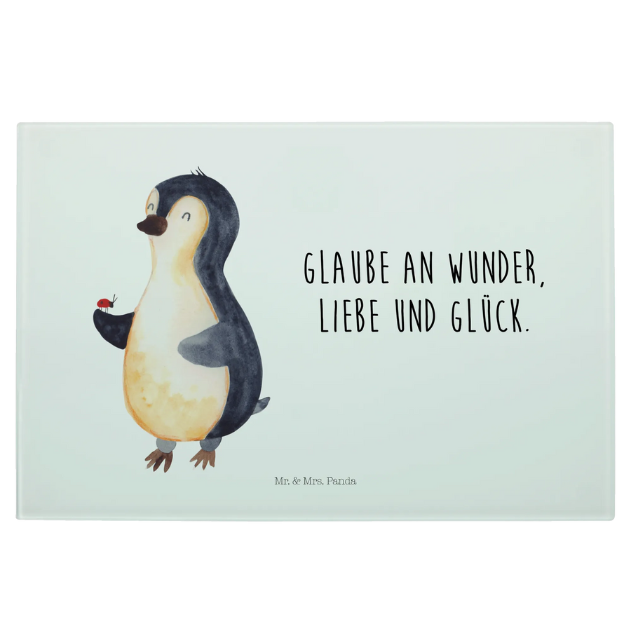 Das Medium Glas Schneidbrett mit dem süßen Pinguin Marienkäfer von Mr. & Mrs. Panda ist das perfekte Geschenk für alle, die Freude und Glück in ihrer Küche verbreiten möchten.