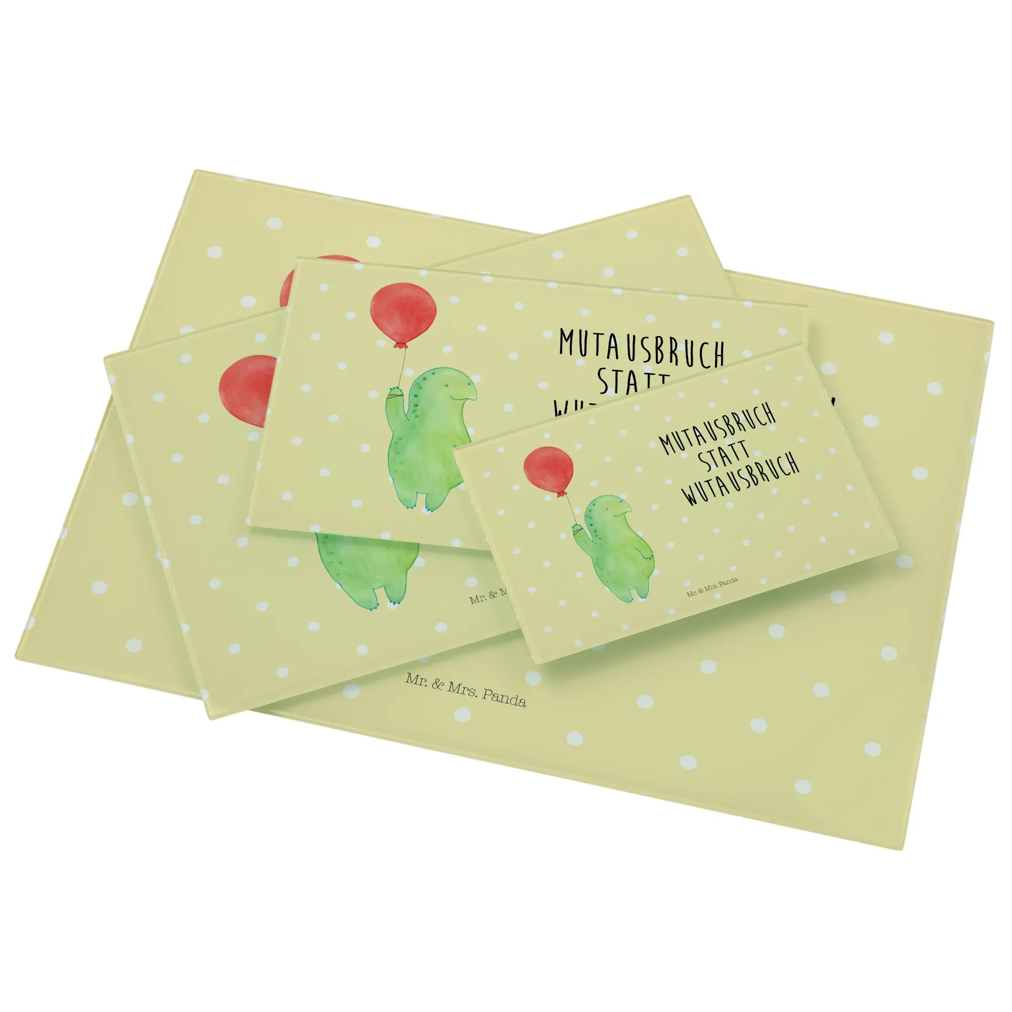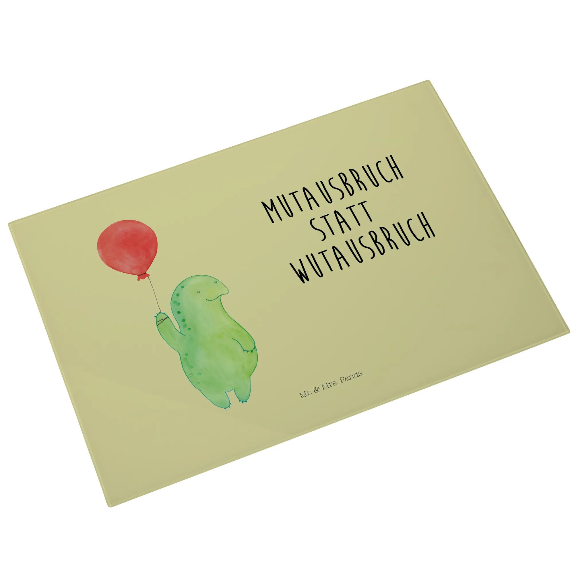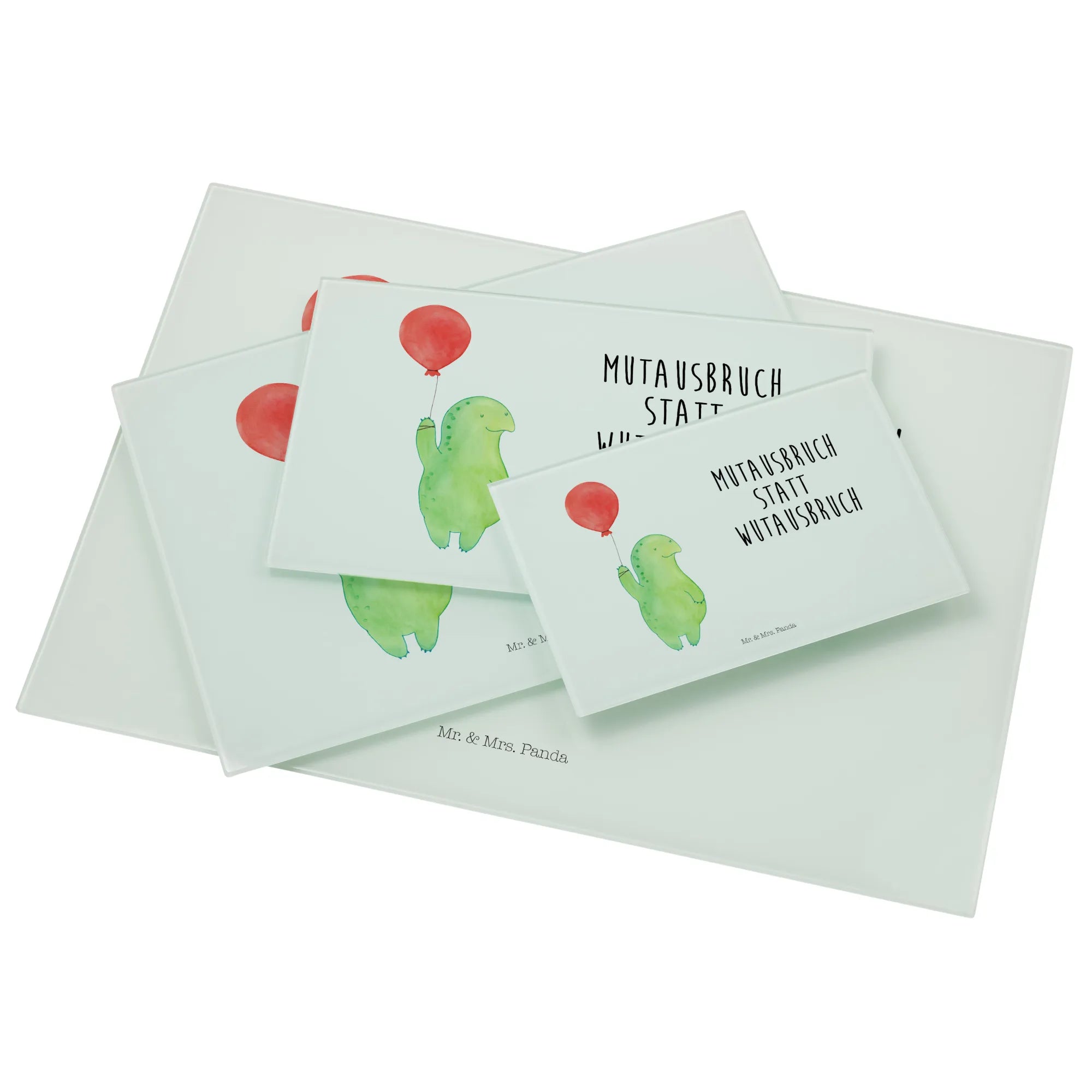 Das XL Glas Schneidbrett mit dem süßen Schildkröten-Motiv 'Luftballon' von Mr. & Mrs. Panda ist das perfekte Geschenk für alle Liebhaber dieser bezaubernden Tiere! Mit seinem einzigartigen Design und dem motivierenden Spruch 'Mutausbruch statt Wutausbruch' bringt es Freude in jede Küche.