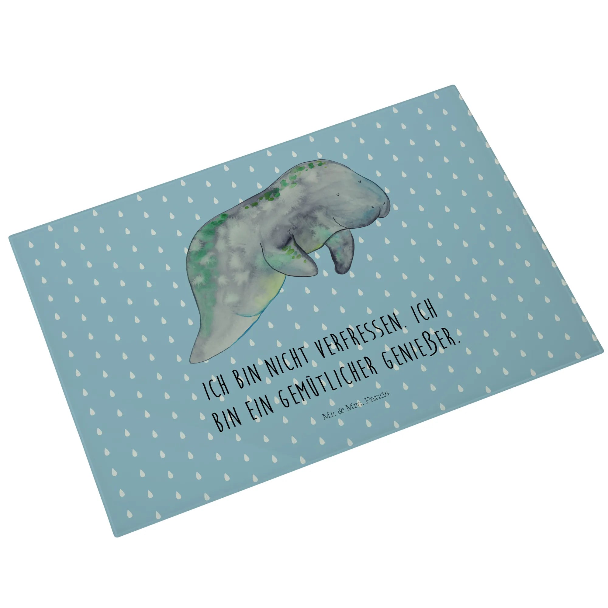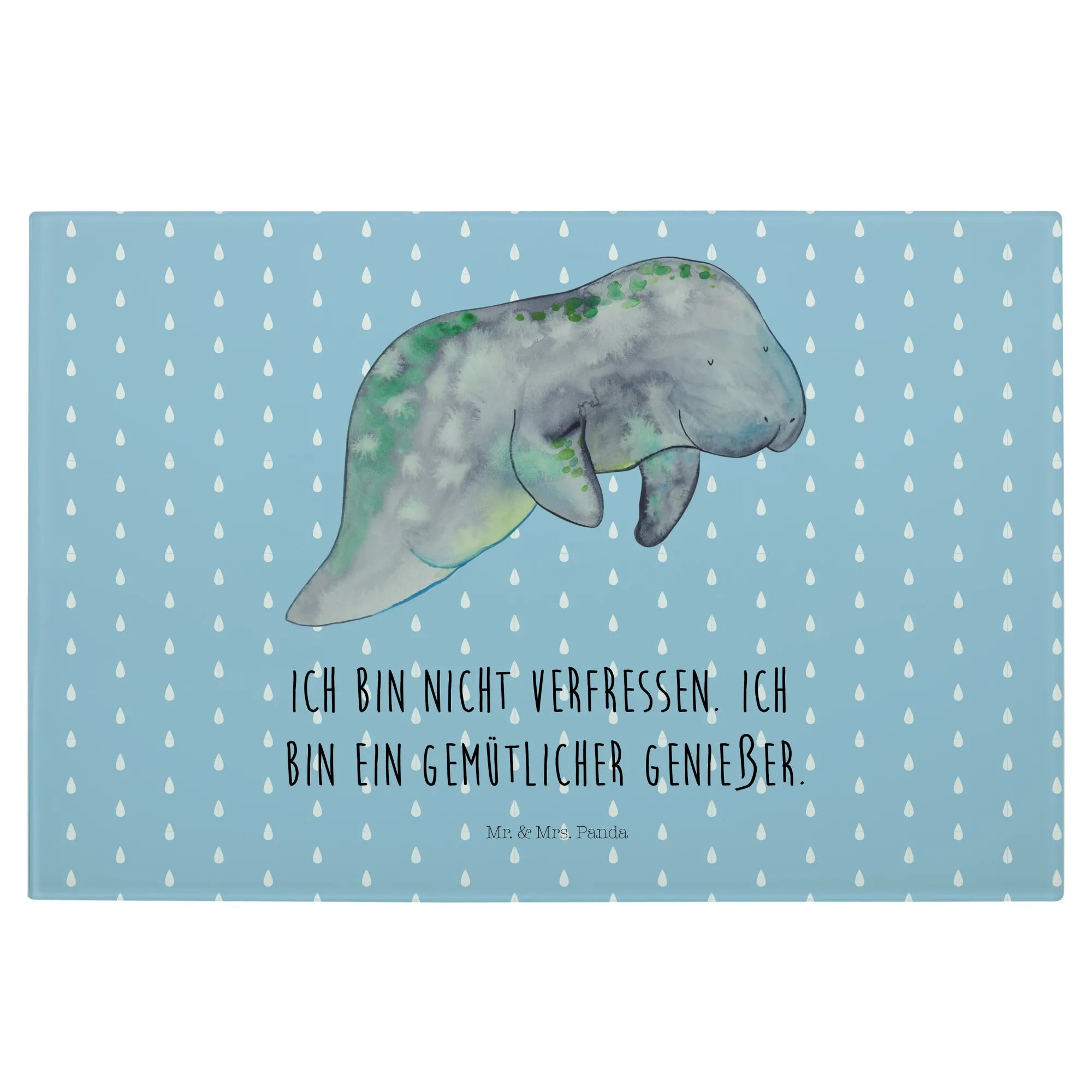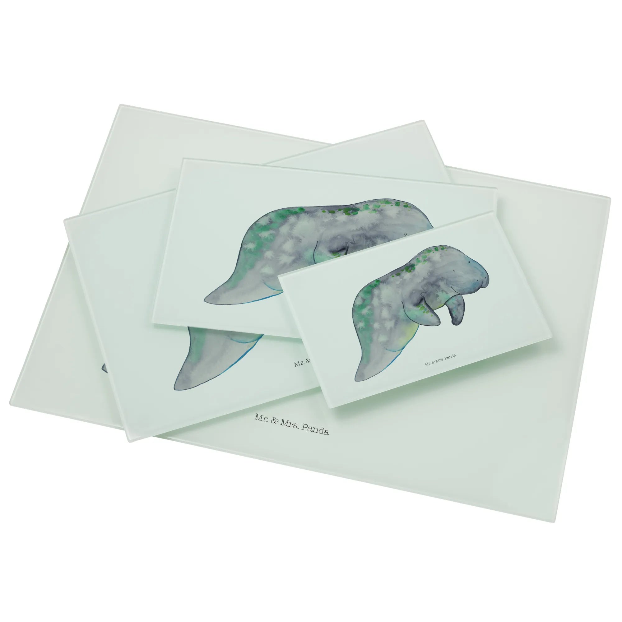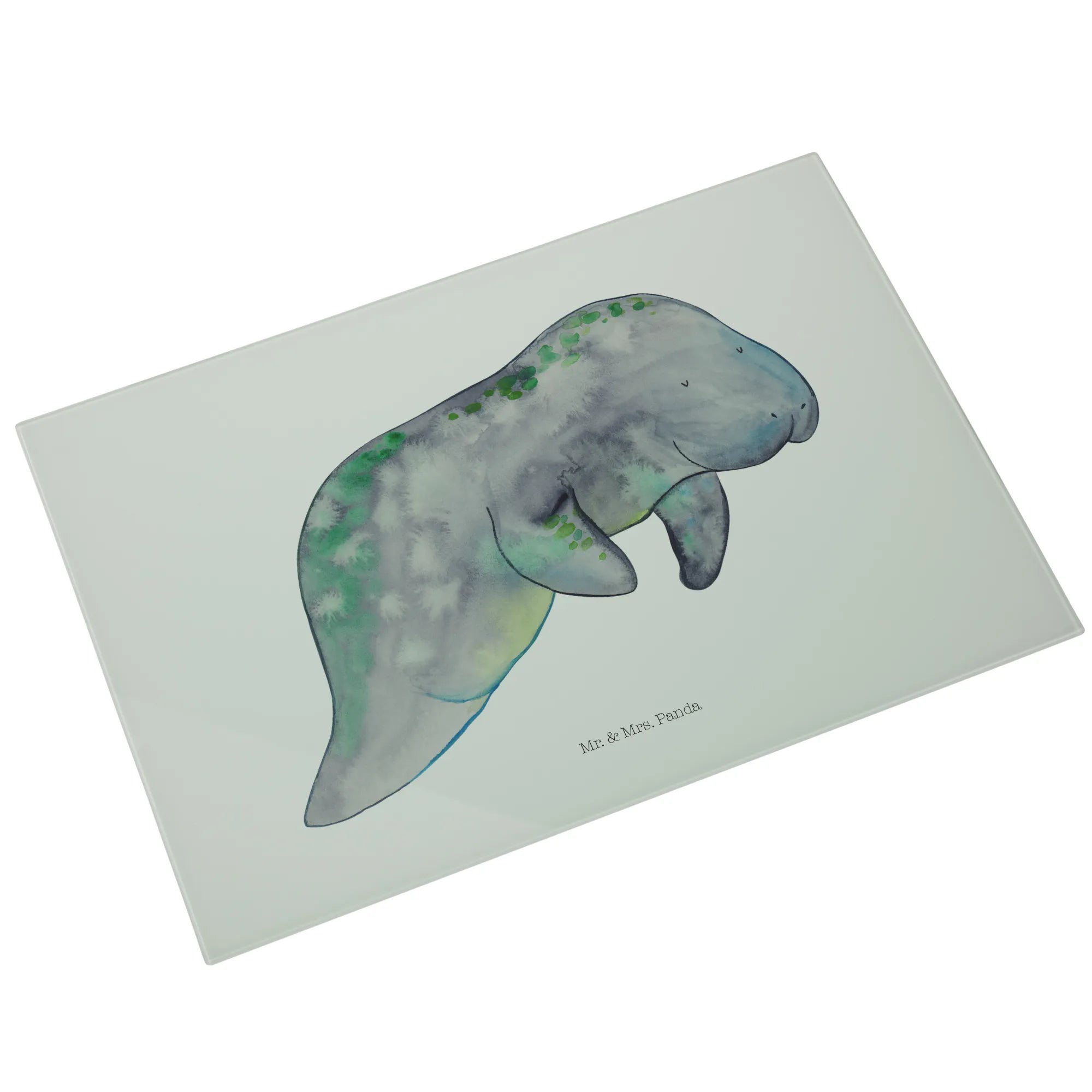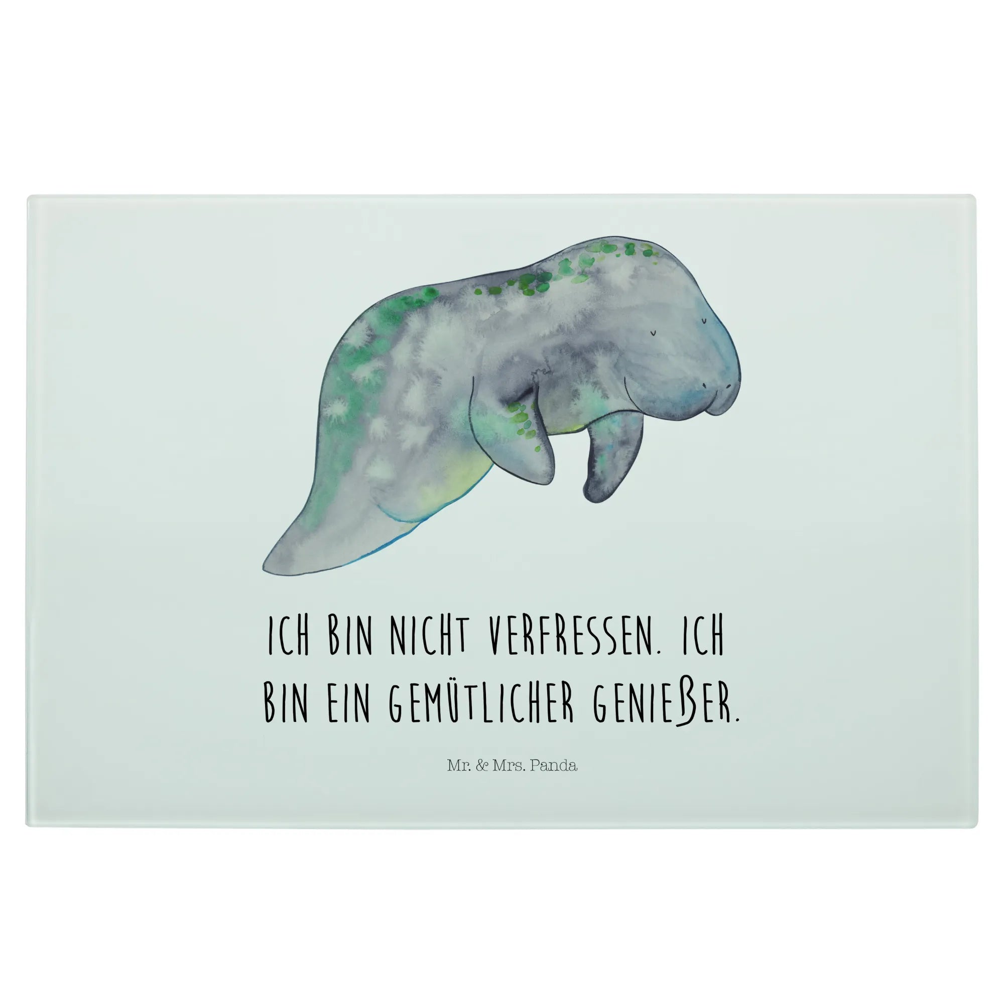 Das Medium Glas Schneidbrett "Seekuh chillt" aus der wunderschönen Meerestiere Kollektion von Mr. & Mrs. Panda ist mehr als nur ein nützliches Küchenaccessoire – es ist ein echtes Statement für alle Liebhaber von Meeresbewohnern und gemütlicher Esskultur!