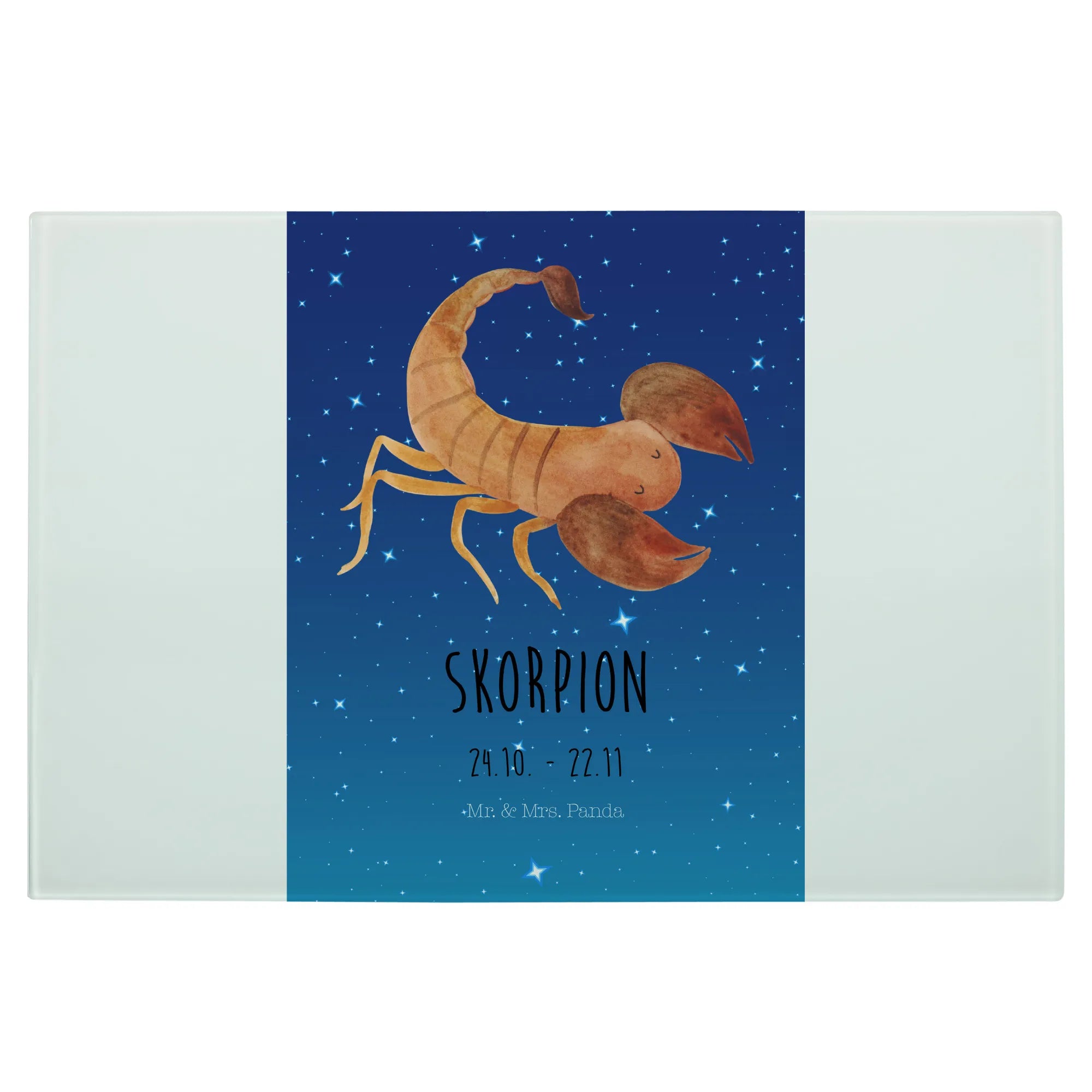 Glasschneidebrett Sternzeichen Skorpion Classic - Medium Glas Schneidbrett - mit Spruch - Sternenhimmel Blau