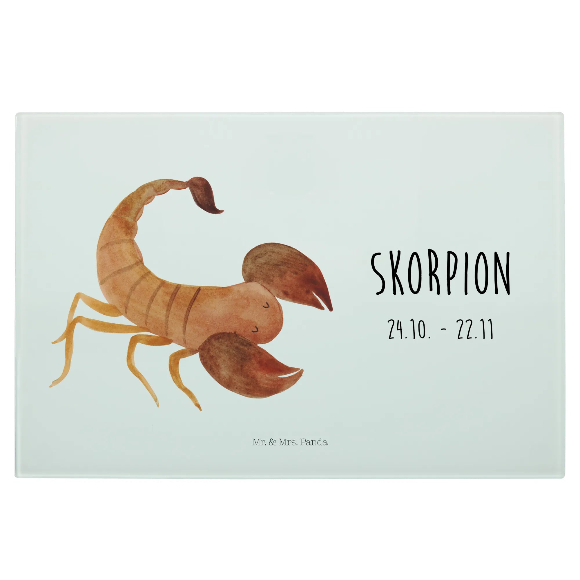 Das Medium Glas Schneidebrett "Sternzeichen Skorpion Classic" ist liebevoll designed und eignet sich bestens als überraschendes Mitbringsel oder als originelles Geschenk zur nächsten Feier. Verleihe deiner Küchenausstattung eine liebevolle Note oder mache anderen eine Freude mit einem Teil der Mr. & Mrs. Panda Familie. Einfach perfekt für jeden Fans der Astrologie und der besonderen Sternzeichen! Denn wie du weißt: Sternzeichen geben kleine Geheimnisse über den Charakter und die Eigenschaften eines Menschen preis. Verschenke mit einem Lächeln und viel Herz, immer auf den Punkt und immer mit Style.