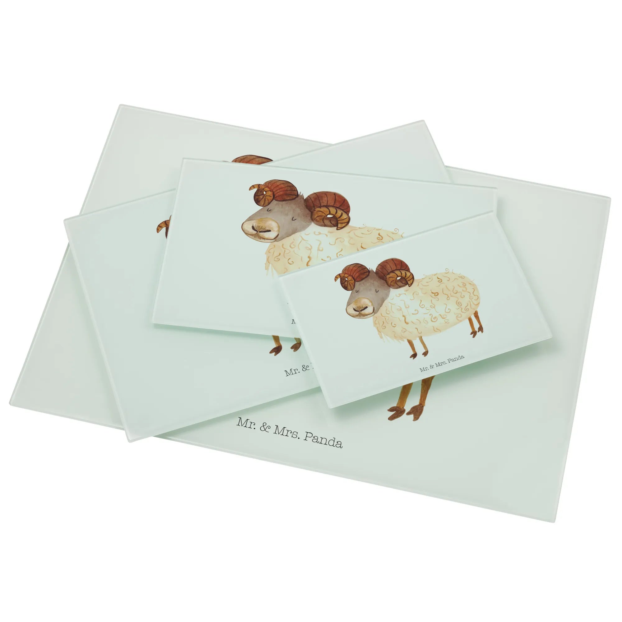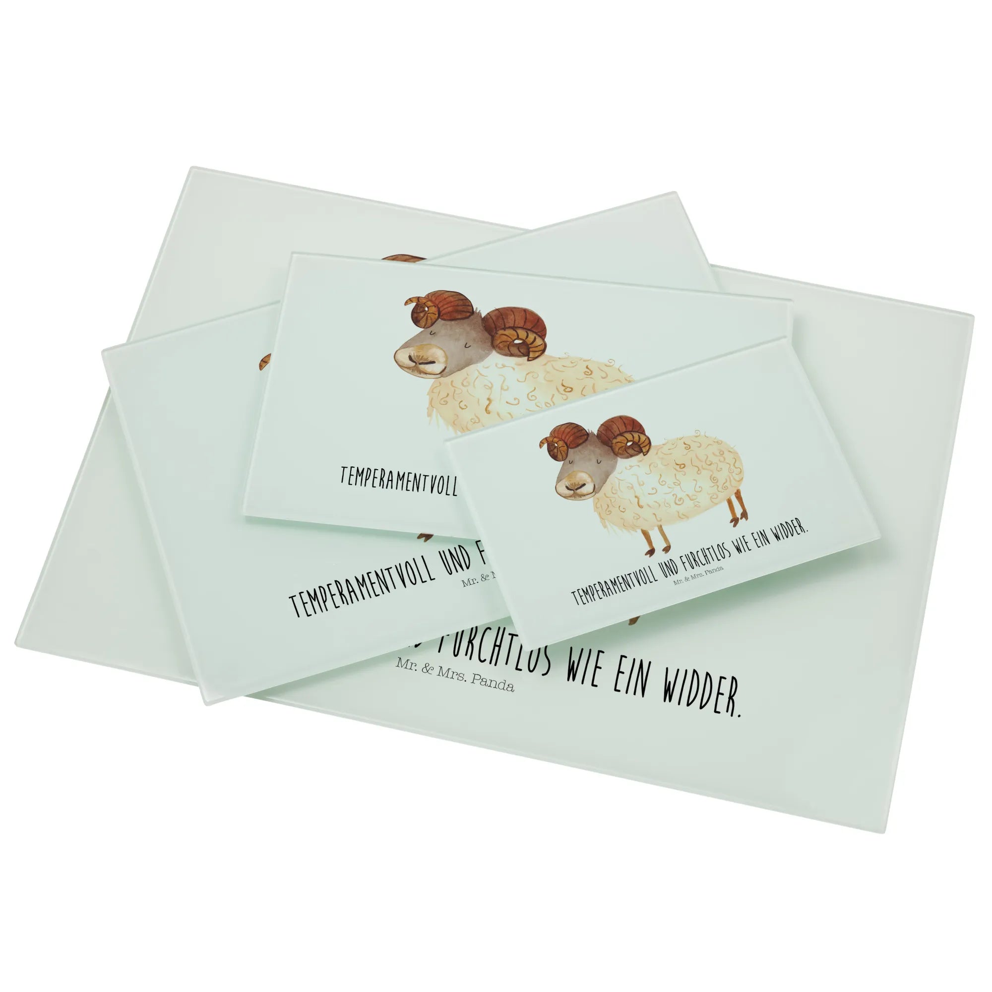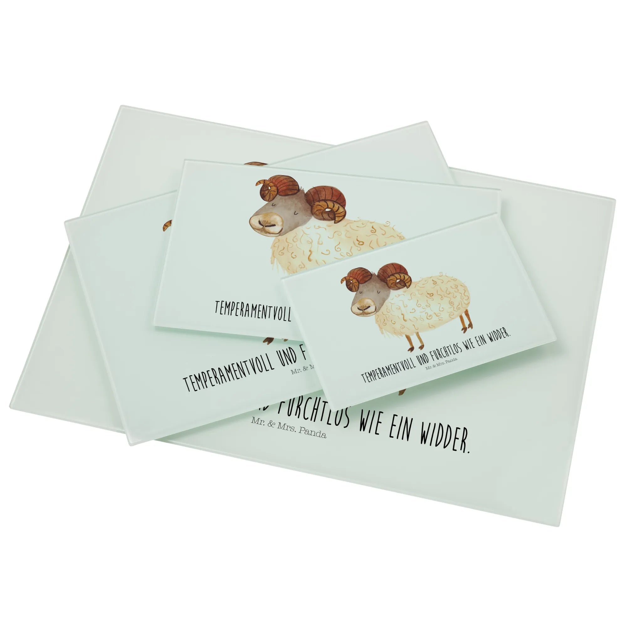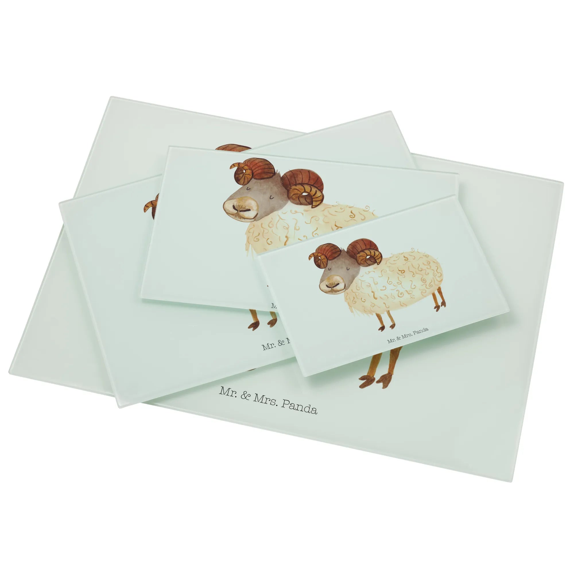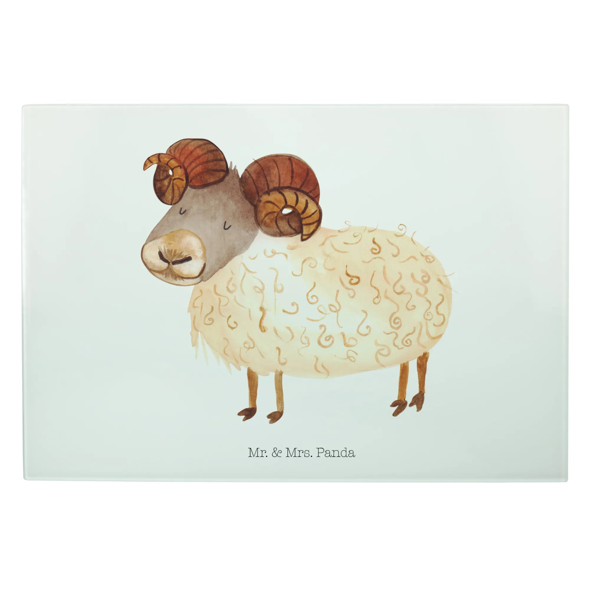 Das Medium Glas Schneidbrett Sternzeichen Widder von Mr. & Mrs. Panda ist das perfekte Geschenk für alle Widder-Geborenen und alle, die aktive und lebendige Charaktere lieben! Mit seinen charmanten Motiven strahlt dieses Schneidebrett nicht nur Schönheit aus, sondern ist auch extrem funktional.