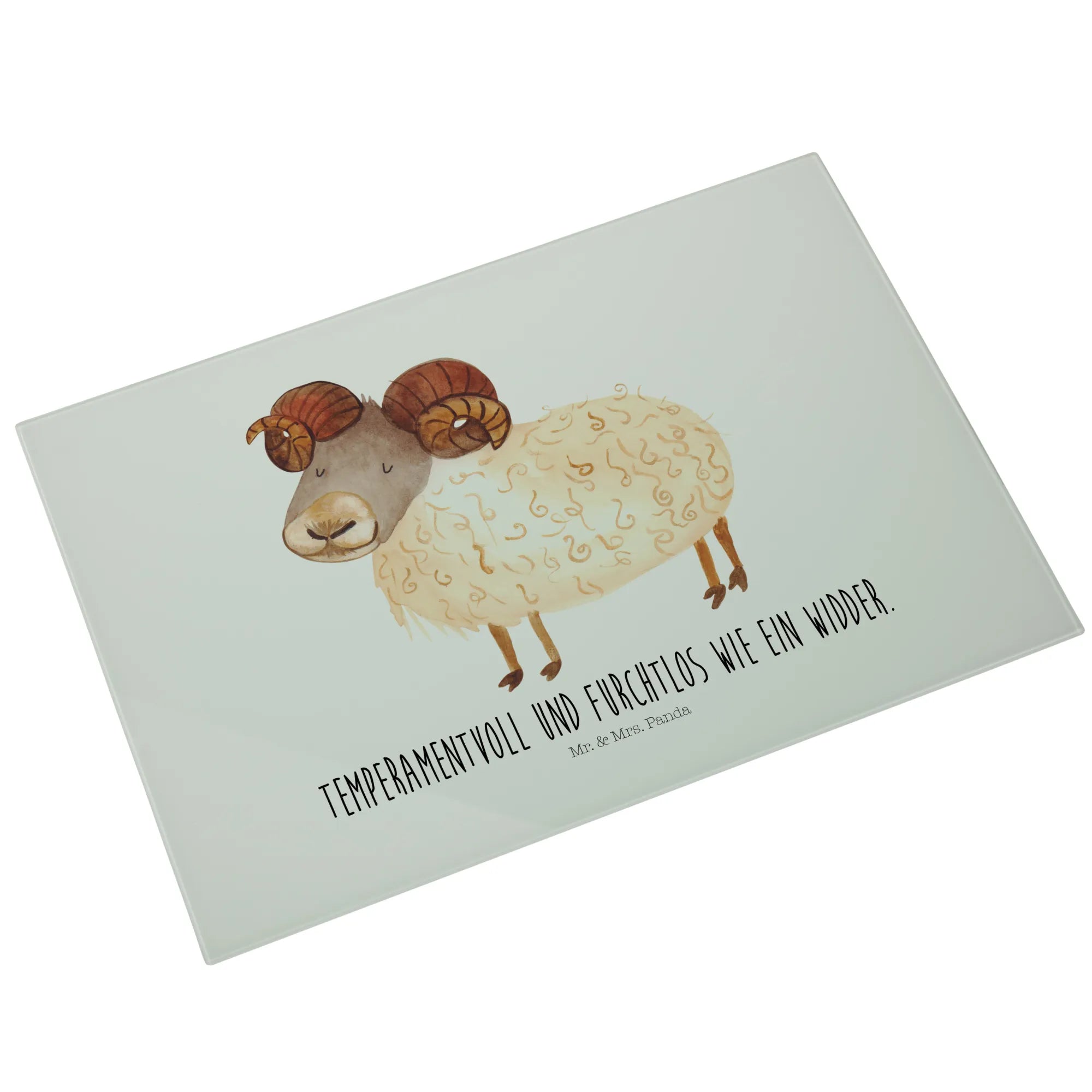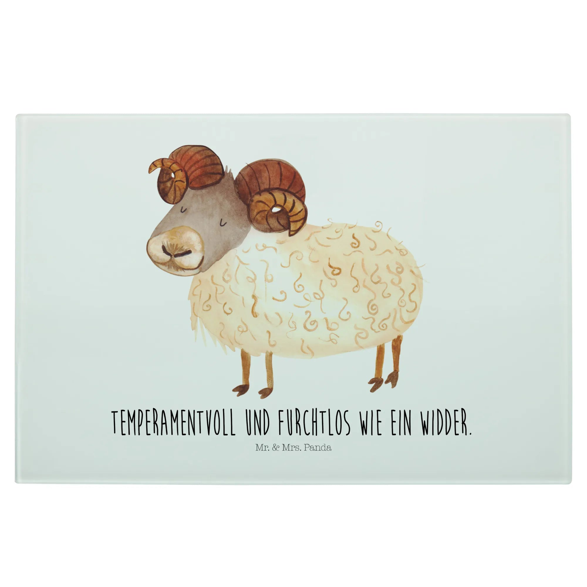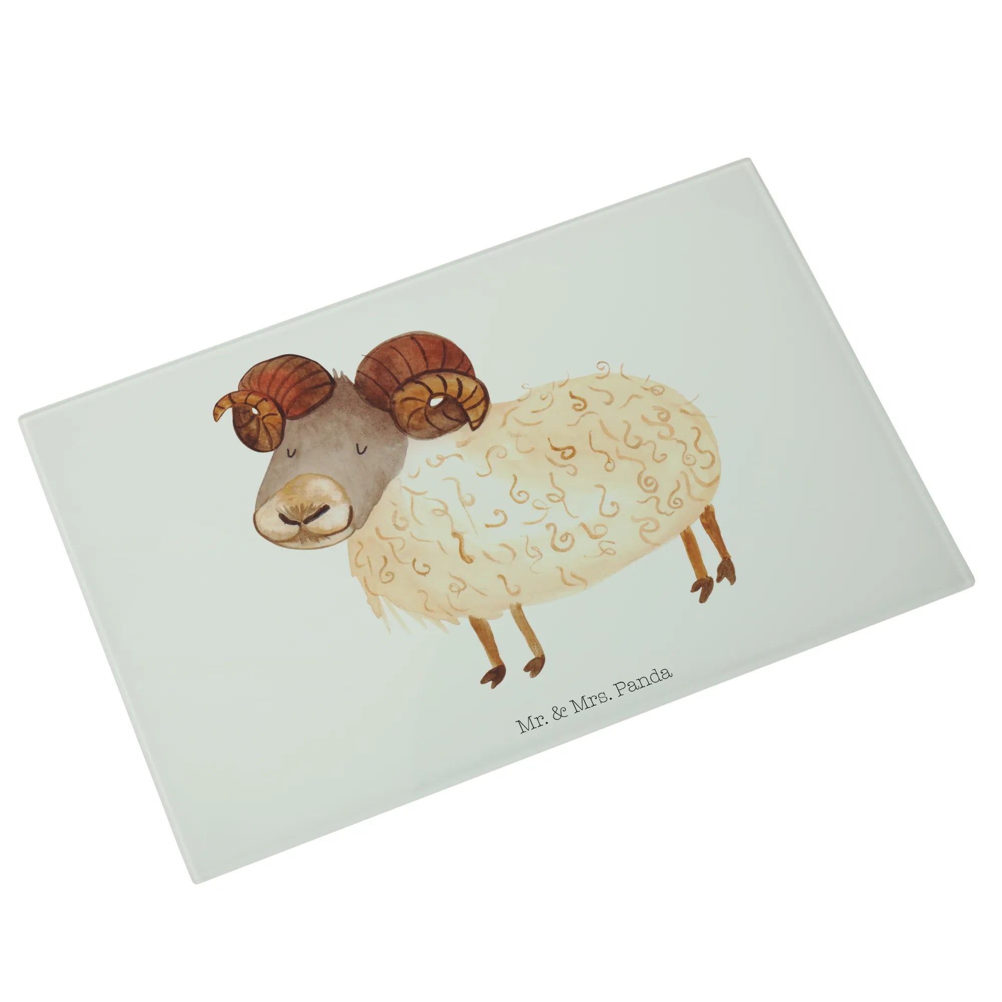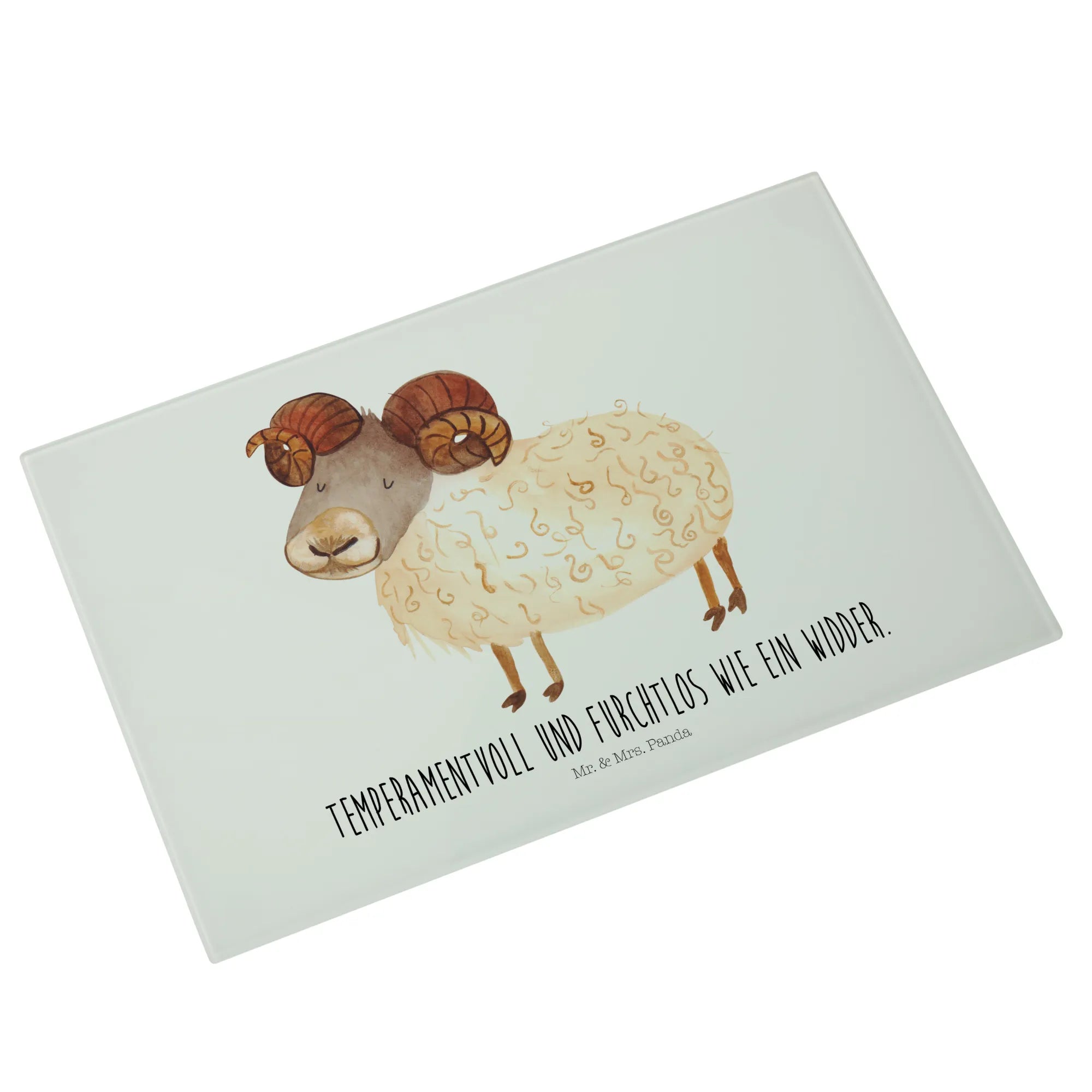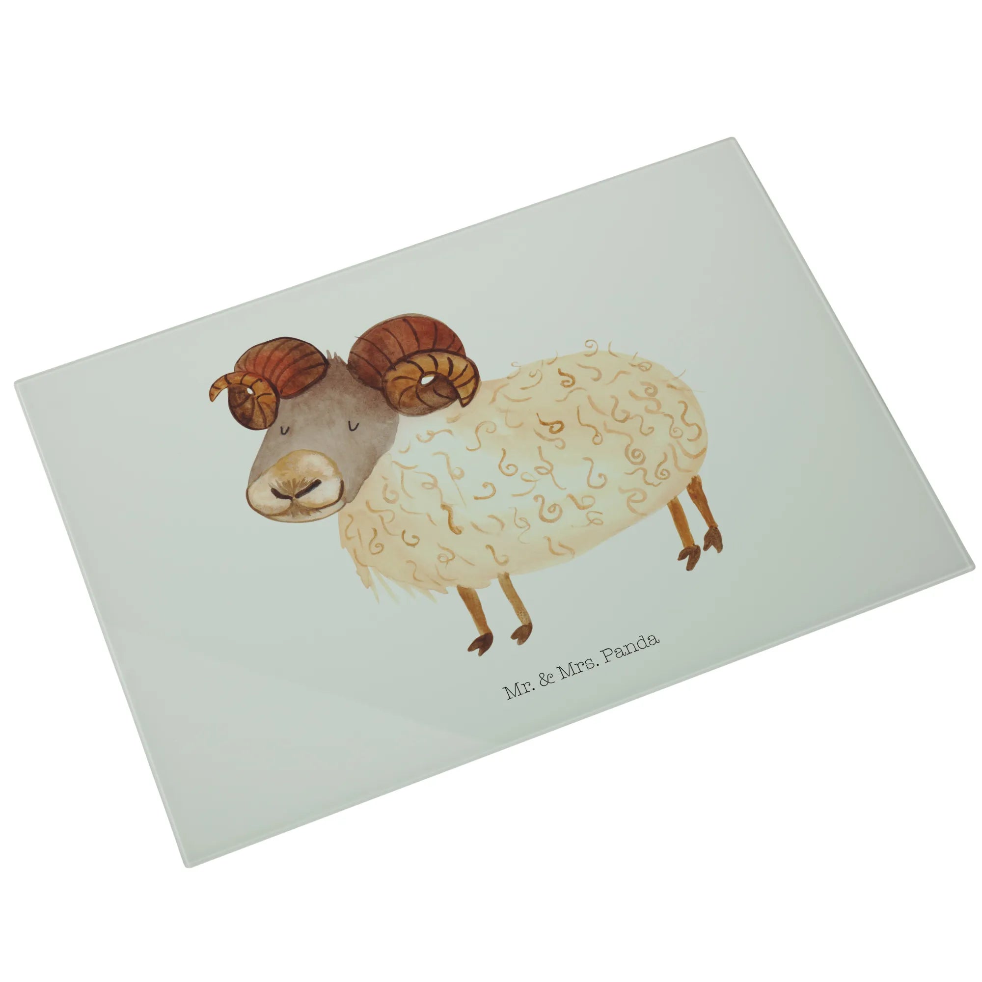 Das Medium Glas Schneidbrett Sternzeichen Widder von Mr. & Mrs. Panda ist das perfekte Geschenk für alle Widder-Geborenen und alle, die aktive und lebendige Charaktere lieben! Mit seinen charmanten Motiven strahlt dieses Schneidebrett nicht nur Schönheit aus, sondern ist auch extrem funktional.