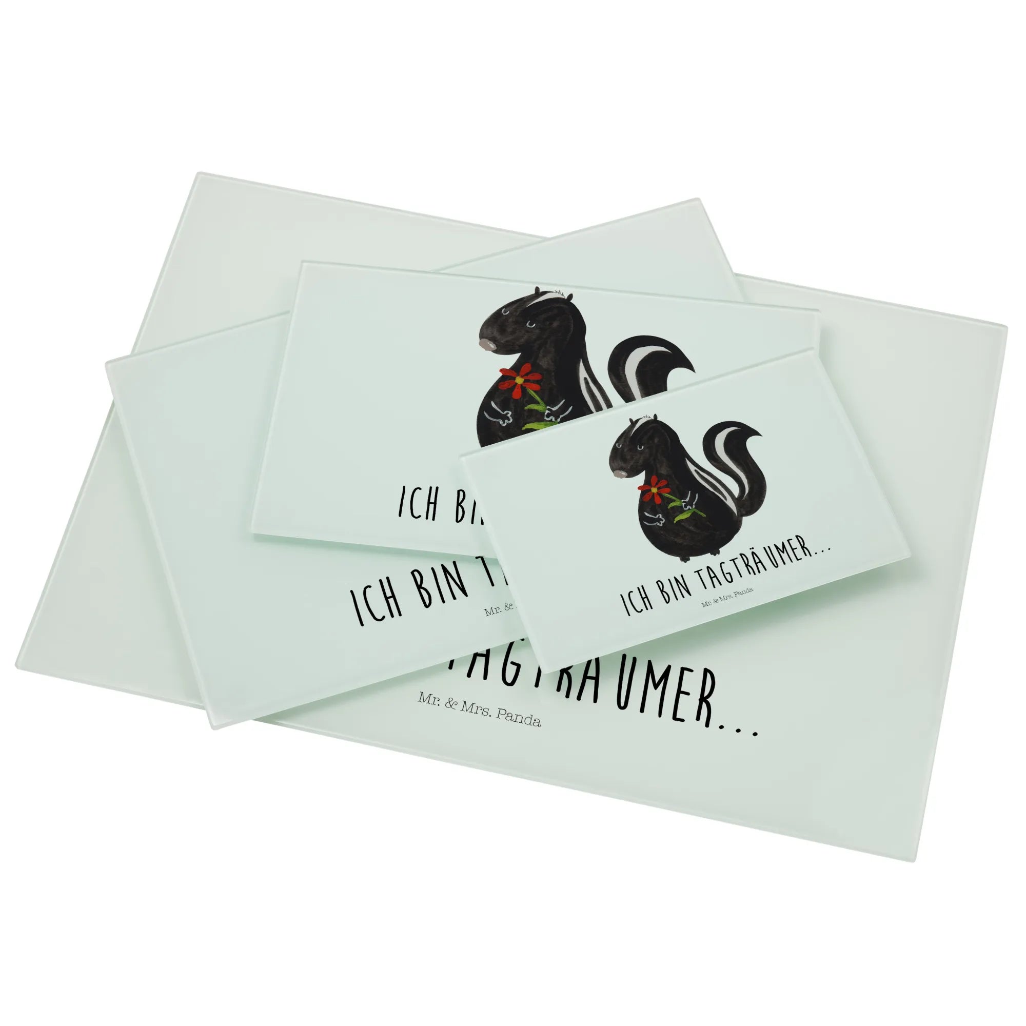 Entdecke das zauberhafte Medium Glas Schneidbrett mit dem wunderschönen Stinktier Blume Motiv aus der exklusiven Stinktier-Kollektion von Mr. & Mrs. Panda! Dieses Schneidebrett ist nicht nur praktisch, sondern auch ein echter Blickfang in deiner Küche.