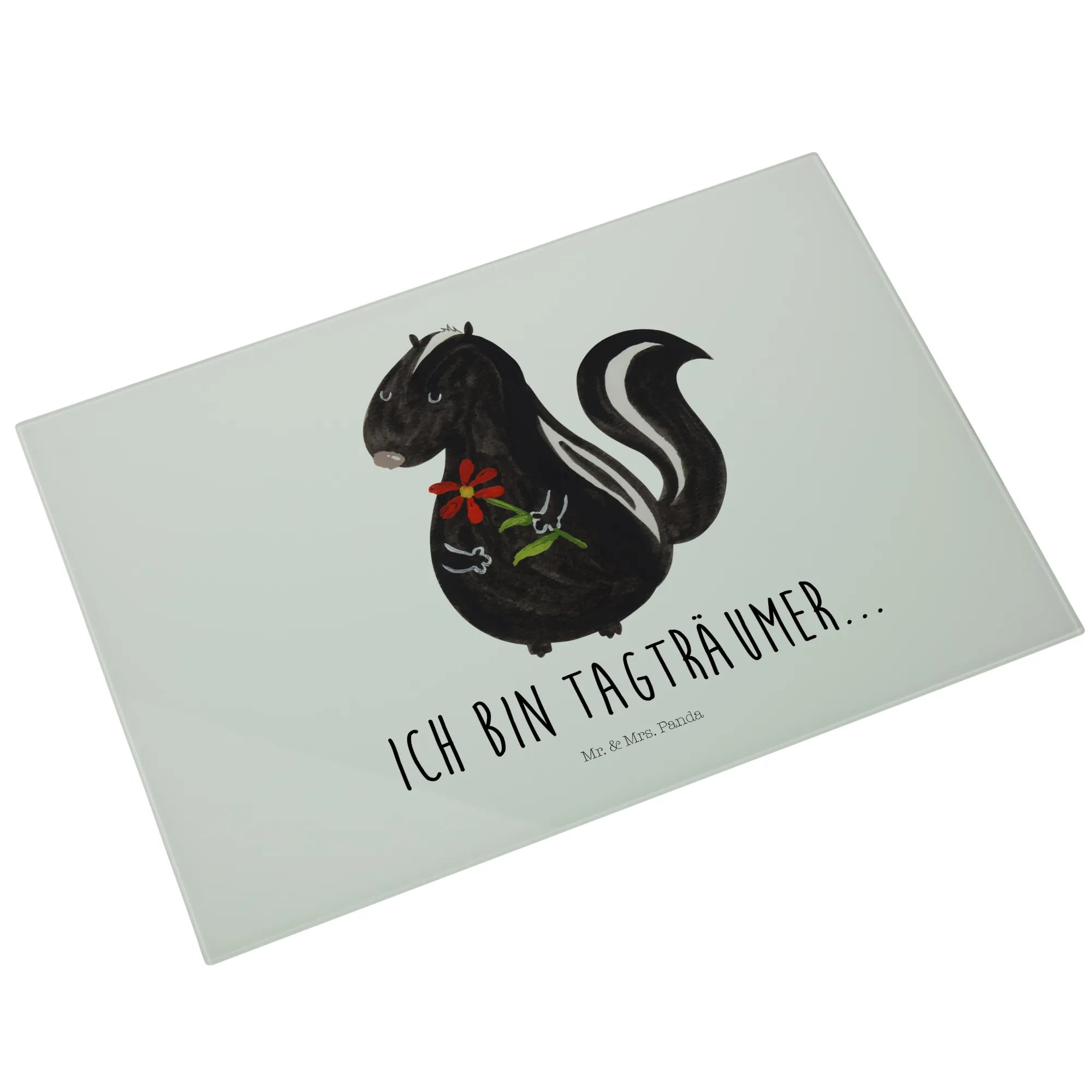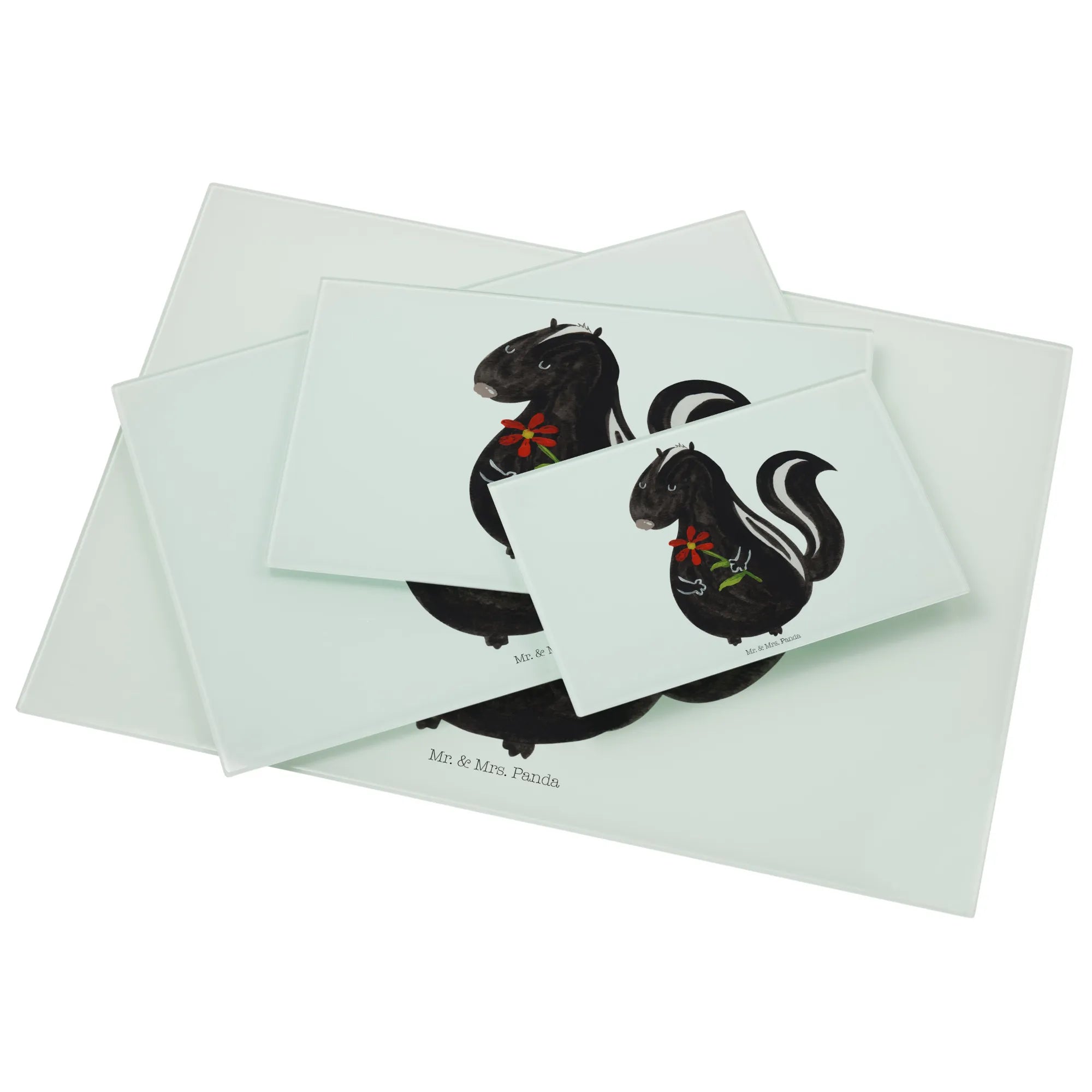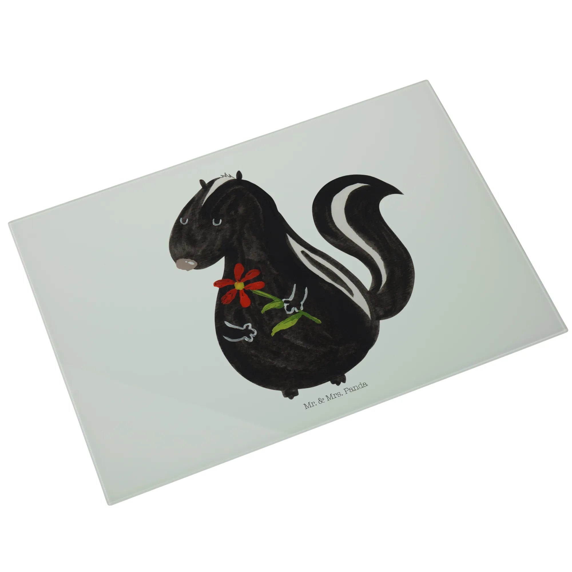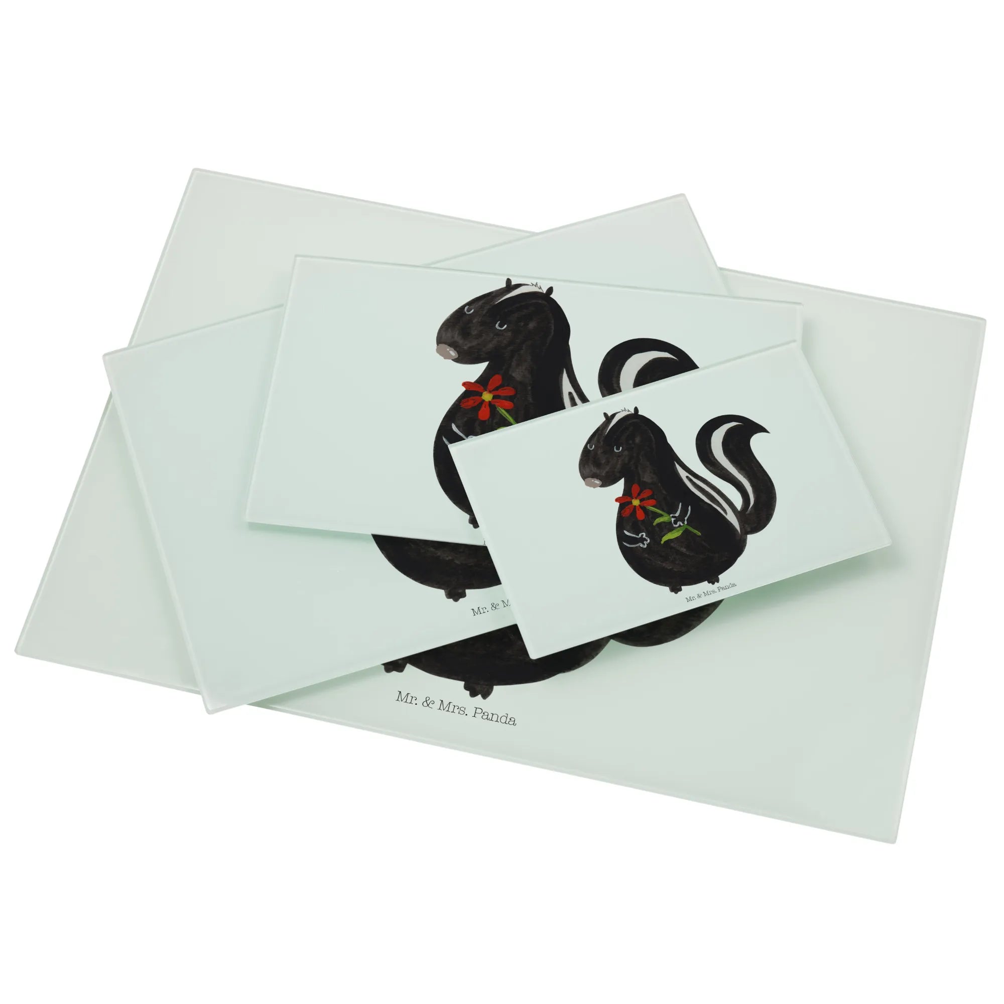 Glasschneidebrett Stinktier Blume – Mr. & Mrs. Panda