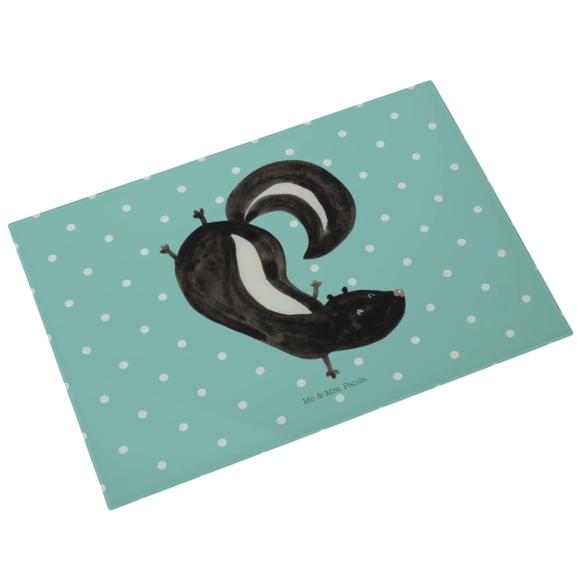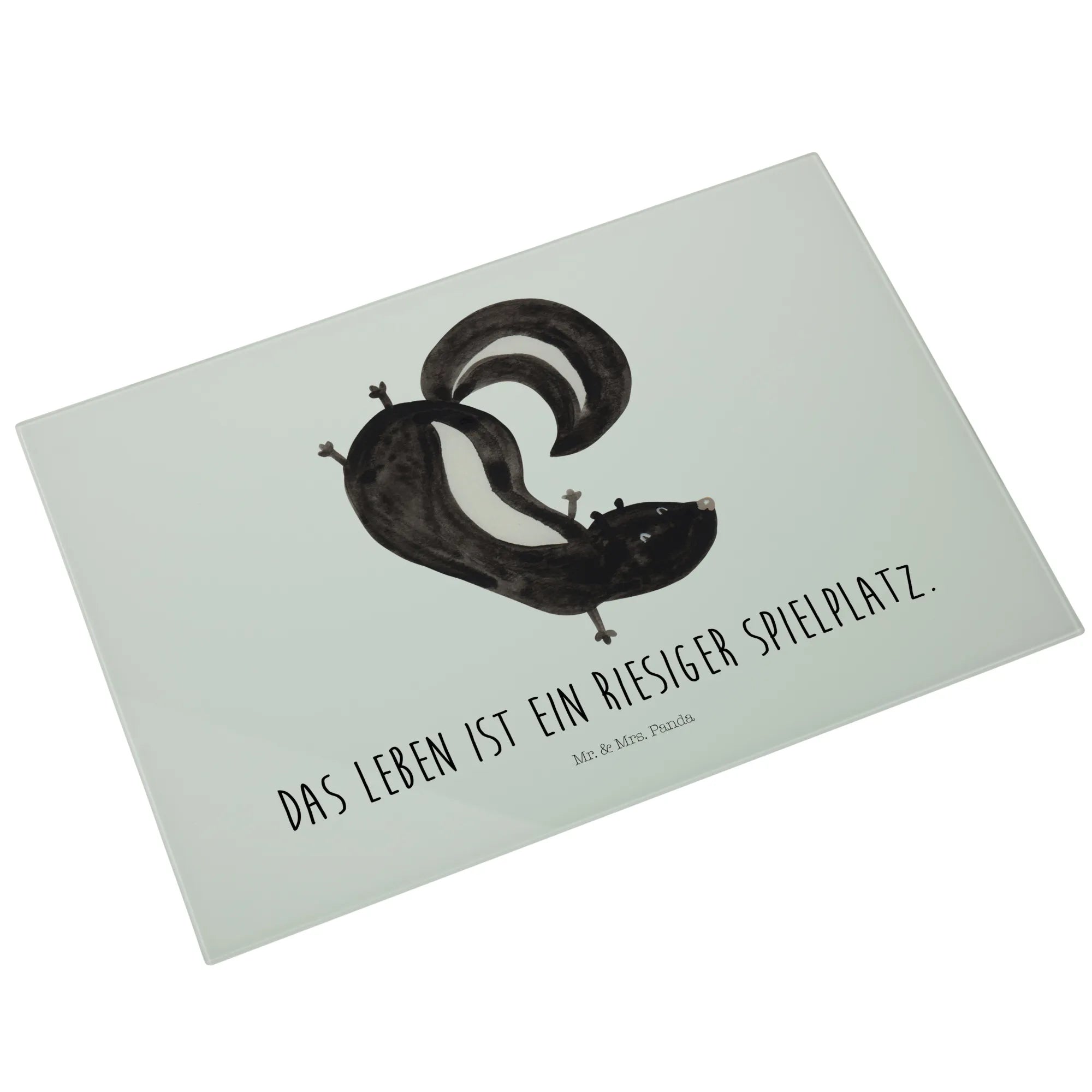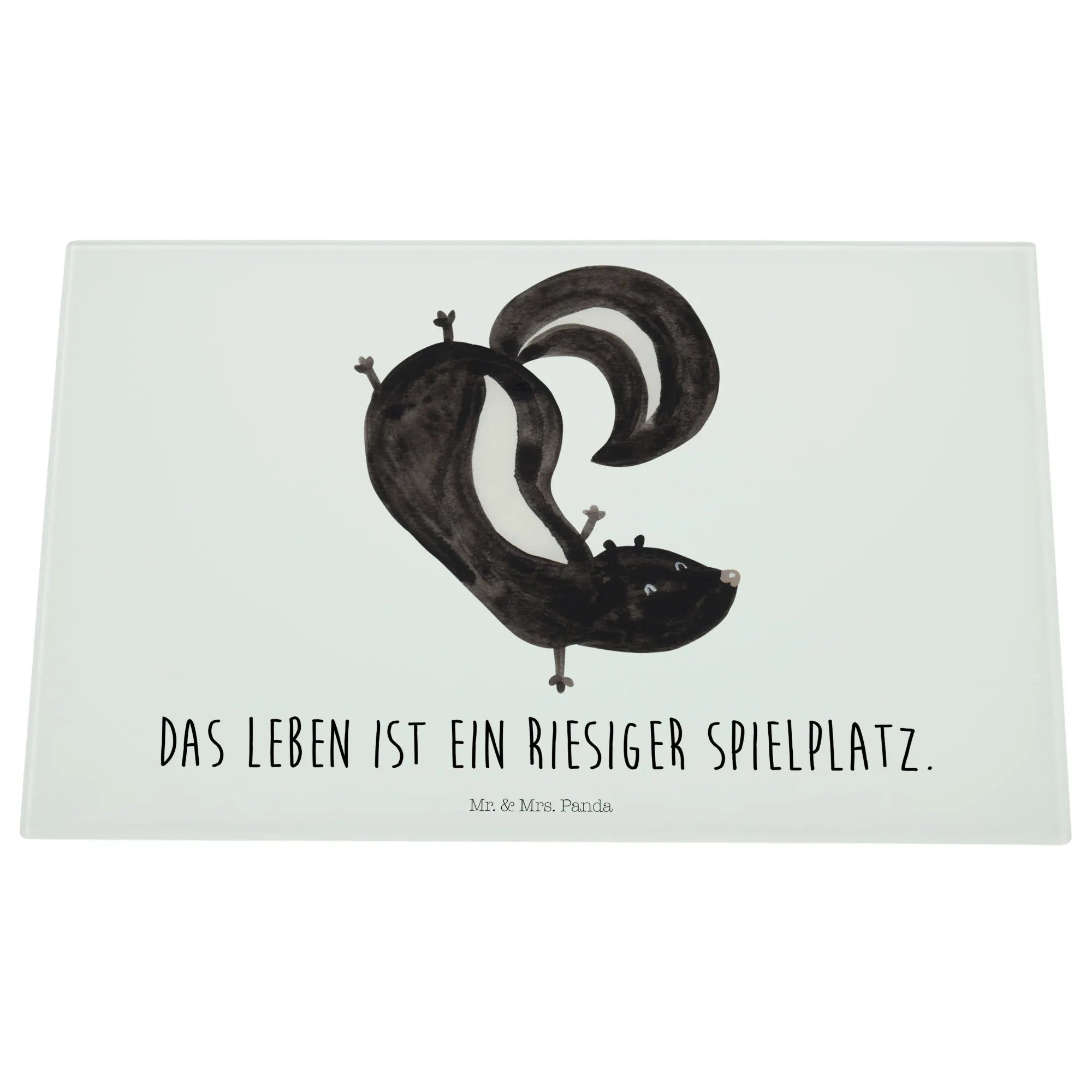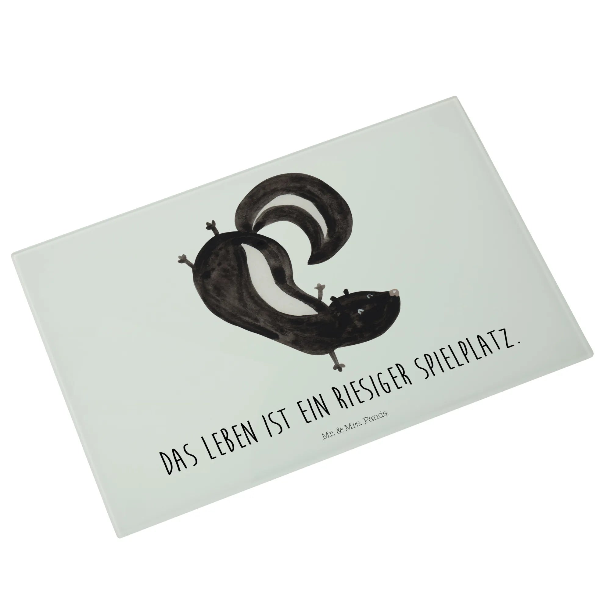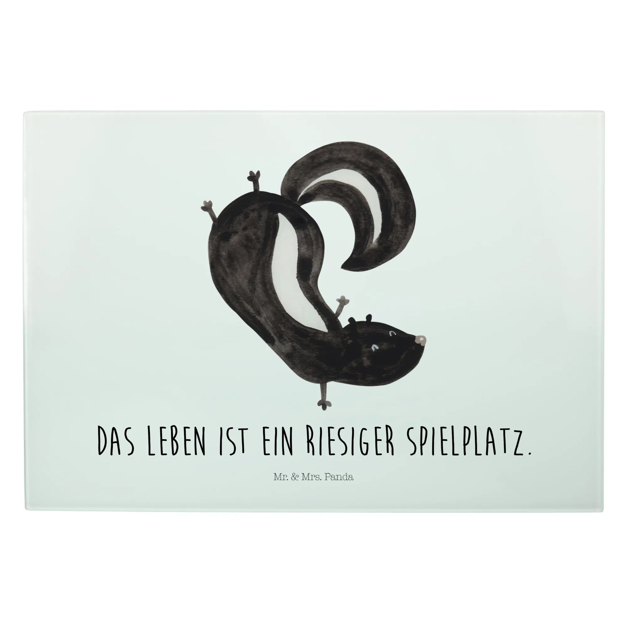 Das XL Glas Schneidbrett mit dem fröhlichen Stinktier Handstand Motiv aus der Stinktier-Kollektion von Mr. & Mrs. Panda ist der perfekte Begleiter für deine Küche! Wenn du auf der Suche nach einem charmanten und nützlichen Geschenk für Tierliebhaber, Bürokollegen oder für die nächste Einweihungsparty bist, dann ist dieses Schneidebrett genau das Richtige für dich.