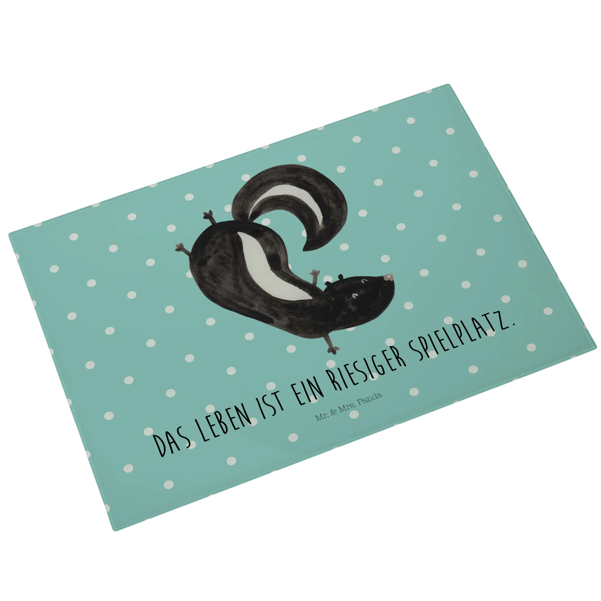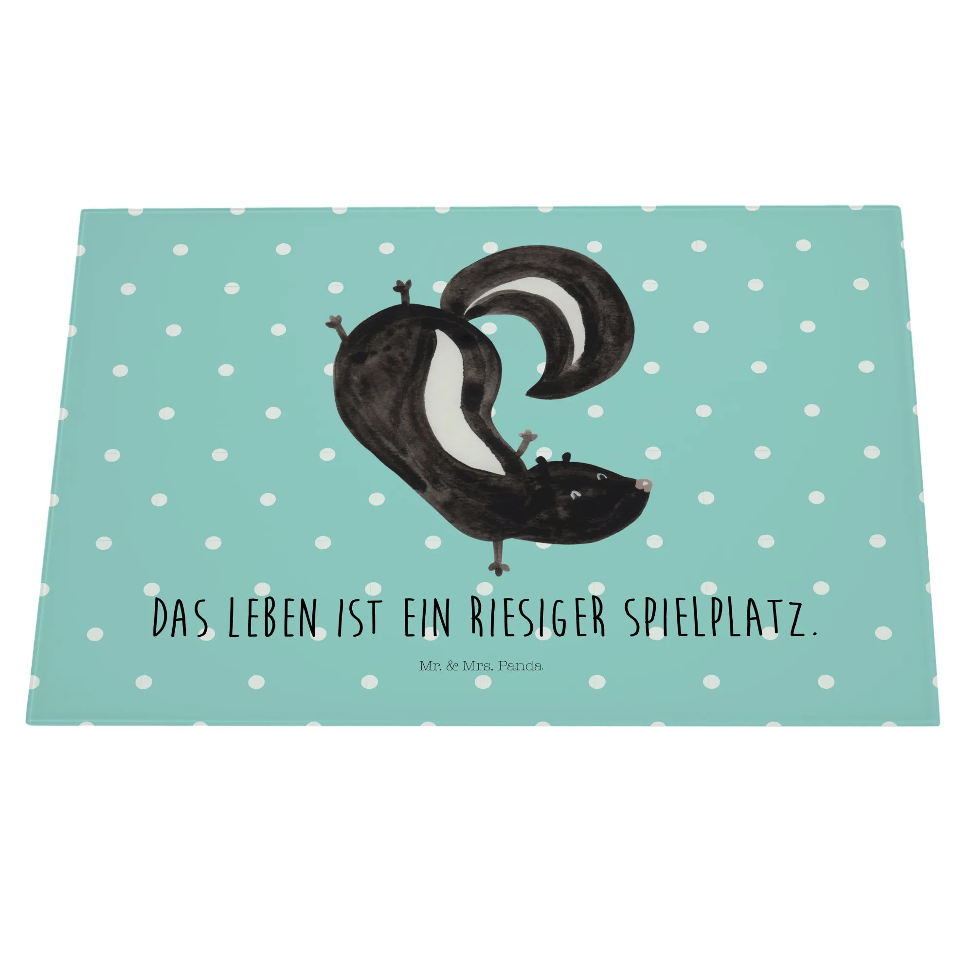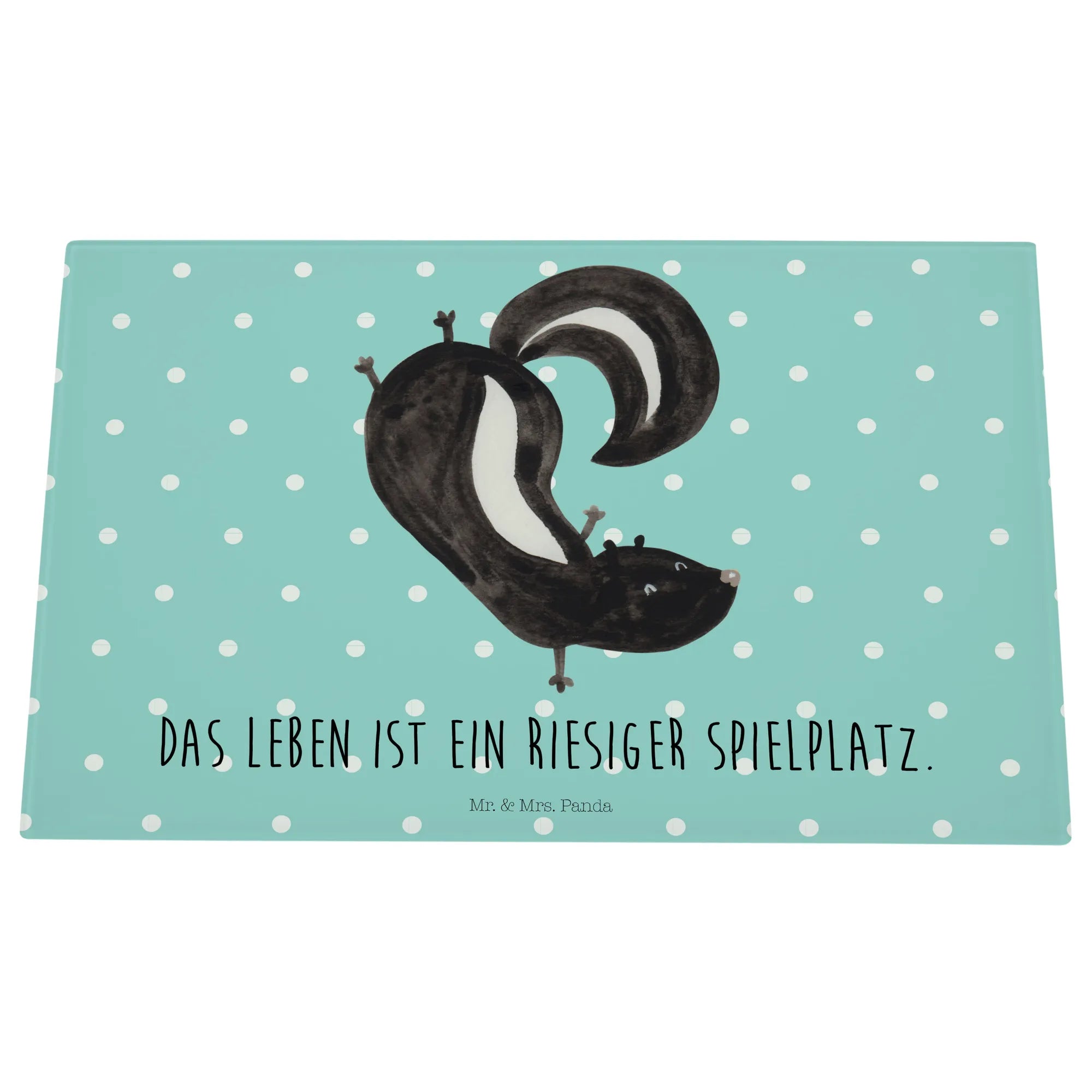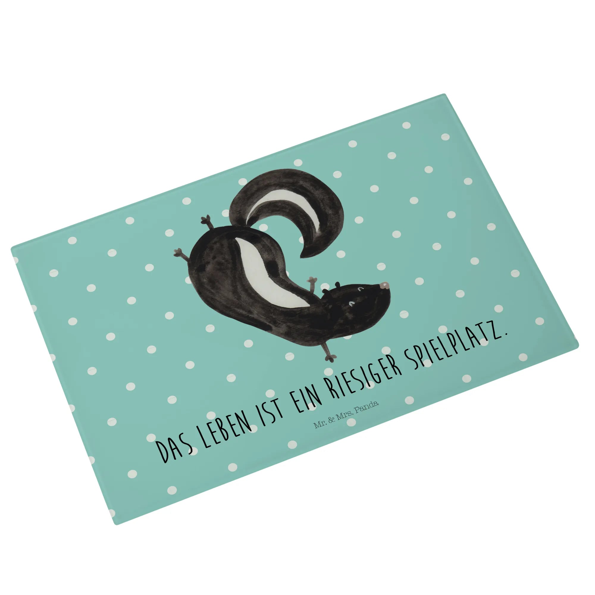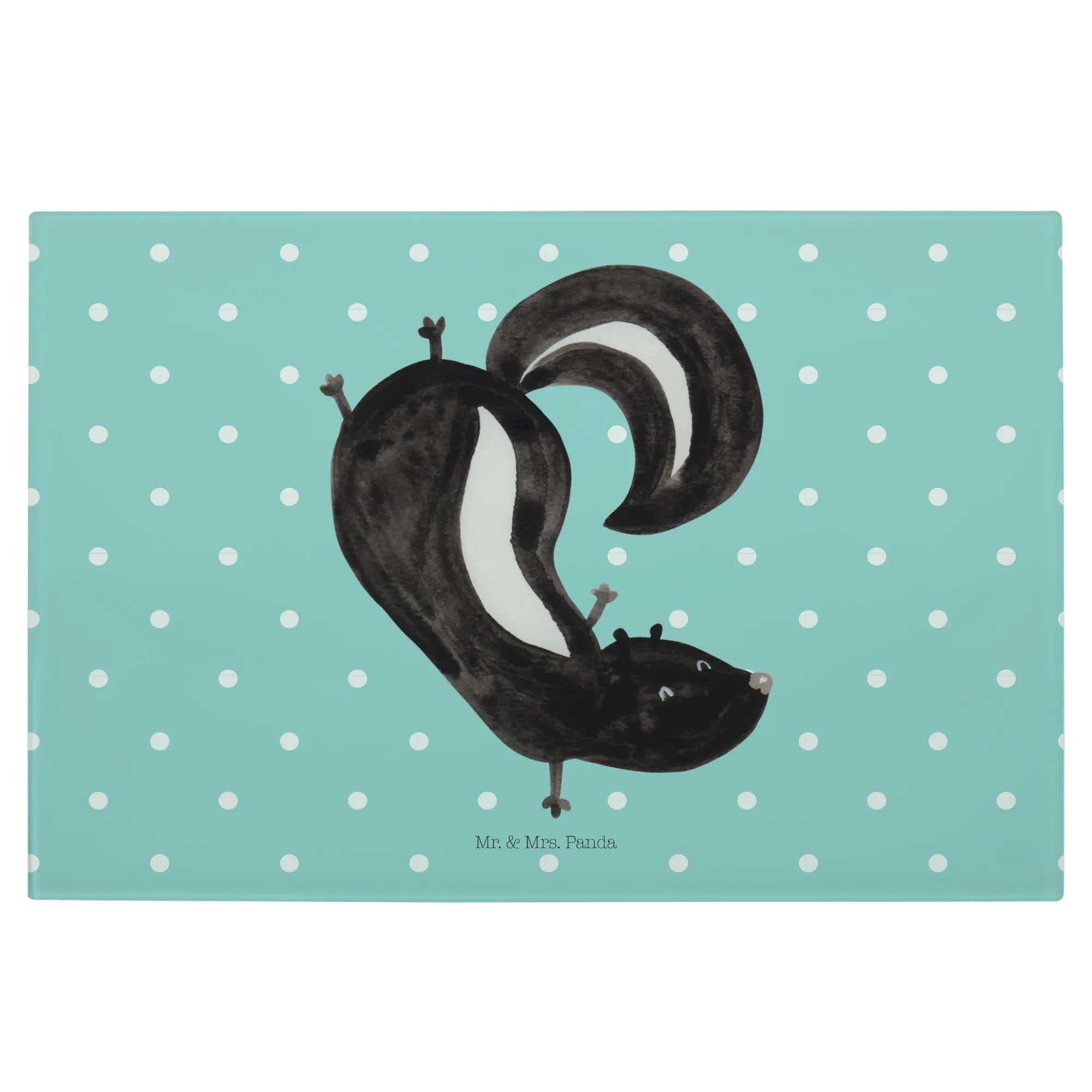 Das XL Glas Schneidbrett mit dem fröhlichen Stinktier Handstand Motiv aus der Stinktier-Kollektion von Mr. & Mrs. Panda ist der perfekte Begleiter für deine Küche! Wenn du auf der Suche nach einem charmanten und nützlichen Geschenk für Tierliebhaber, Bürokollegen oder für die nächste Einweihungsparty bist, dann ist dieses Schneidebrett genau das Richtige für dich.