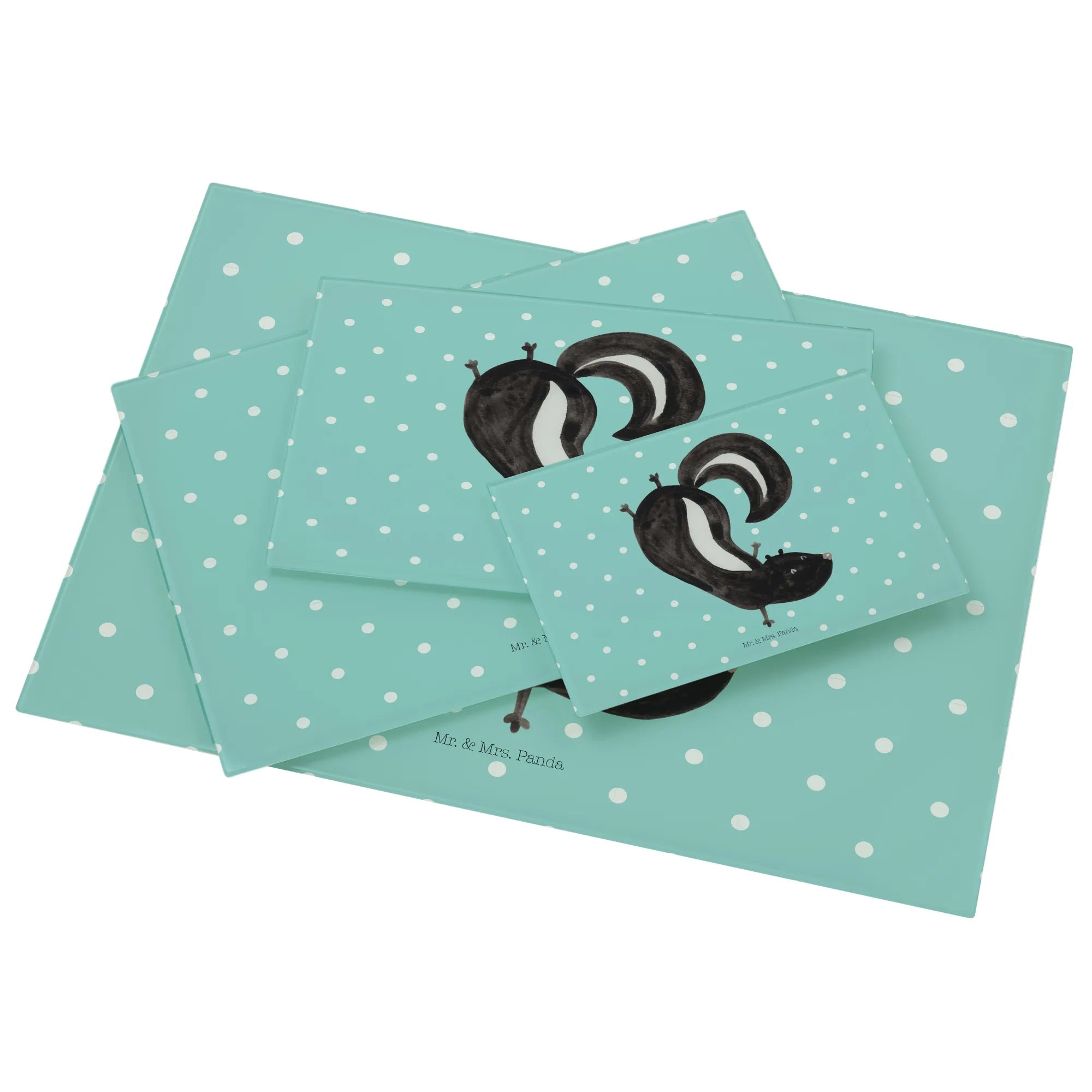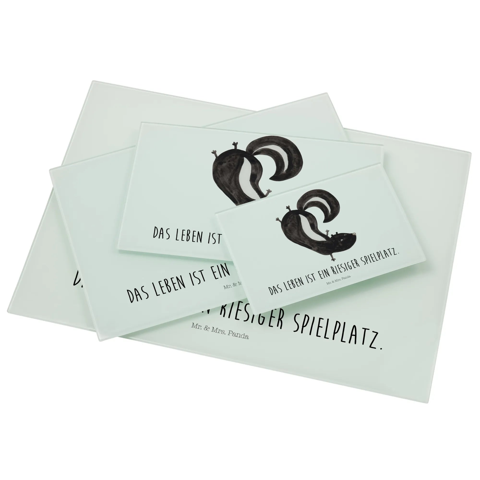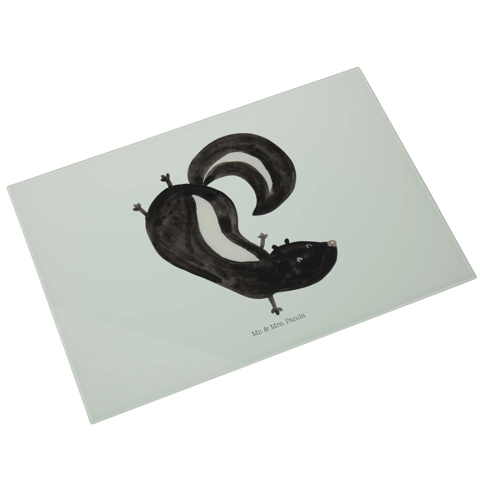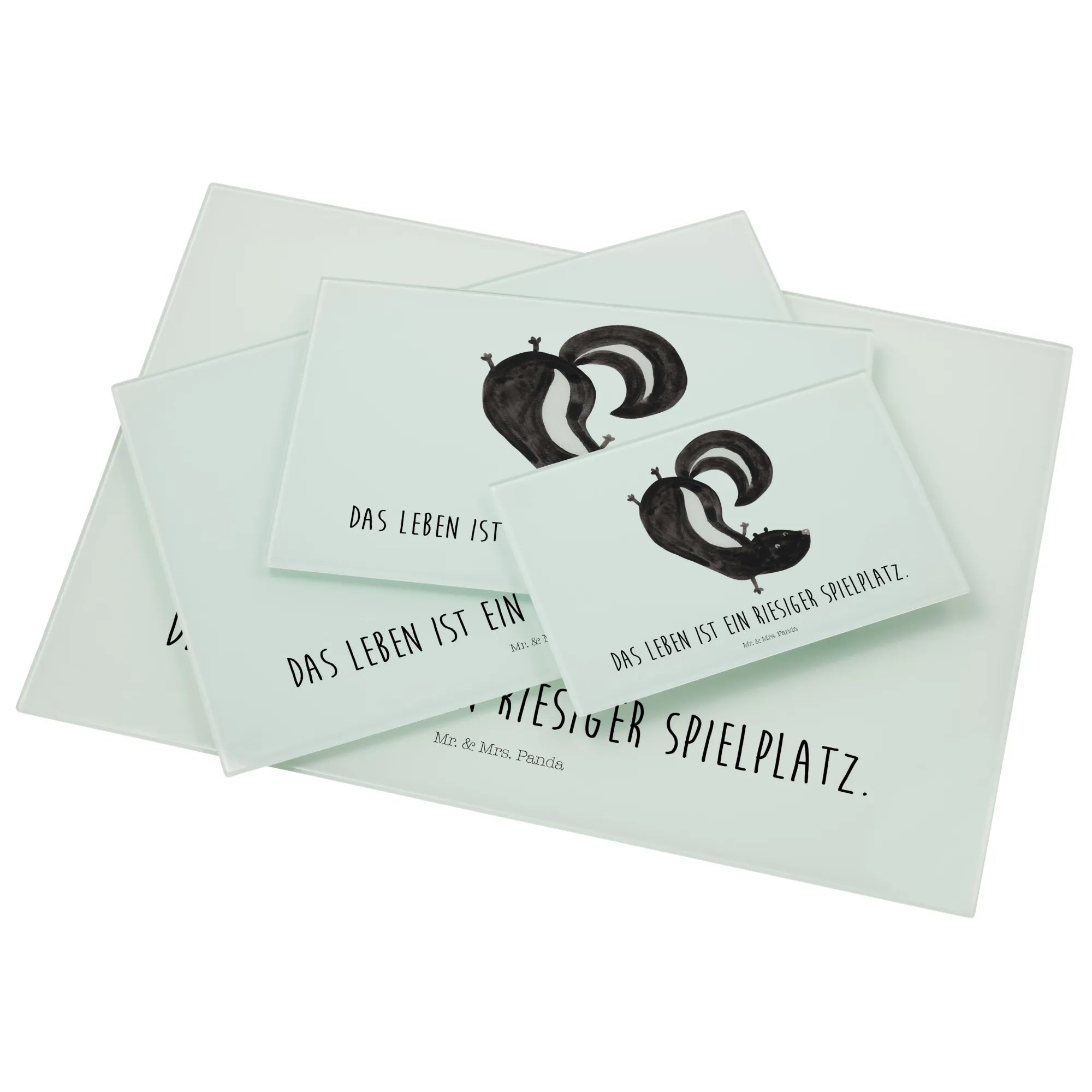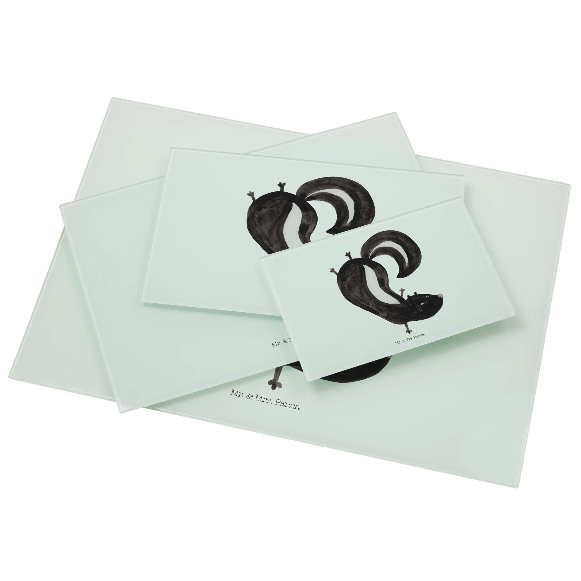 Wenn du auf der Suche nach einem einzigartigen Geschenk für Freunde oder Familie bist, das sowohl praktisch als auch hübsch ist, dann ist das XL Glas Schneidbrett von Mr. & Mrs. Panda mit dem süßen Stinktier das perfekte Geschenk. Die Stinktier - Kollektion ist eine Hommage an den treuen Begleiter von Mrs. Panda und verbindet spielerisches Design mit hochwertigen Materialien.