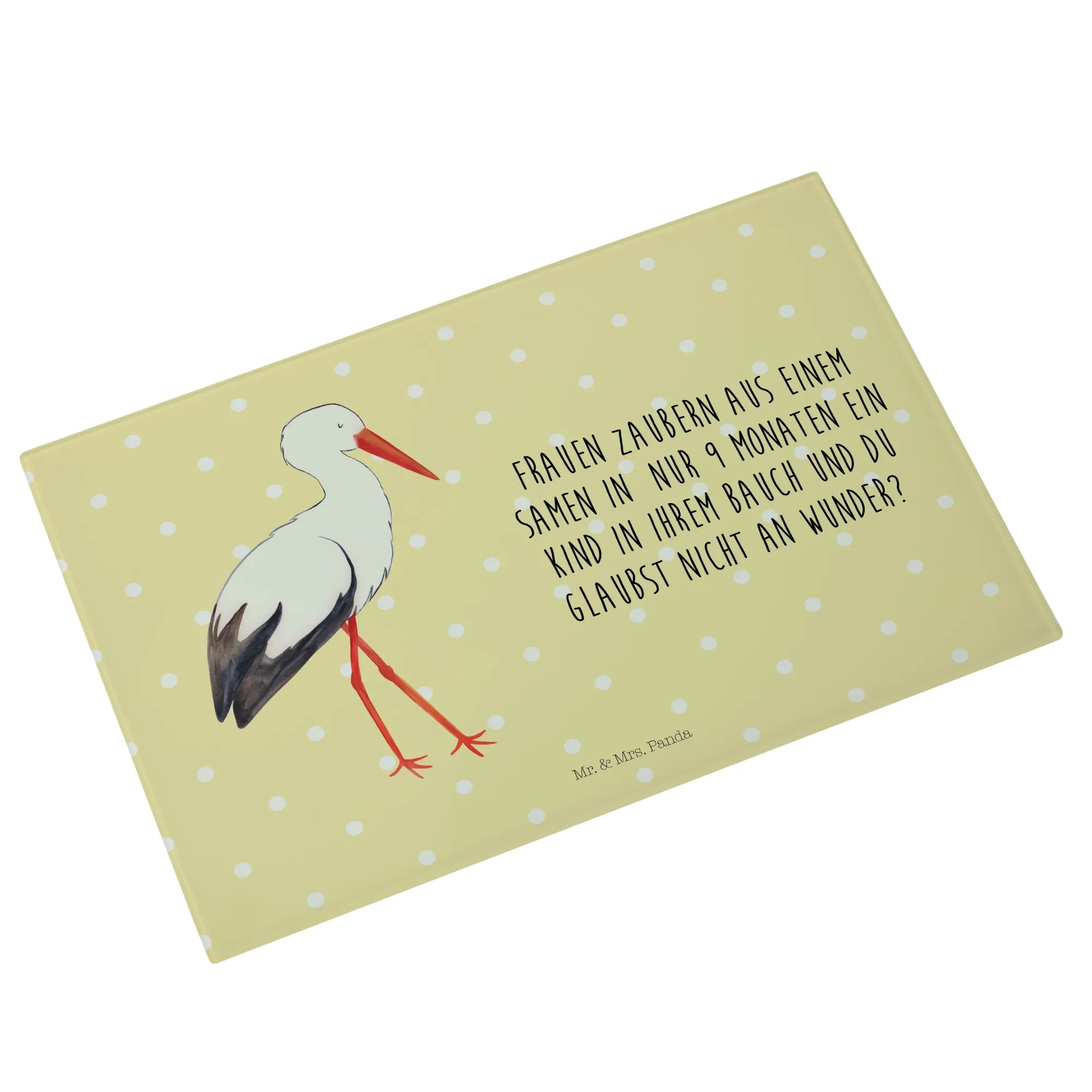 Das XL Glas Schneidbrett mit dem süßen Storch-Motiv aus der Small World Kollektion von Mr. & Mrs. Panda ist das ideale Geschenk für werdende Mütter, frischgebackene Eltern oder auch für liebe Freunde, die sich auf die Ankunft eines kleinen Wunders freuen.