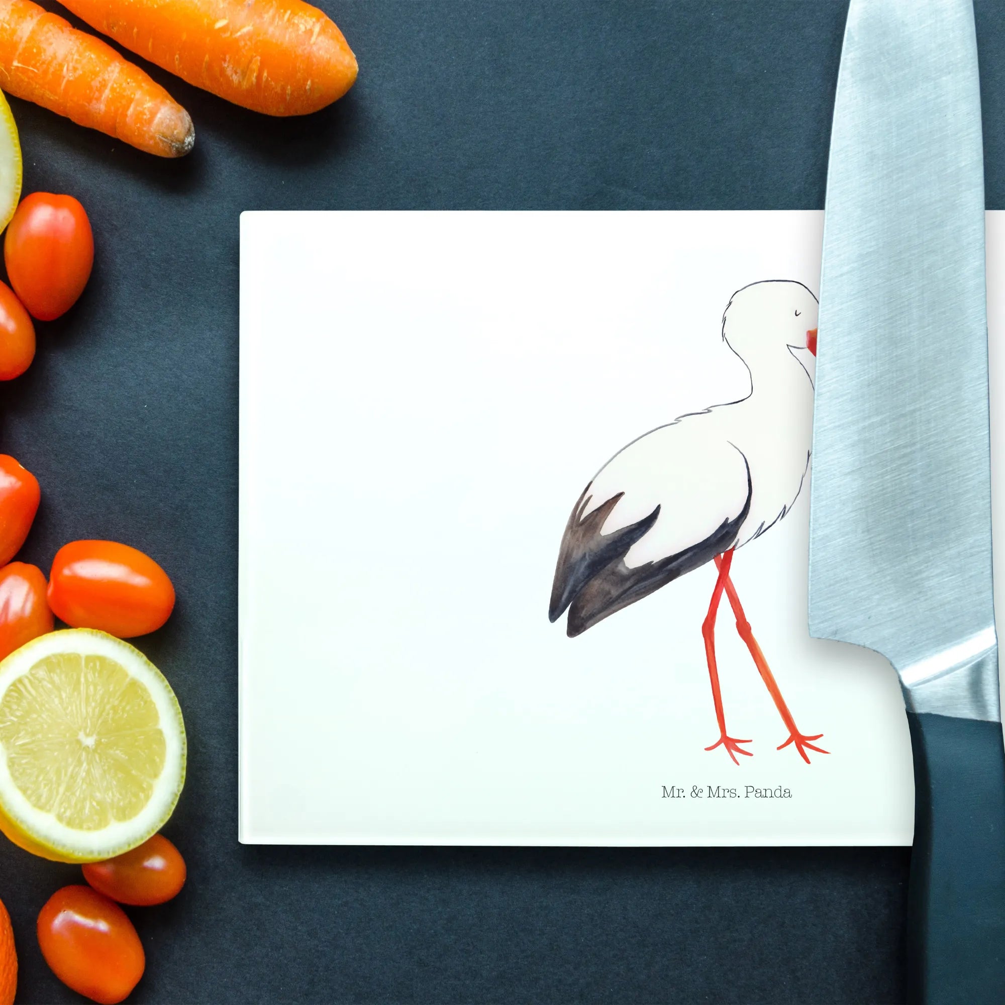 Glasschneidebrett Storch - Medium Glas Schneidbrett - mit Spruch - Weiß