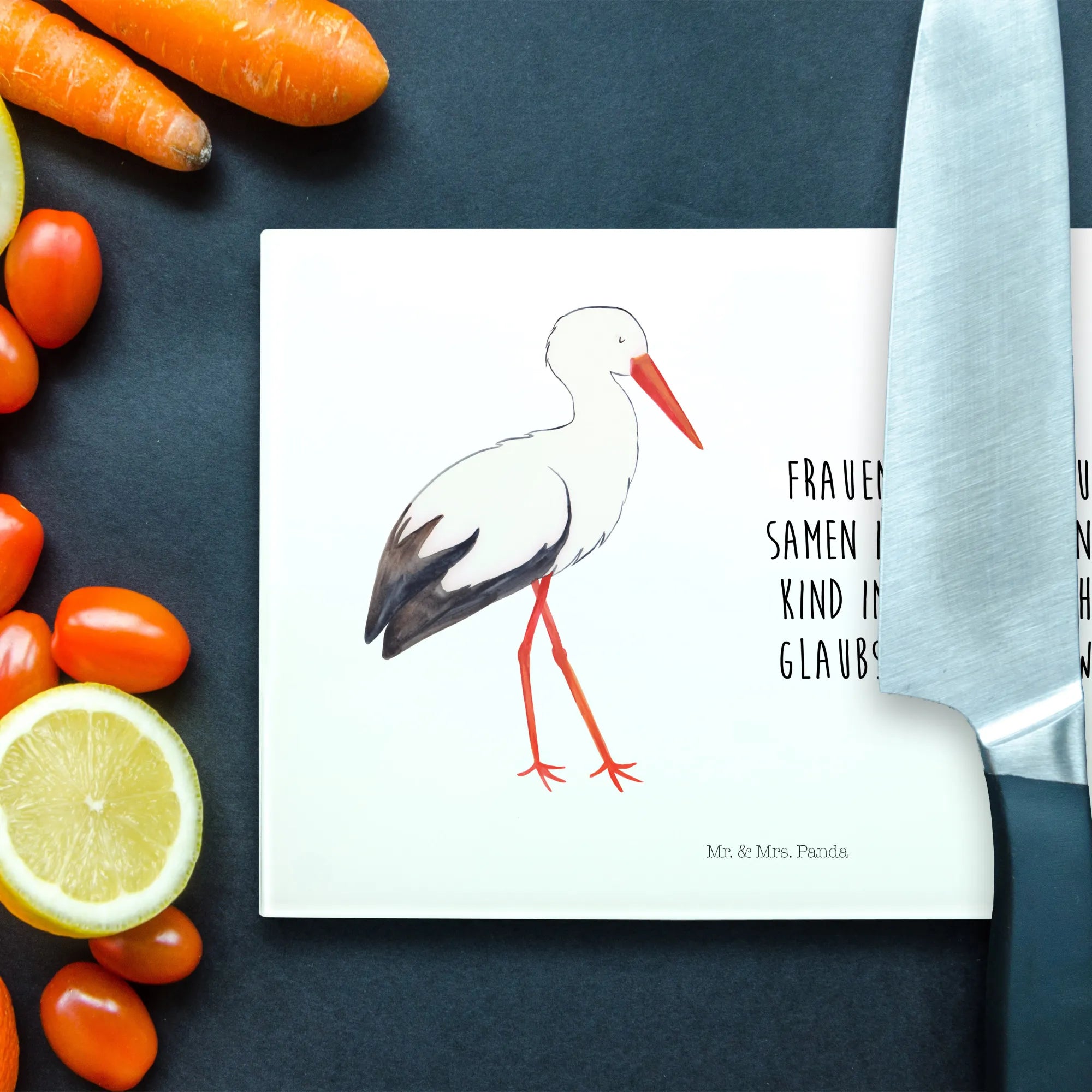 Glasschneidebrett Storch – Mr. & Mrs. Panda
