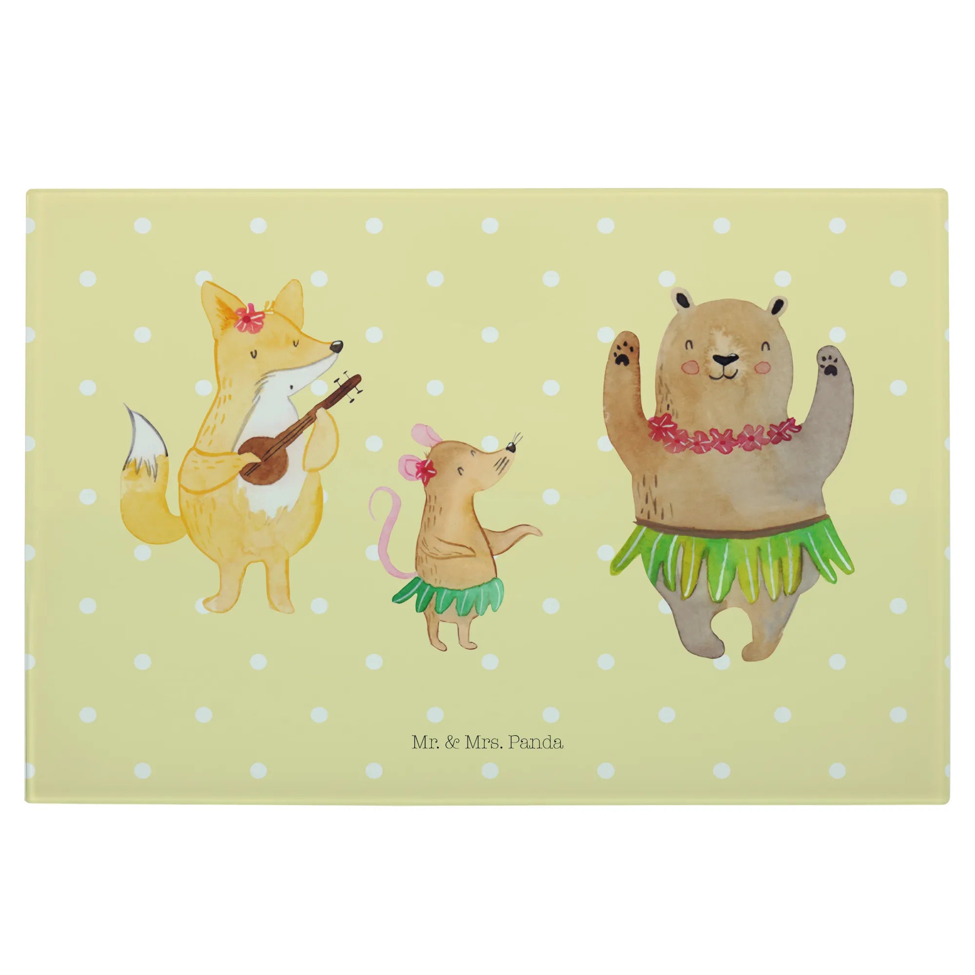 Entdecke das bezaubernde Medium Glas Schneidbrett mit dem liebevollen Motiv der Waldtiere Aloha von Mr. & Mrs. Panda! Dieses einzigartige und stabile Schneidbrett ist nicht nur ein echter Hingucker in deiner Küche, sondern auch das perfekte Geschenk für alle, die das Leben lieben und Freude am Kochen haben.
