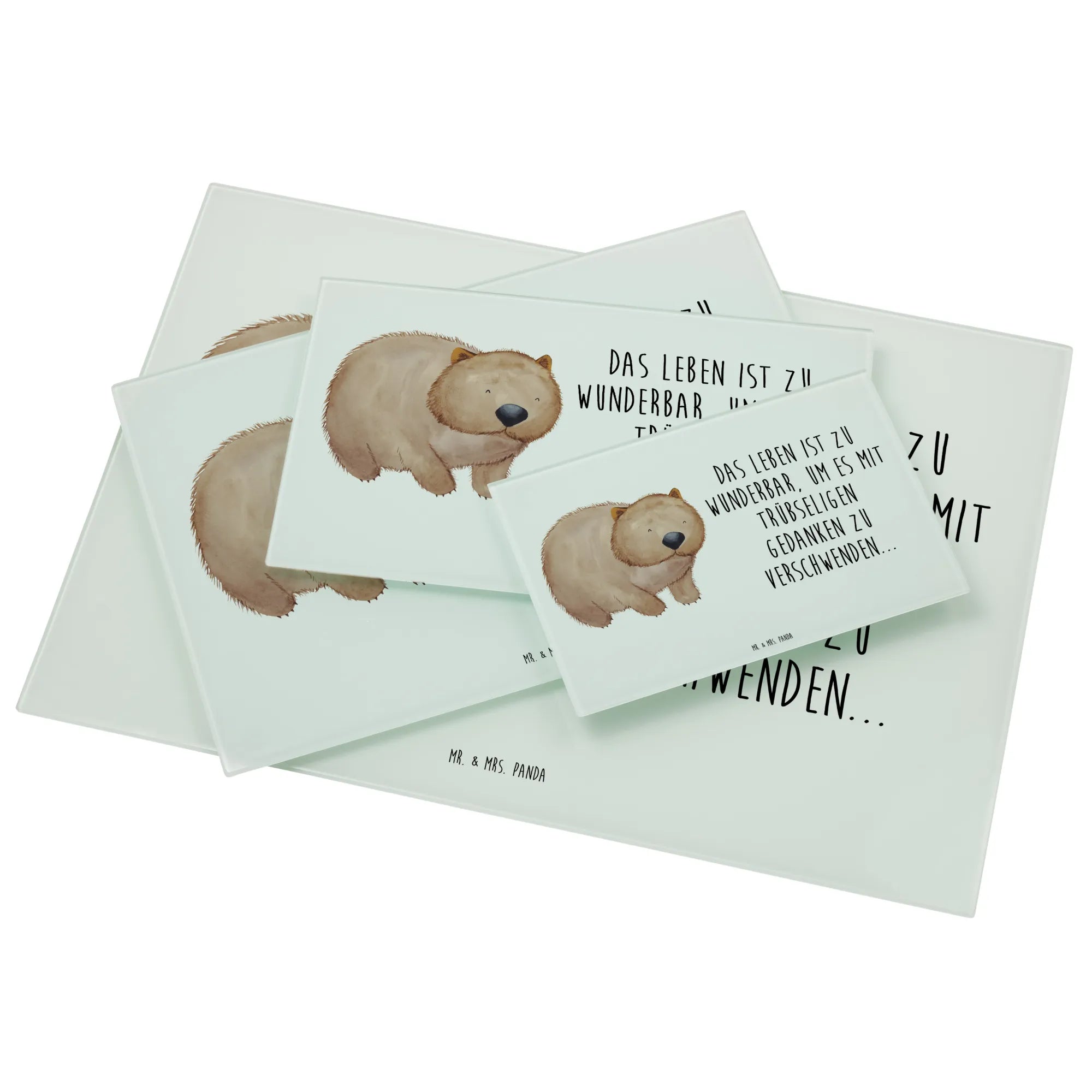 Glasschneidebrett Wombat - Medium Glas Schneidbrett - mit Spruch