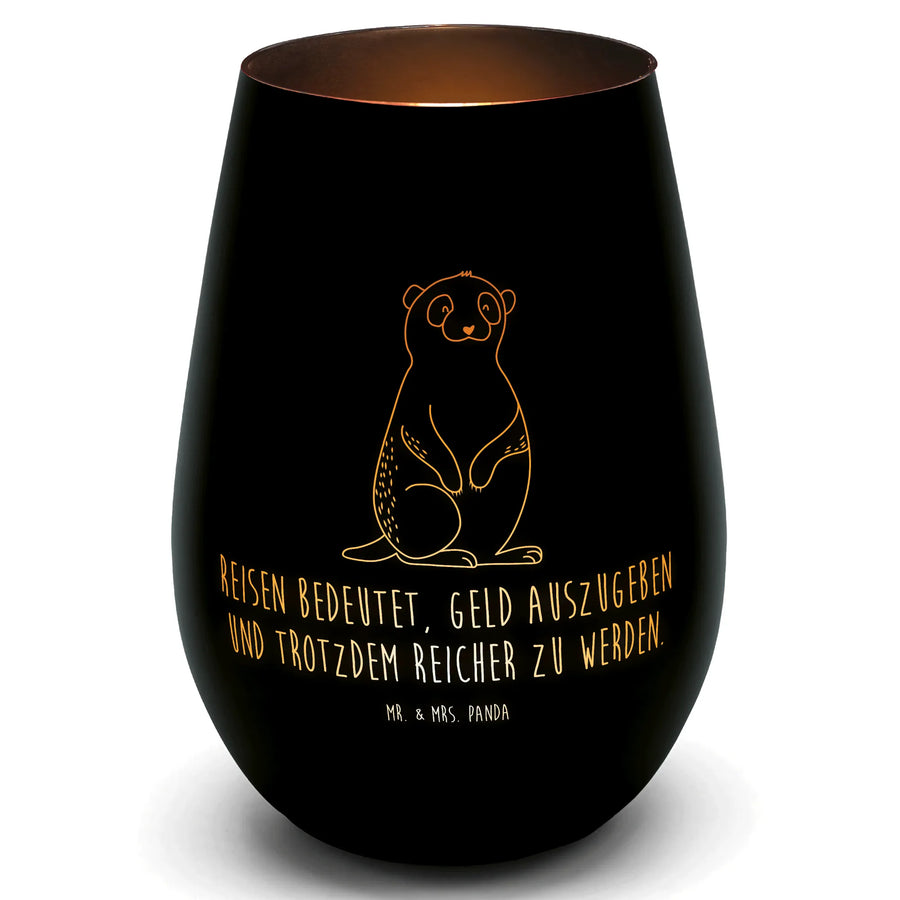 Entdecke das wundervolle Gold Windlicht mit dem niedlichen Erdmännchen-Motiv aus der exquisiten Afrika-Kollektion von Mr. & Mrs. Panda! Dieses wunderschöne und edle Windlicht ist das perfekte Geschenk für Reisefans und Afrika-Liebhaber. Mit dem Slogan 'Reisen bedeutet, Geld auszugeben und trotzdem reicher zu werden' erinnert es jeden Abend an die aufregenden Abenteuer rund um den Globus und die unvergesslichen Momente, die das Reisen mit sich bringt.