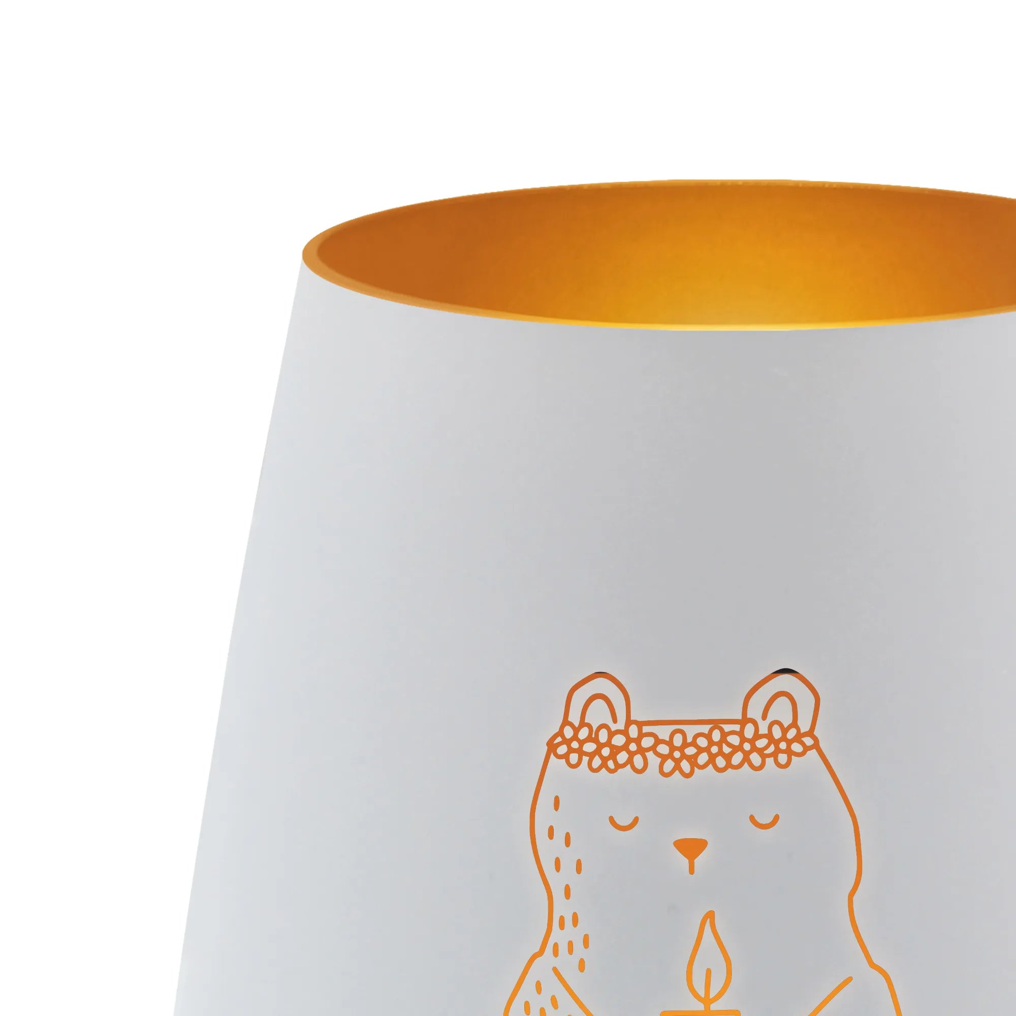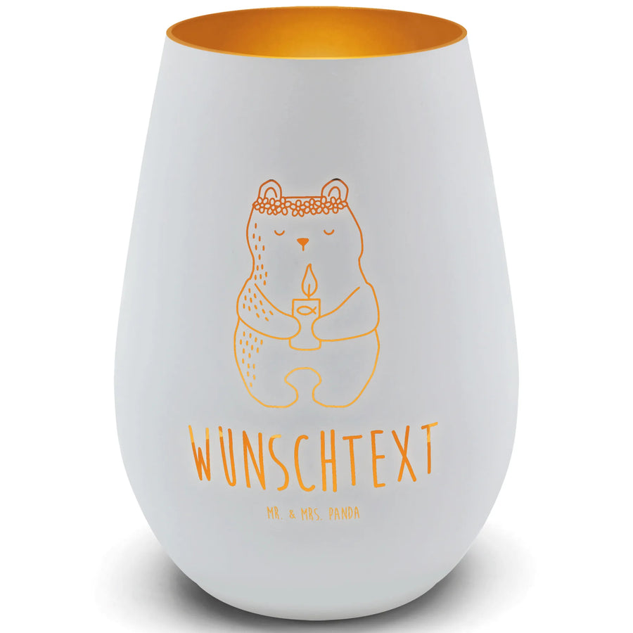Gold Windlicht Personalisiert Bär Kommunion - Weiß