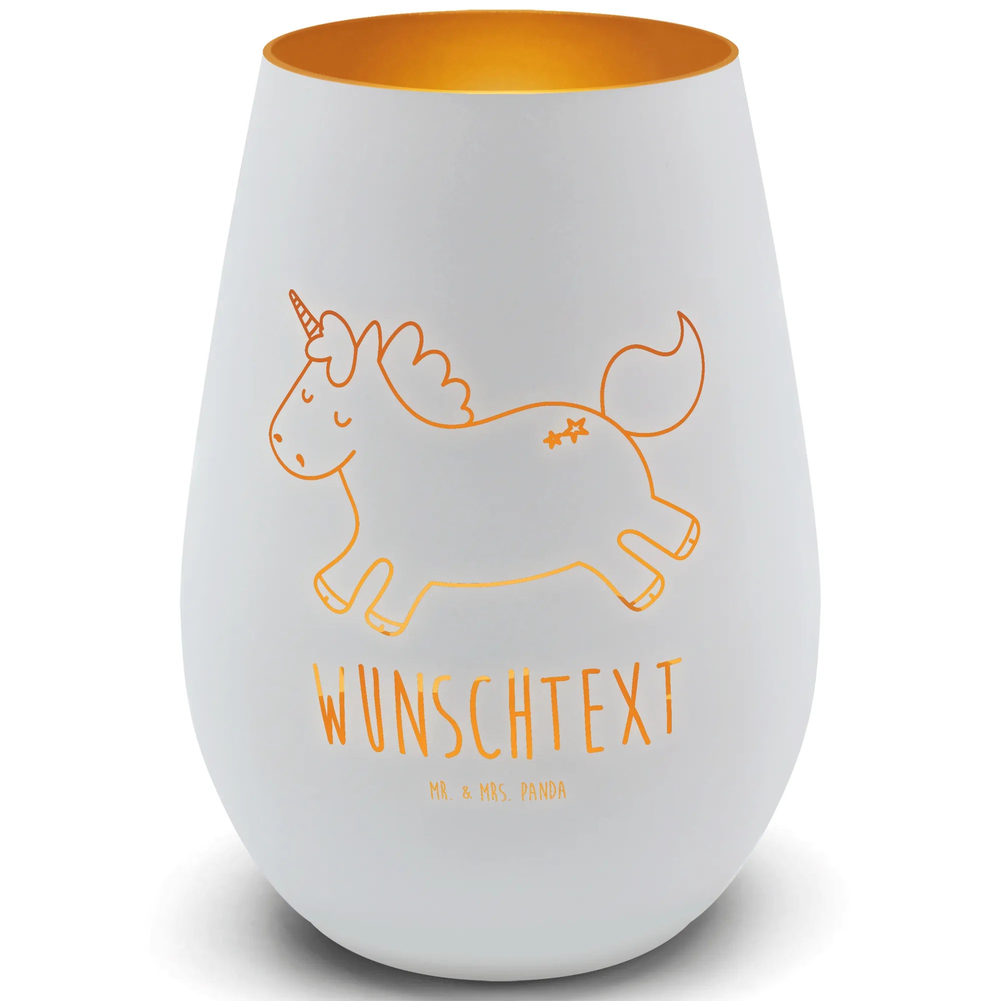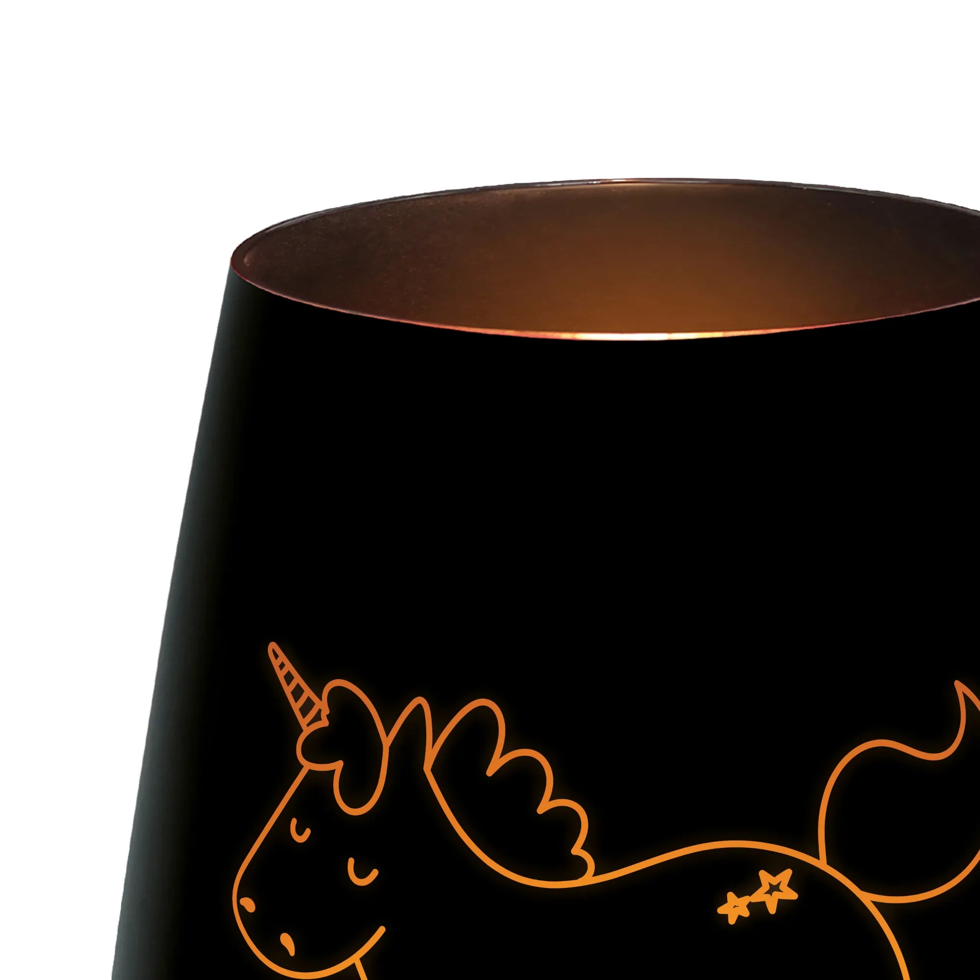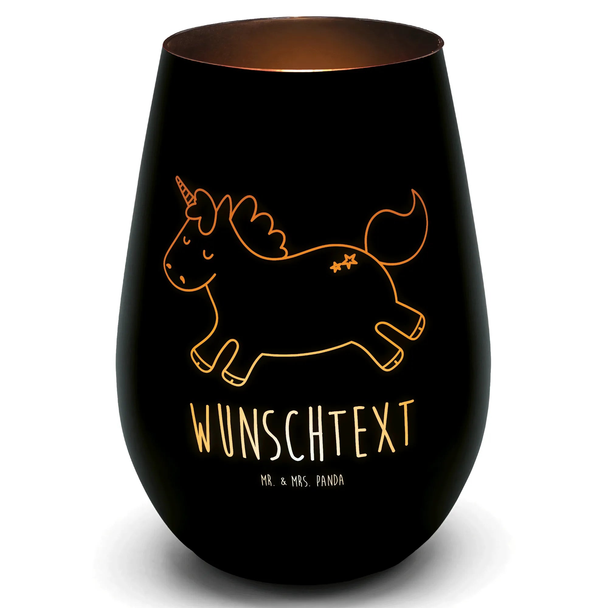 Gold Windlicht Personalisiert Einhorn Happy - Schwarz
