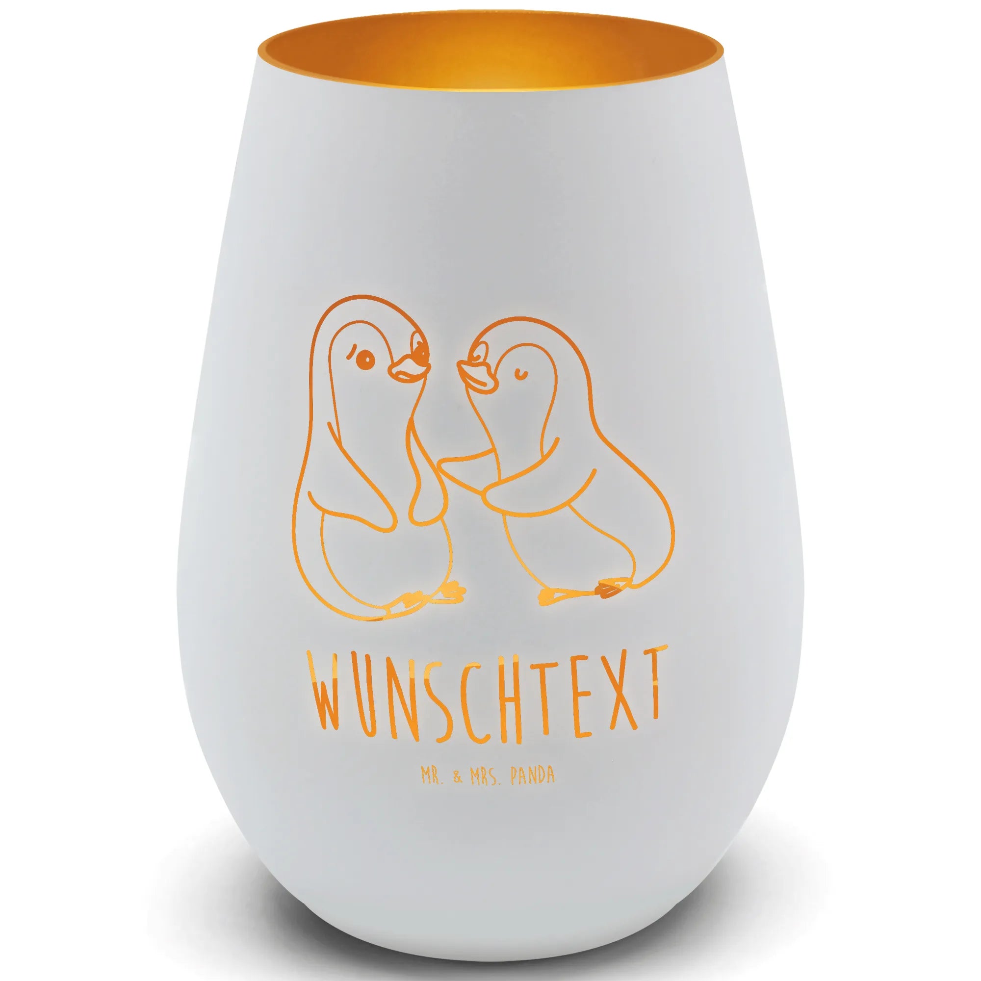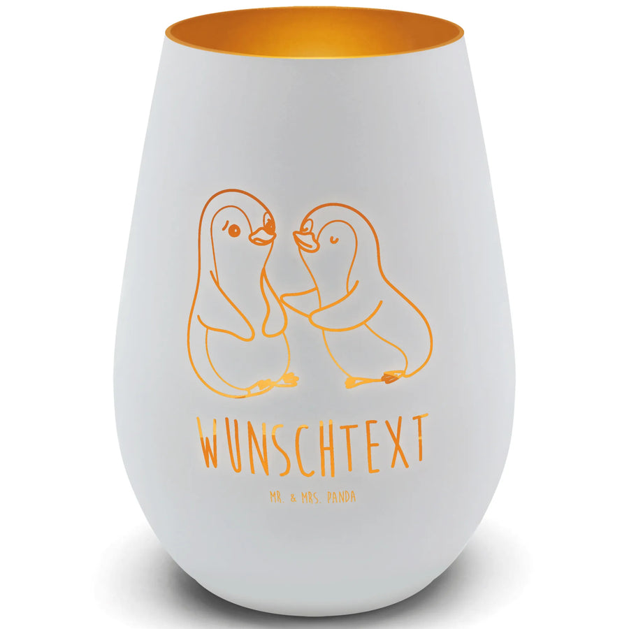 Gold Windlicht Personalisiert Pinguine trösten