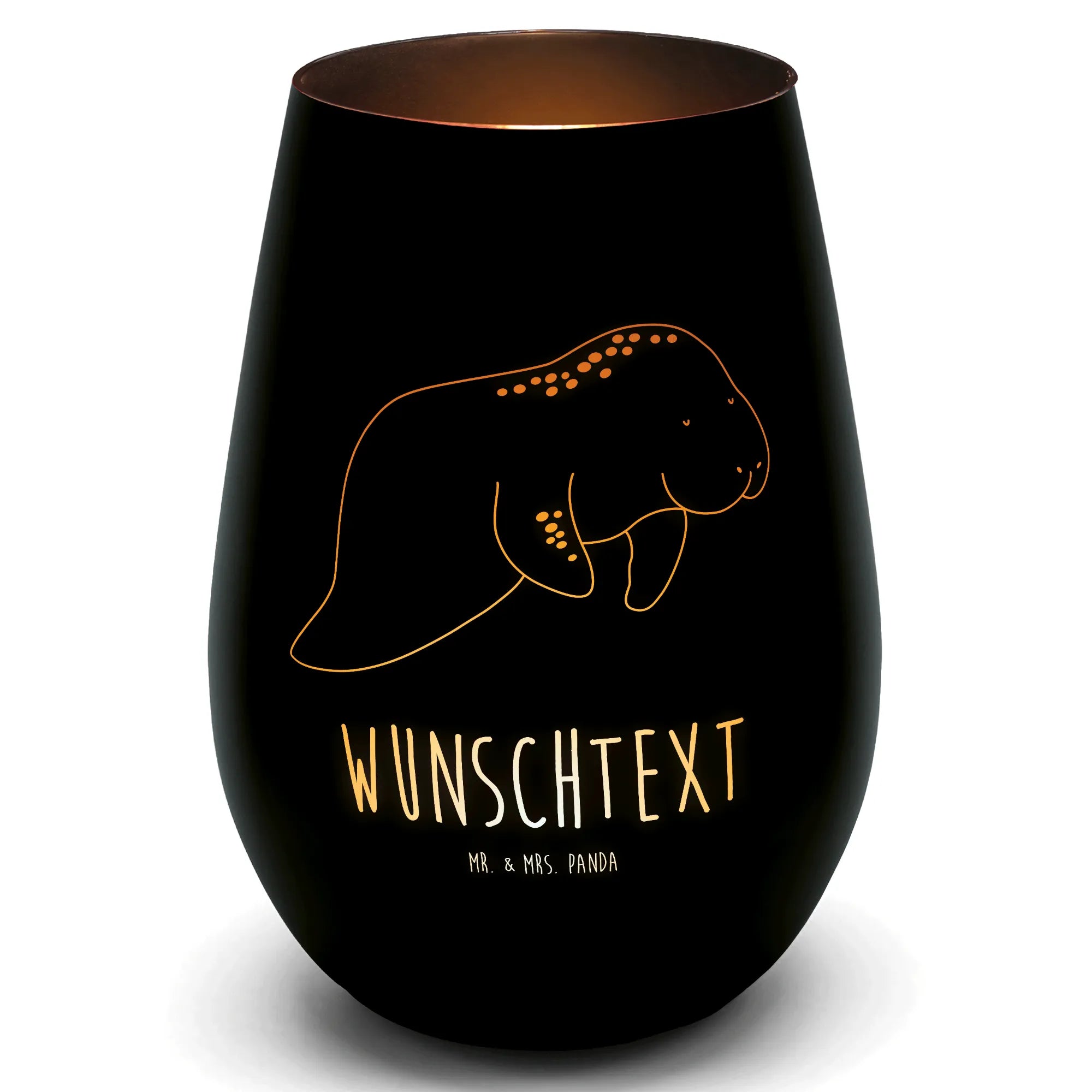 Gold Windlicht Personalisiert Seekuh Chillen - Schwarz