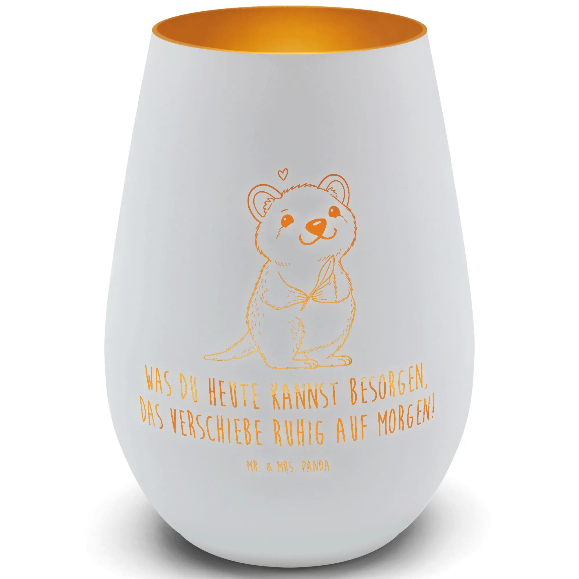 Das Gold Windlicht von Mr. & Mrs. Panda zaubert mit seinem edlen Design sowie seinen wunderschönen gravierten Motiven und Sprüchen eine gemütliche und romantische Atmosphäre in jeden Raum. Mit einer Höhe von 120 mm und einem Durchmesser von 85 mm ist es perfekt für handelsübliche Teelichter geeignet. Die exquisite Herstellung aus Glas sorgt für eleganten Glanz, während das hitzebeständige Material eine sichere Nutzung gewährleistet. Dieses Windlicht ist nicht nur ein toller Blickfang für feierliche Sommerabende oder gemütliche romantische Abende, sondern schützt auch das Teelicht hervorragend vor Wind. Ein besonderes Highlight: Durch die Erhitzung des Materials entsteht ein zauberhafter Matteffekt, der den Glanz des Windlichts unterstreicht. Die Pflege ist ebenfalls kein Problem, da eine sanfte Handwäsche empfohlen wird und das Windlicht zudem spülmaschinengeeignet ist. Das Gold Windlicht wird bereits mit einem Teelicht geliefert, sodass du sofort mit der Verwendung beginnen kannst.