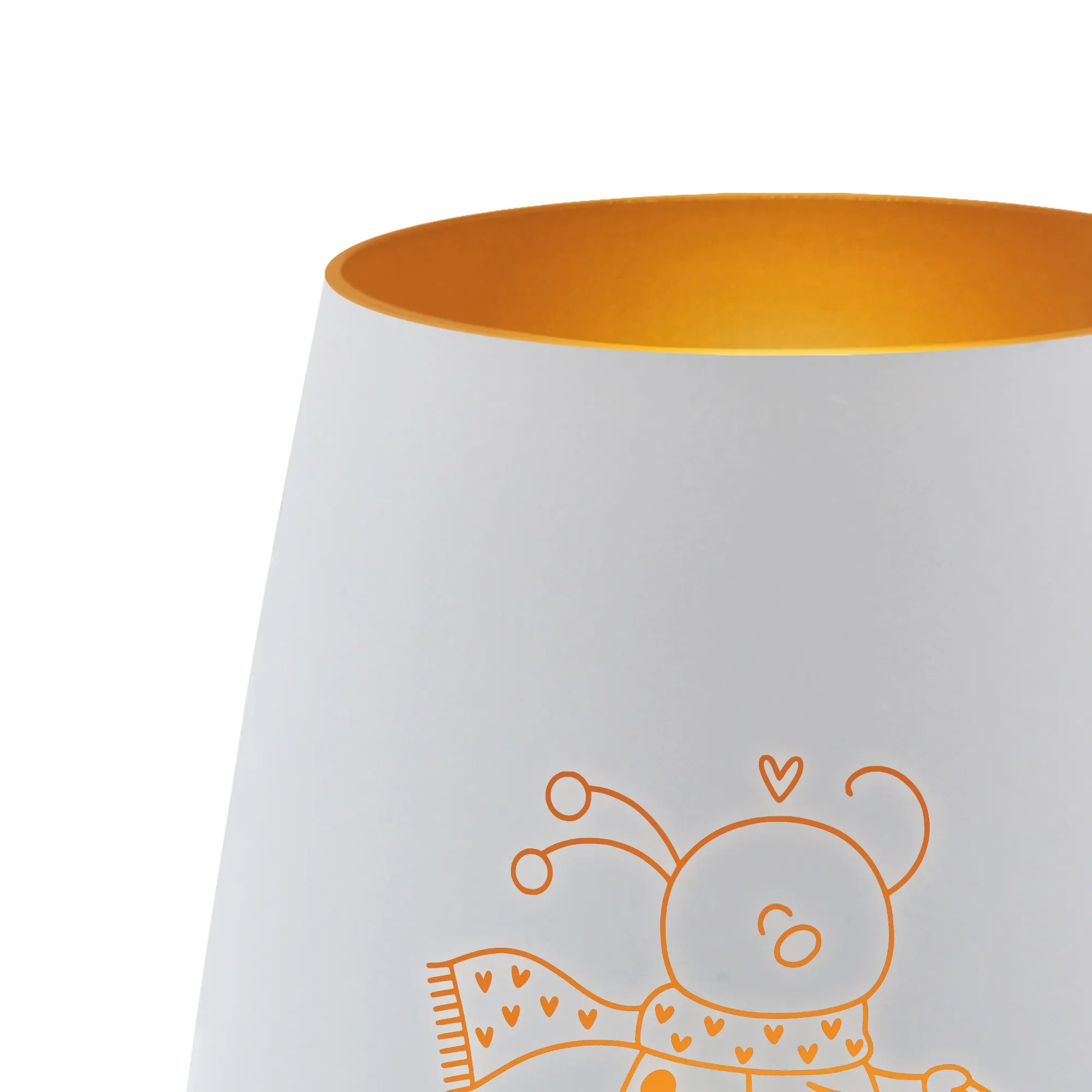 Entdecke das zauberhafte Gold Windlicht von Mr. & Mrs. Panda, das mit seinen liebevollen gravierten Motiven und Sprüchen für eine stimmungsvolle Atmosphäre sorgt. Das Windlicht hat eine Höhe von 120 mm und einen Durchmesser von 85 mm und ist aus hochwertigem Glas gefertigt, das sowohl innen als auch außen lackiert ist. Ideal geeignet für handelsübliche Teelichter, schafft es eine gemütliche und romantische Szene, perfekt für besondere Anlässe oder einfach gemütliche Abende zu Hause. Es schützt die Flamme vor Wind und ist hitzebeständig. Ein besonderes Merkmal des Windlichts ist der matte Effekt, der durch die Erhitzung des Materials entsteht – einfach magisch! Pflegeleicht, mit sanfter Handwäsche ist es schnell gereinigt und kannst du es problemlos in der Spülmaschine reinigen. Das Gold Windlicht wird mit Teelicht geliefert, damit du sofort für Stimmung sorgen kannst.