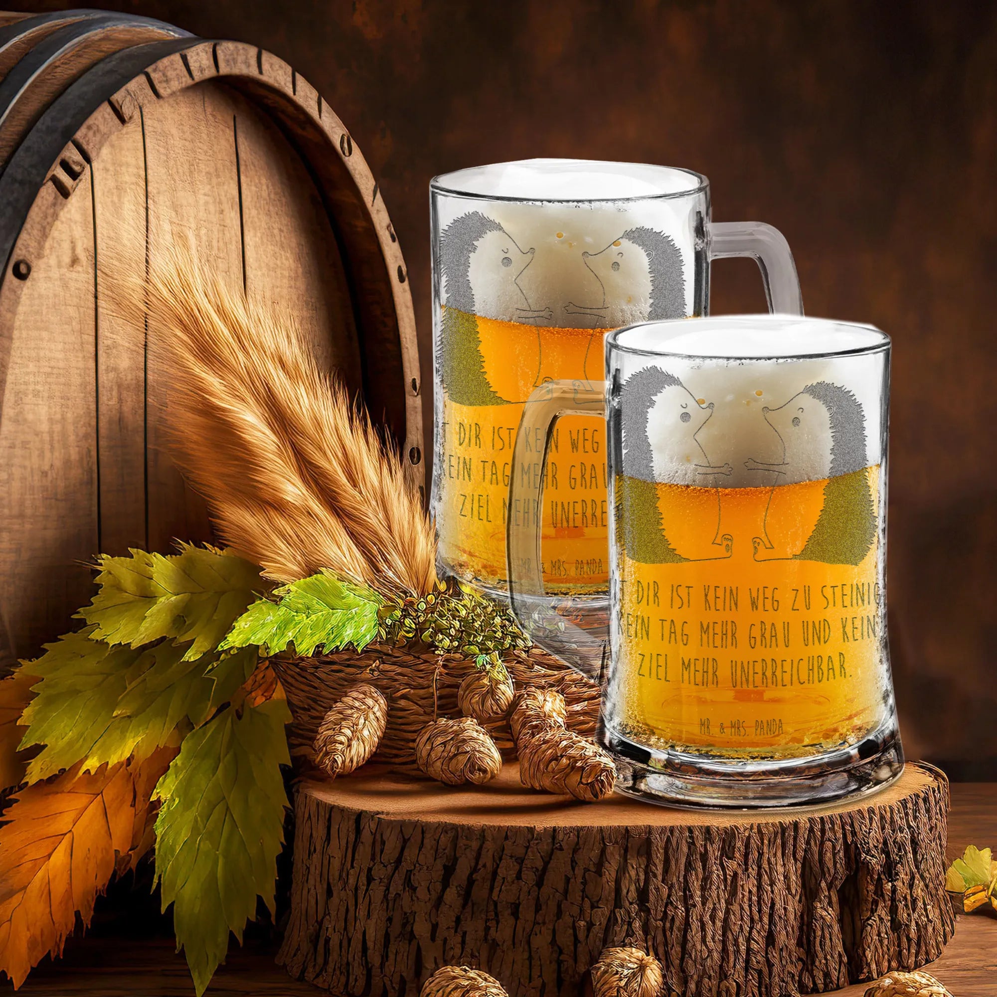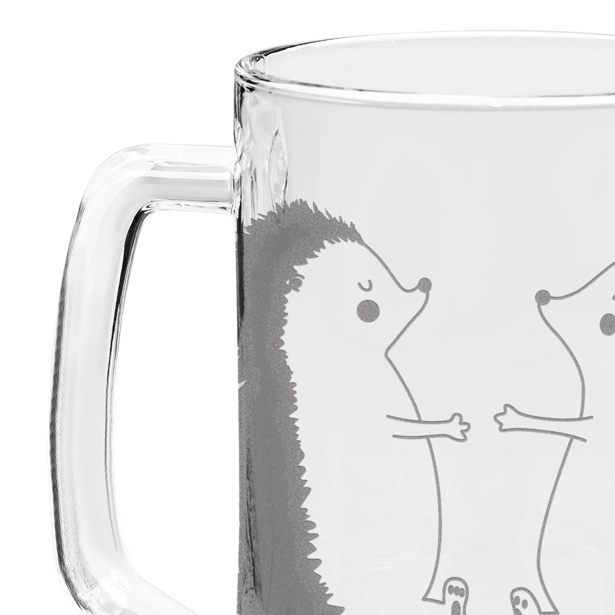 Die hochwertige Lasergravur zeigt zwei niedliche Igelchen, die sich verliebt gegenüberstehen und eine Botschaft der Zuneigung ausstrahlen. Jedes Detail auf dem Bierkrug ist ein Zeichen der Verbundenheit, ein Geschenk, das von Herzen kommt.