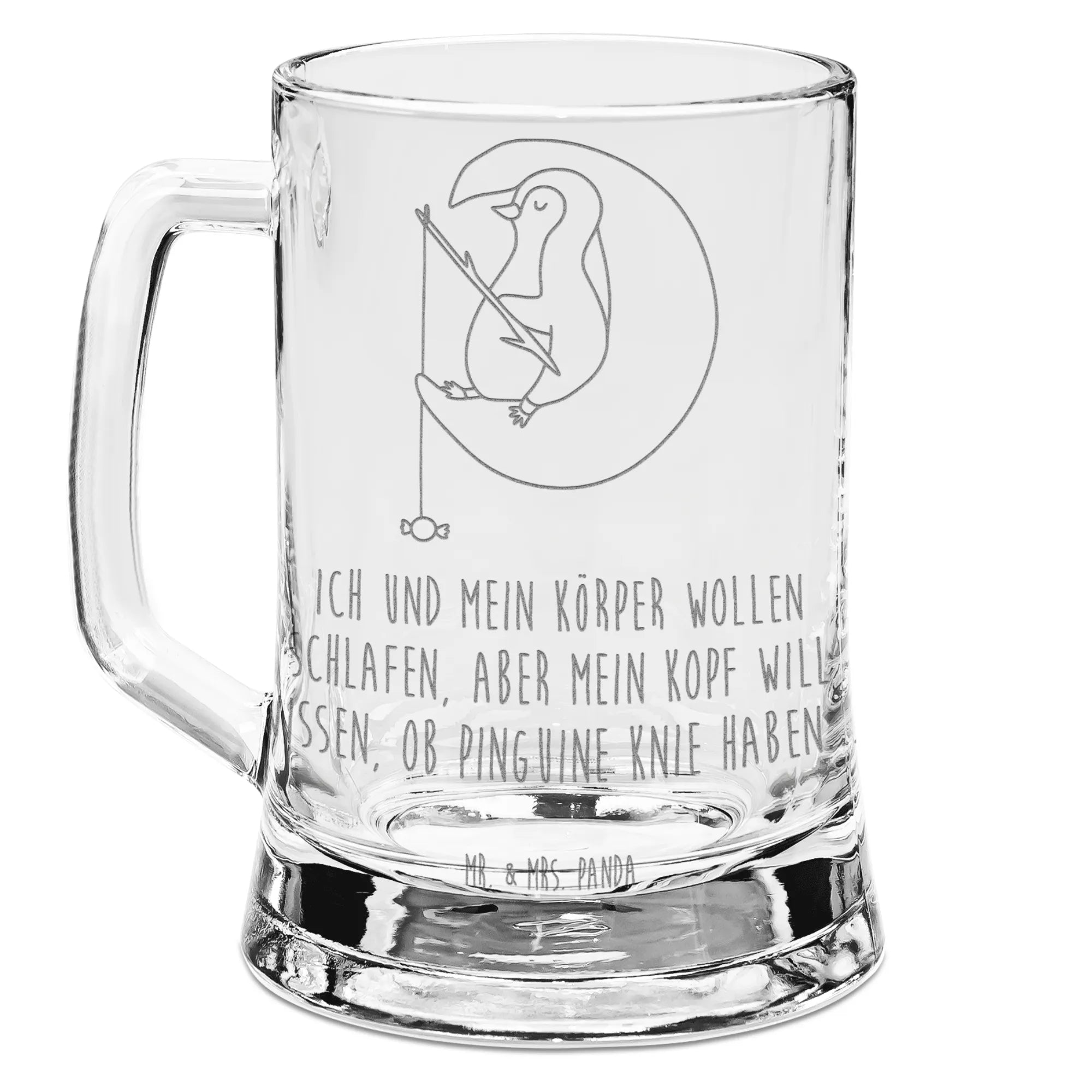 Gravur Bierkrug Pinguin Mond - mit Spruch
