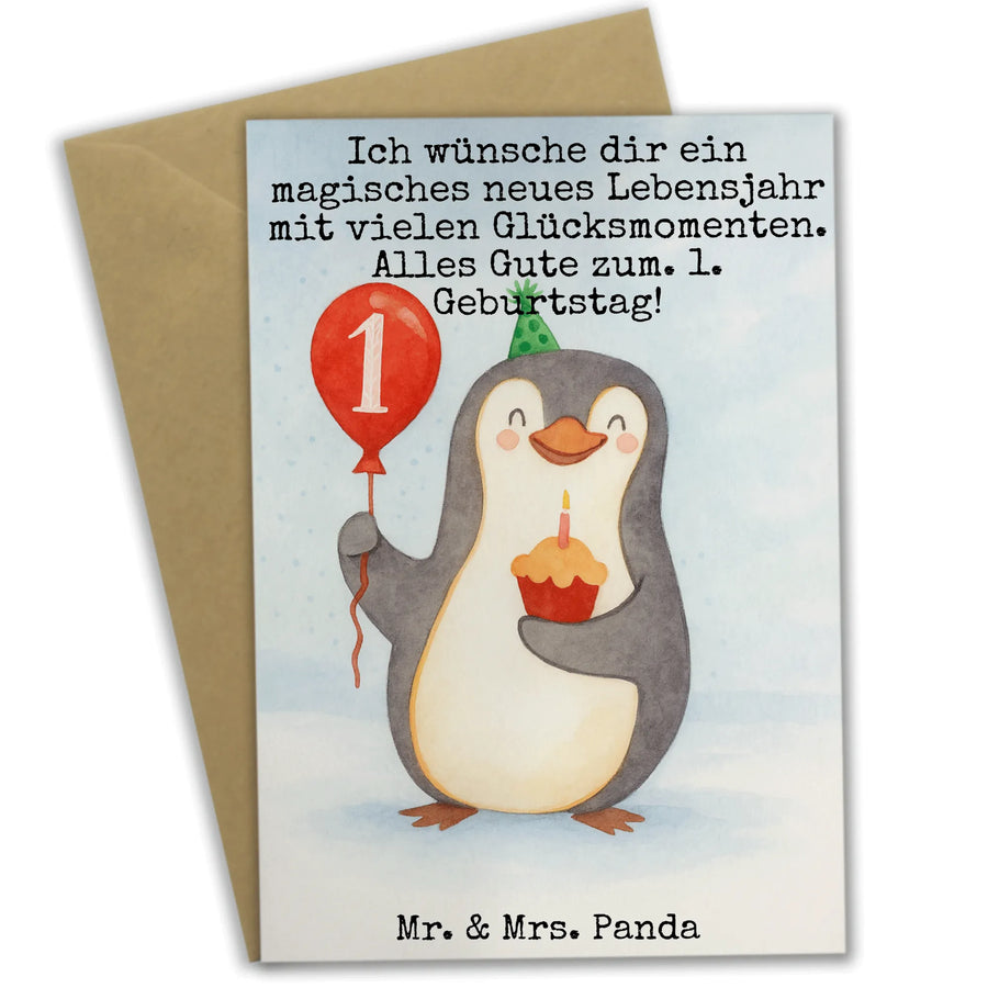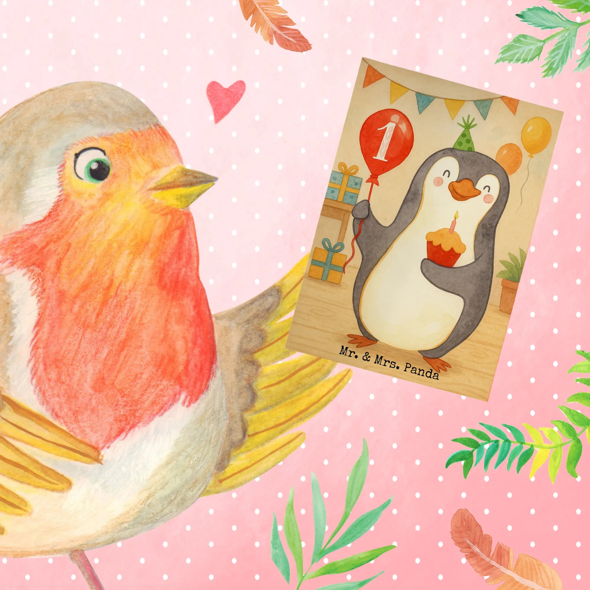 Grußkarte 1. Geburtstag Pinguin Luftballon Design - mit Spruch