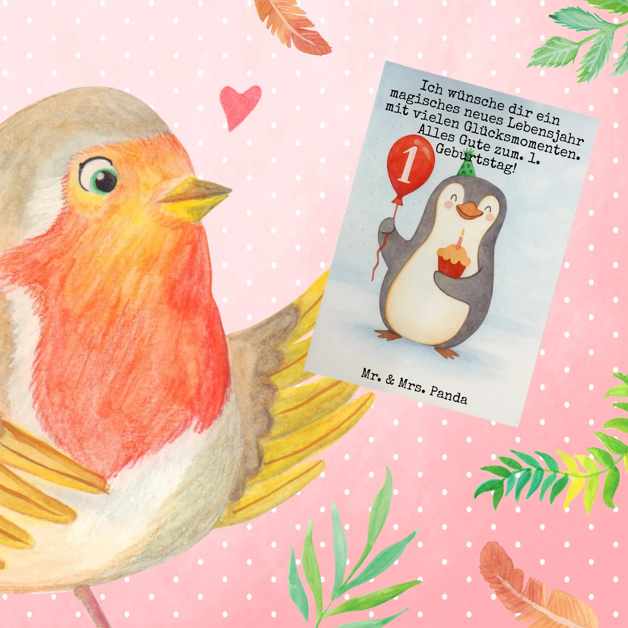 Mit viel Freude und Glanz feiern wir den 1. Geburtstag! Unser Pinguin mit dem lustigen Partyhütchen und dem Luftballon in der Hand bringt Freude in dein Leben. Seine Botschaft „Ich wünsche dir ein magisches neues Lebensjahr mit vielen Glücksmomenten. Alles Gute zum 1. Geburtstag!“ ist das i-Tüpfelchen, das alles Besonderes macht. Jeder Tag ist jetzt ein neuer Schritt auf deiner spannenden Reise ins Leben. Lass uns diesen besonderen Tag mit Lachen und Liebe füllen!