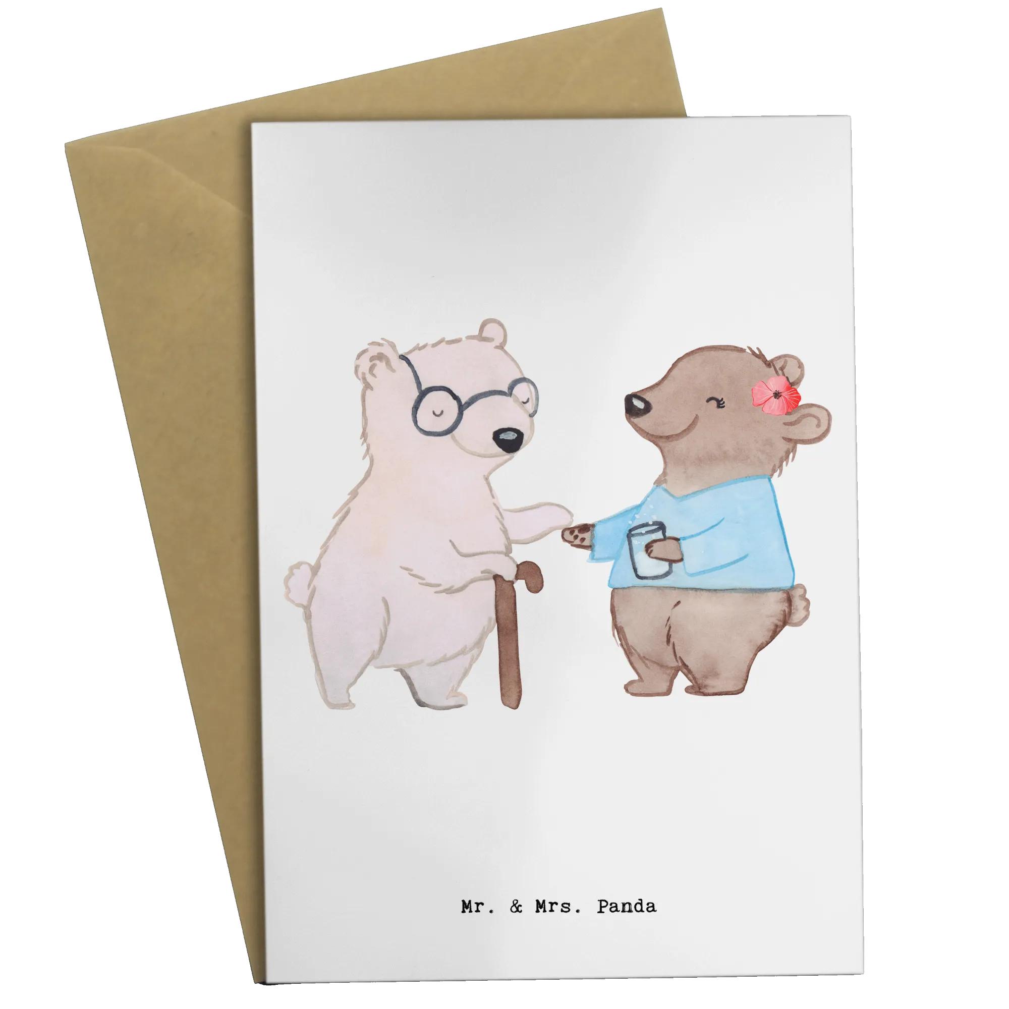 Grußkarte Altenpflegerin mit Herz - mit Spruch - Weiß
