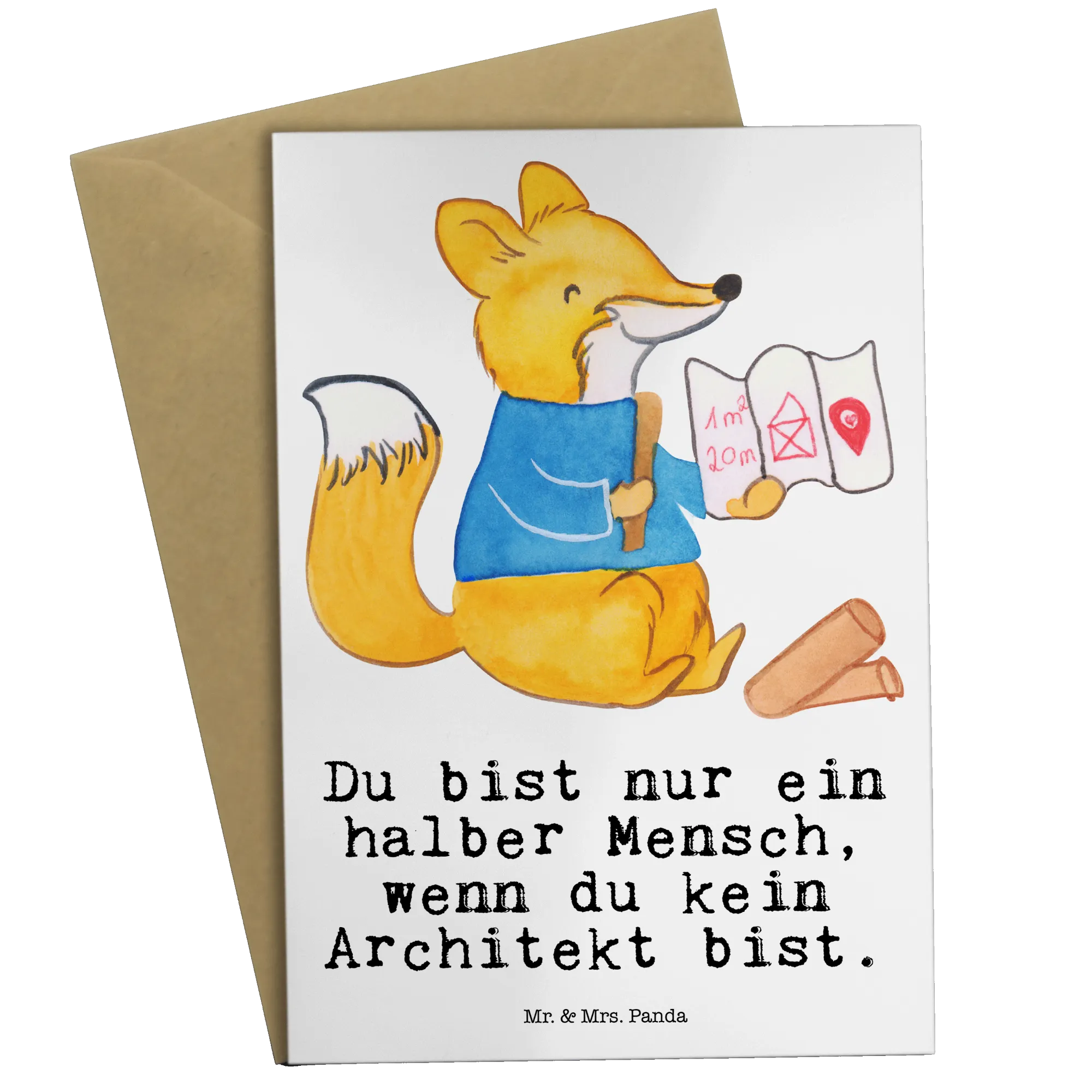 Mit einem niedlichen Fuchs-Motiv, der in Bauplänen sitzt, bringt die Karte ein Lächeln in das Gesicht jedes Architekten. Das Sprichwort "Du bist nur ein halber Mensch, wenn du kein Architekt bist" ziert die Vorderseite und drückt humorvoll die Leidenschaft für diesen Beruf aus.