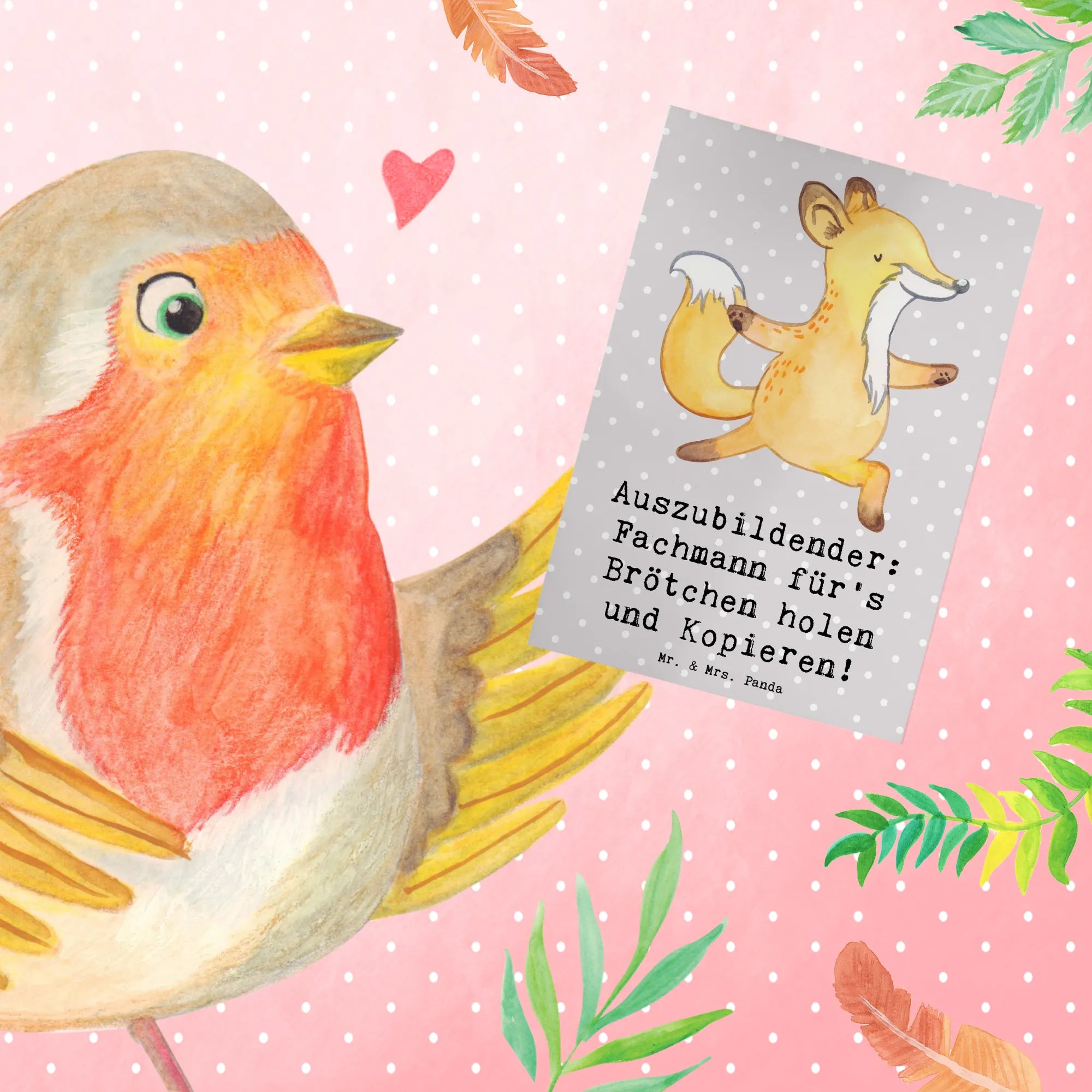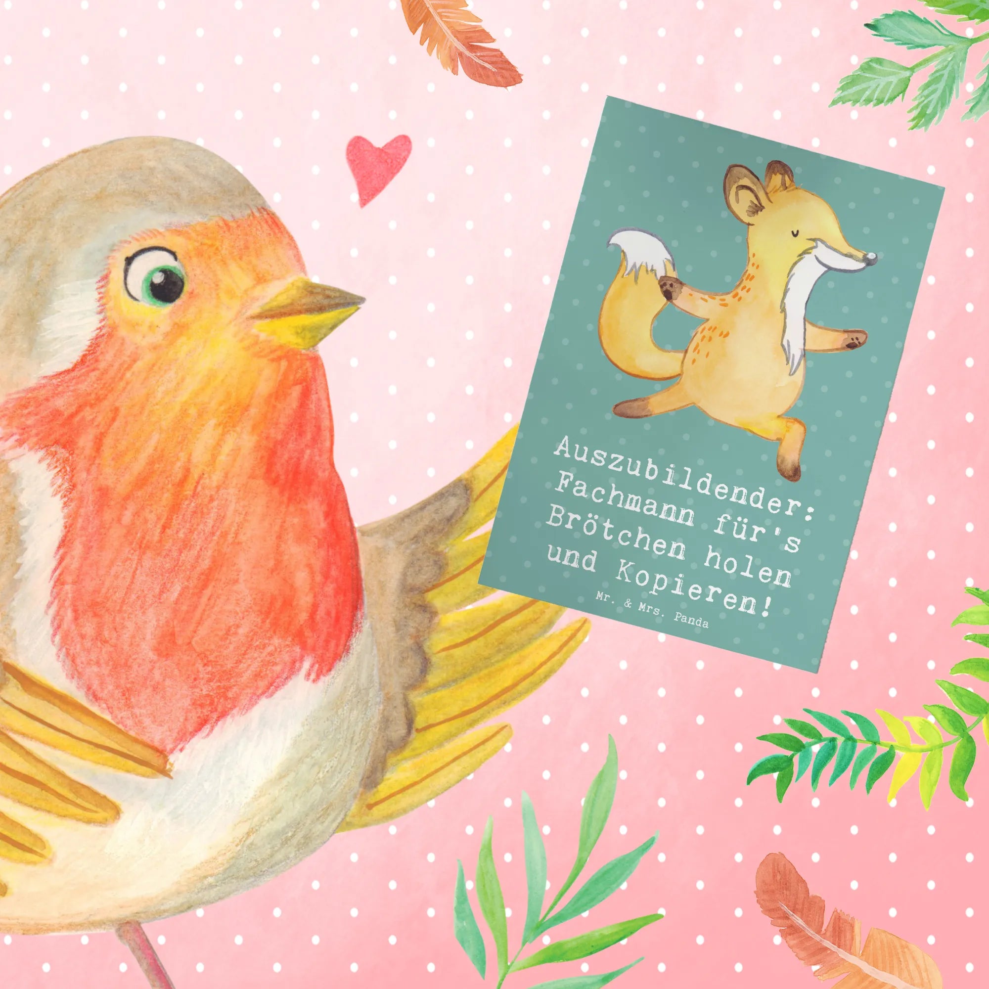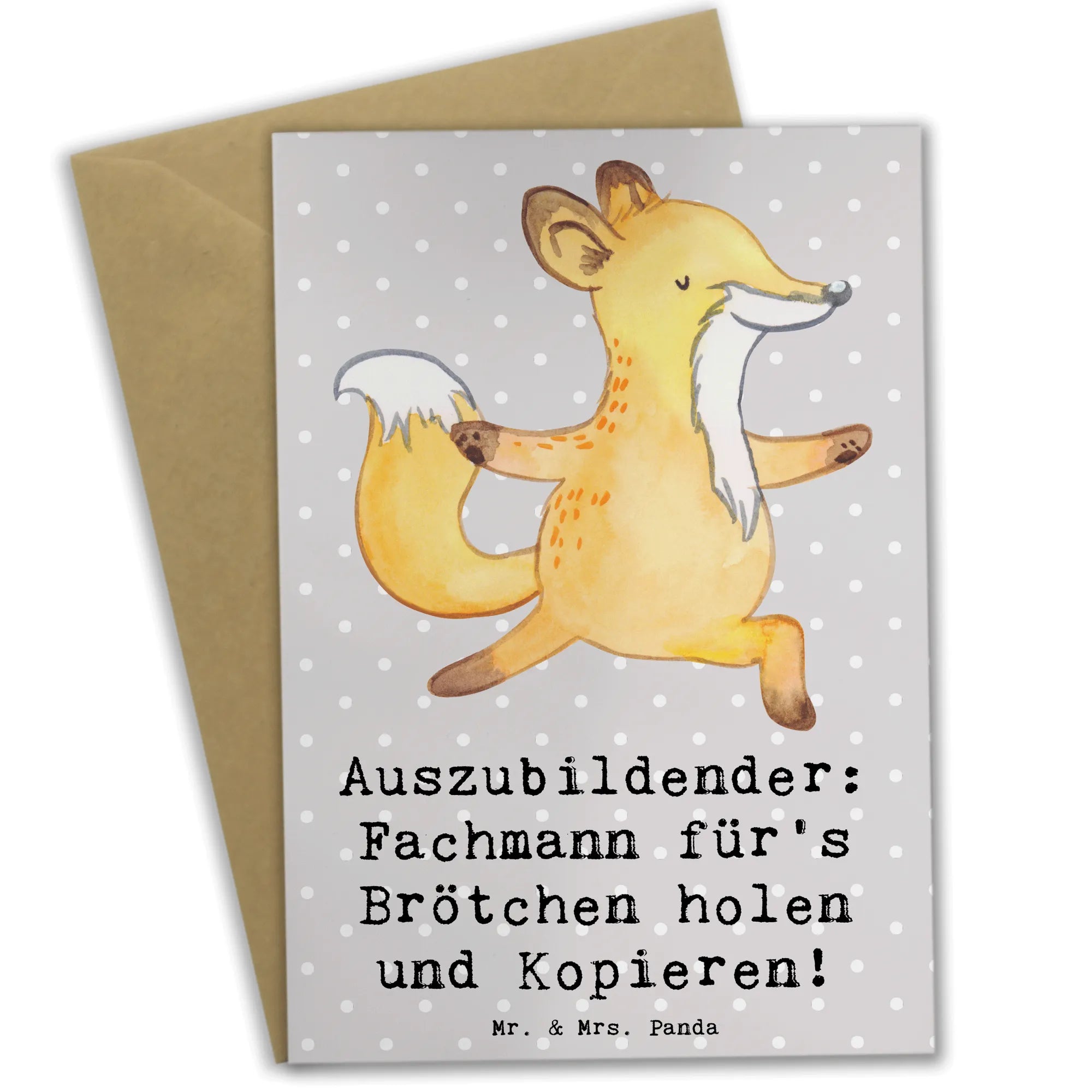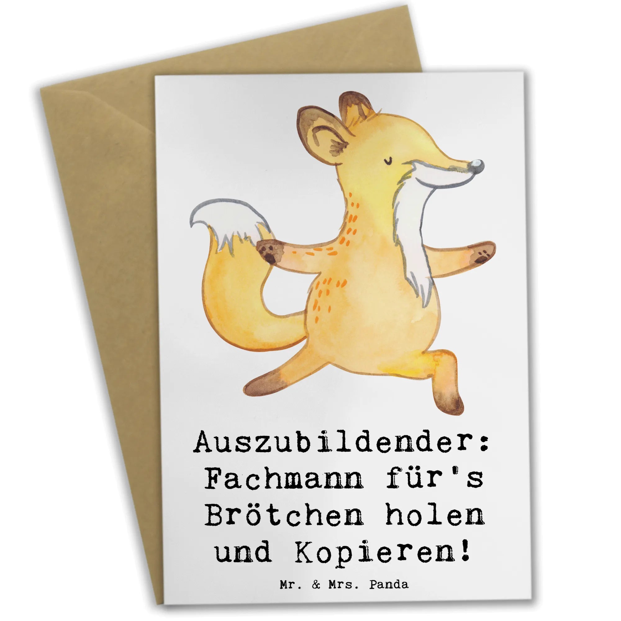 Die Grußkarte "Auszubildender" aus der Kollektion Berufe von Mr. & Mrs. Panda ist das perfekte Geschenk für jeden Auszubildenden oder Berufseinsteiger. Mit dem liebevollen Spruch "Auszubildender: Fachmann für's Brötchen holen und Kopieren!" bringt sie nicht nur ein Lächeln auf die Gesichter, sondern zeigt auch Wertschätzung für die harte Arbeit, die in die Ausbildung investiert wird.