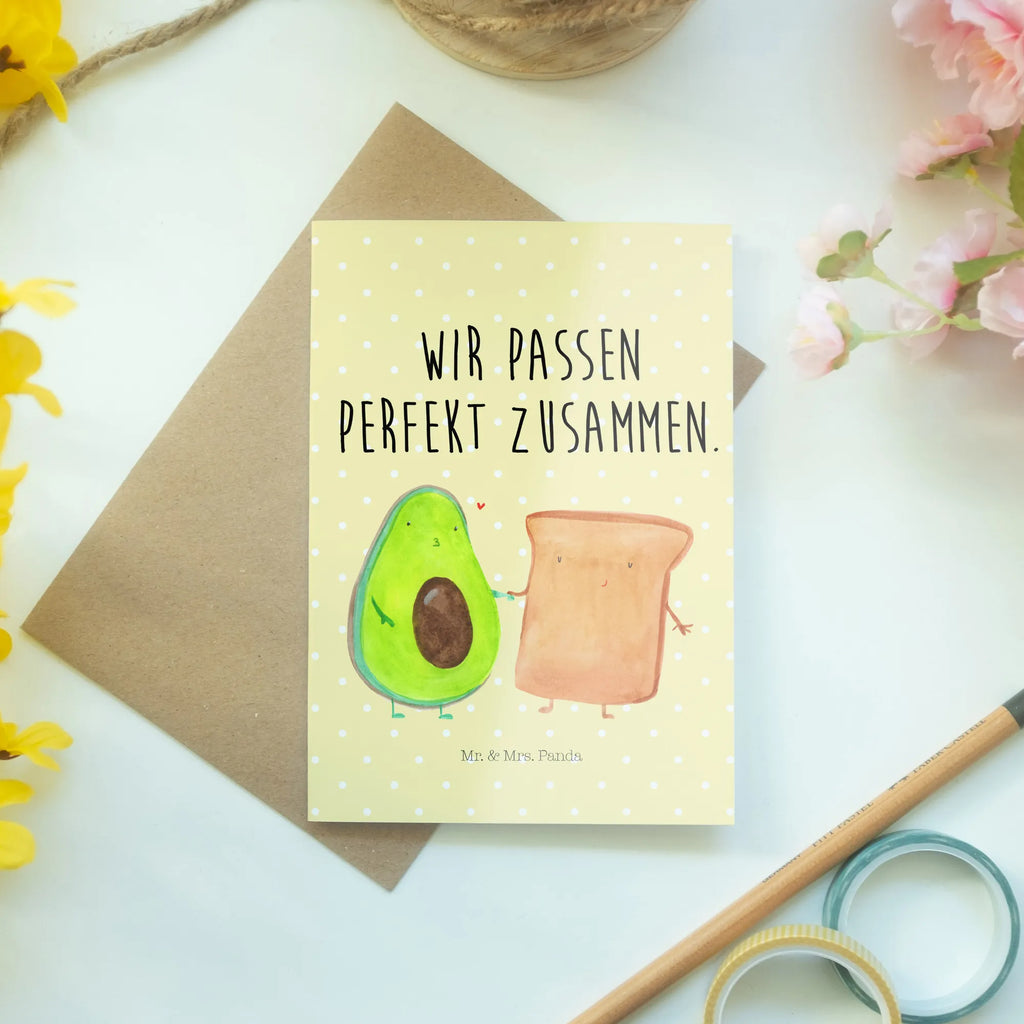 Die Grußkarte "Avocado + Toast" aus der Avocado Kollektion von Mr. & Mrs. Panda ist die perfekte Möglichkeit, um Deine Gefühle und besten Wünsche einem besonderen Menschen zu übermitteln.