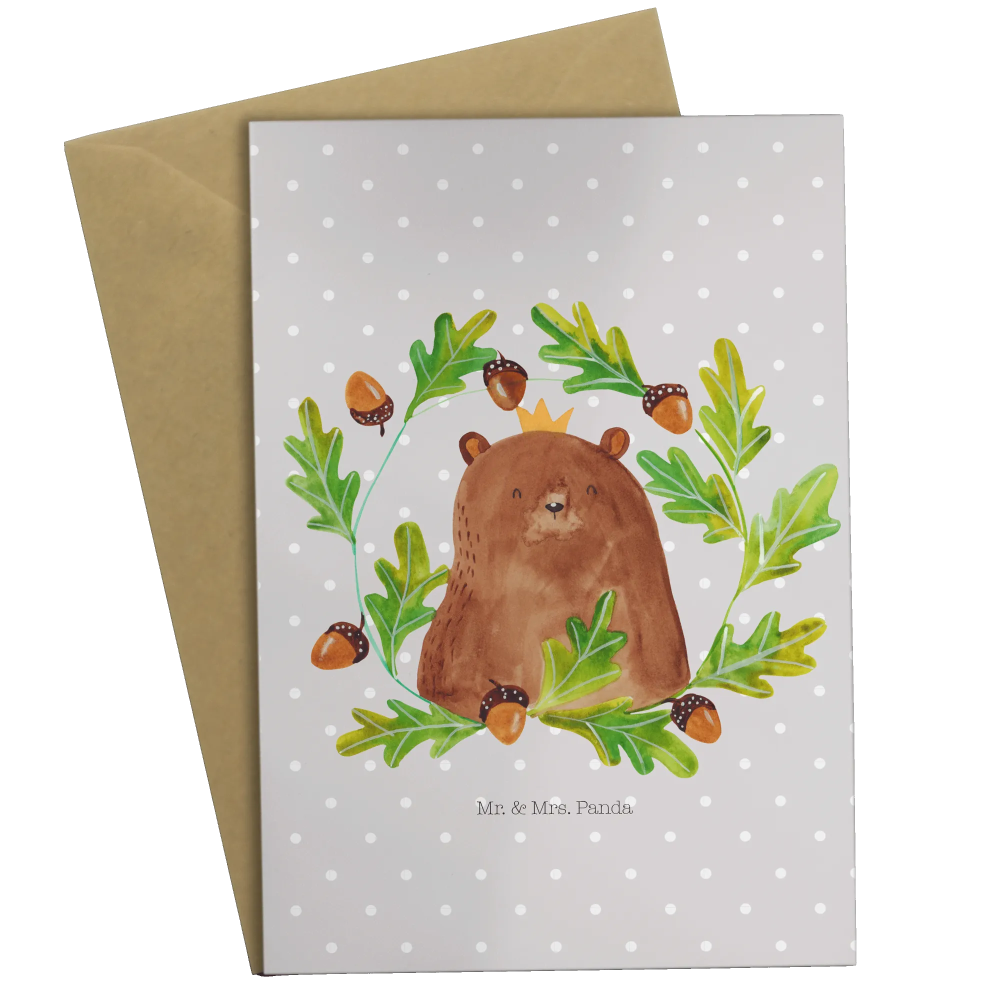 Grußkarte Bär König - mit Spruch - Grau Pastell