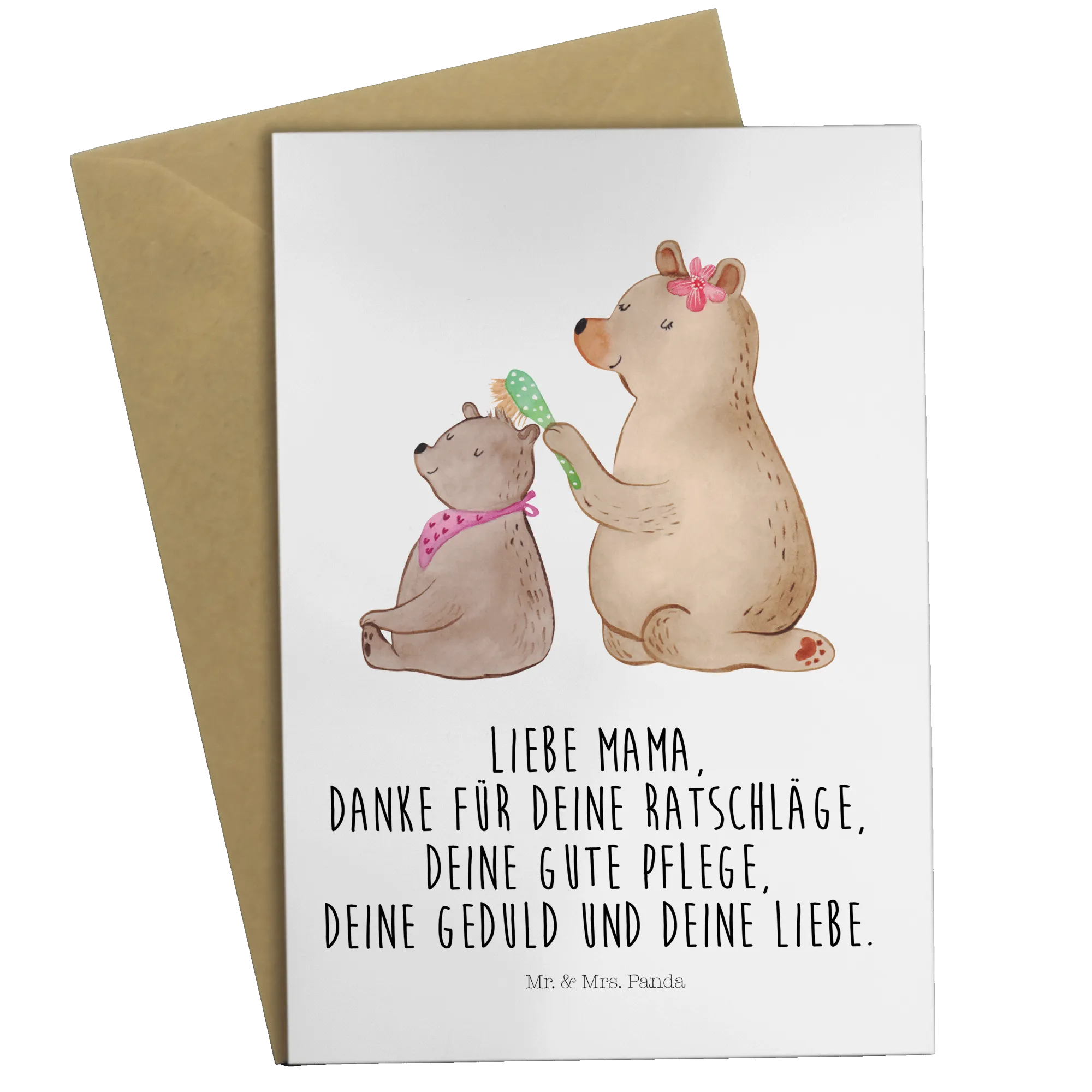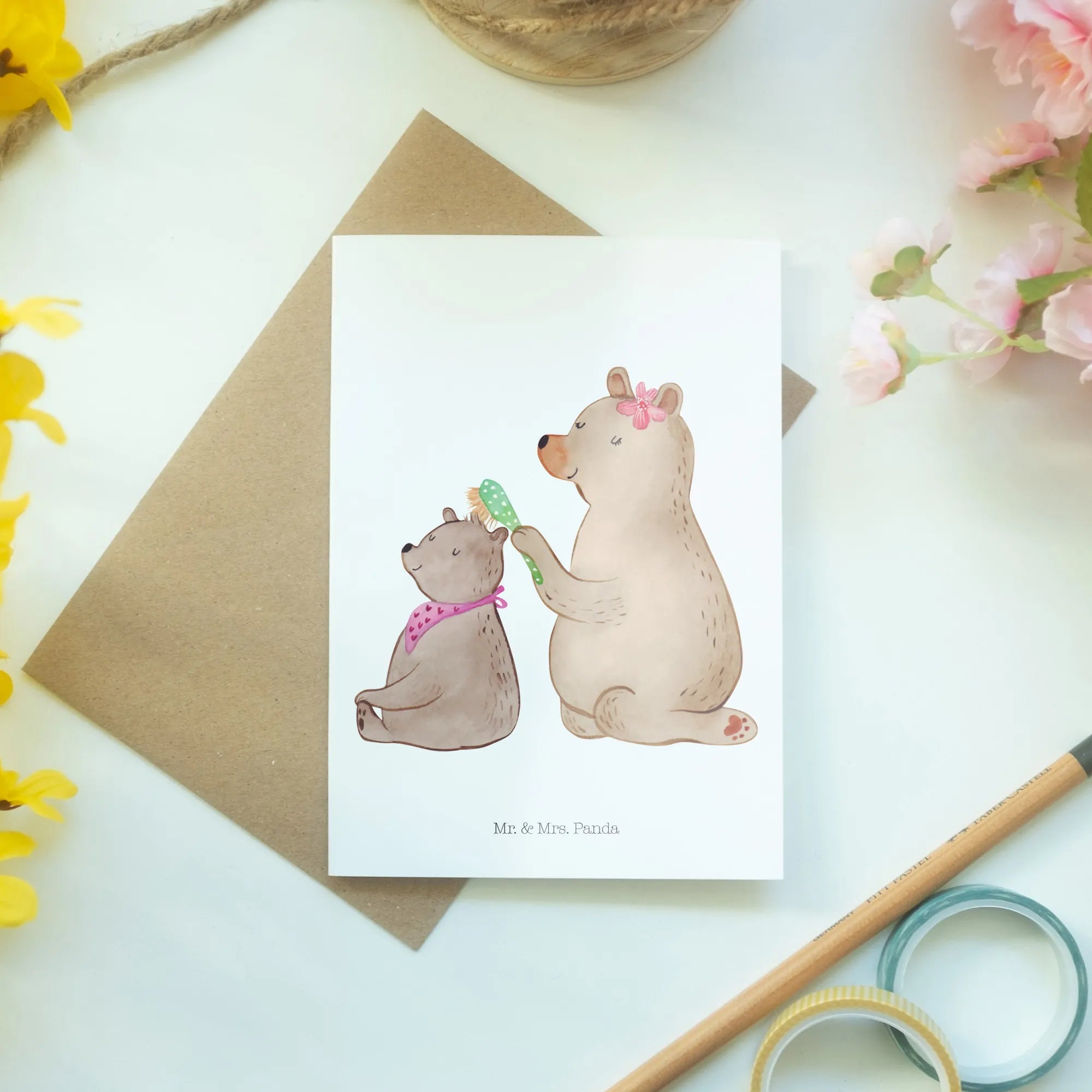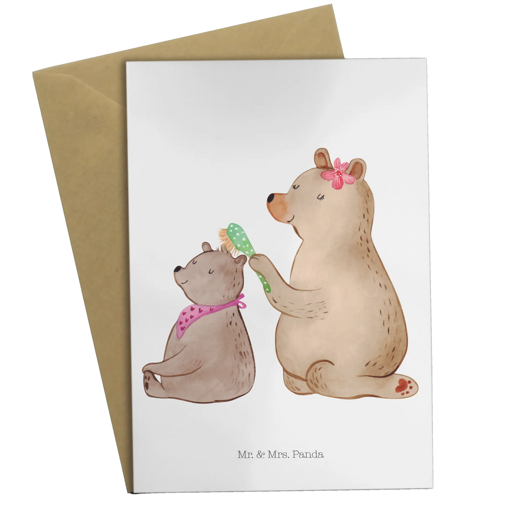 Die Grußkarte "Bär mit Kind" von Mr. & Mrs. Panda ist das perfekte Geschenk für all die Mamas und Mutters, die dein Herz berühren. Mit einem charmanten Design, das einen großen Bären zeigt, der fürsorglich das Fell seines kleinen Bärenbuben frisiert, wird diese Karte zu einem ganz besonderen Gemeinschaftserlebnis zwischen Eltern und Kindern.