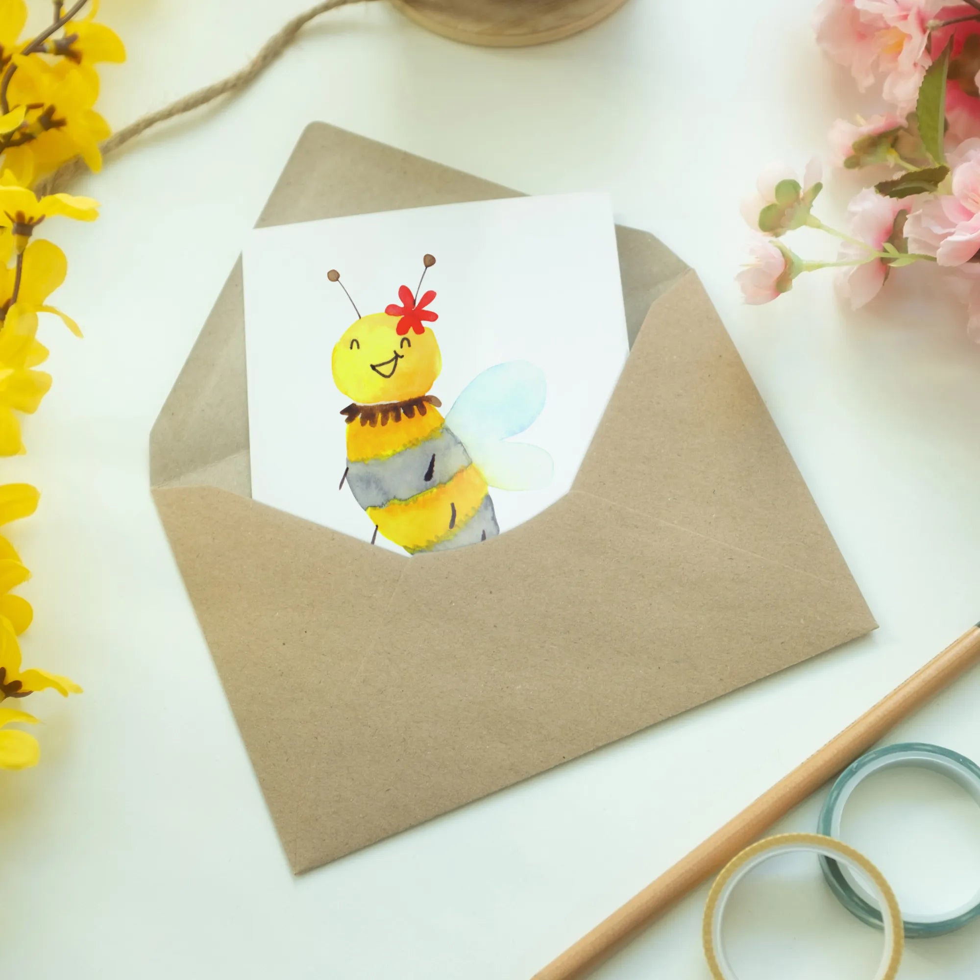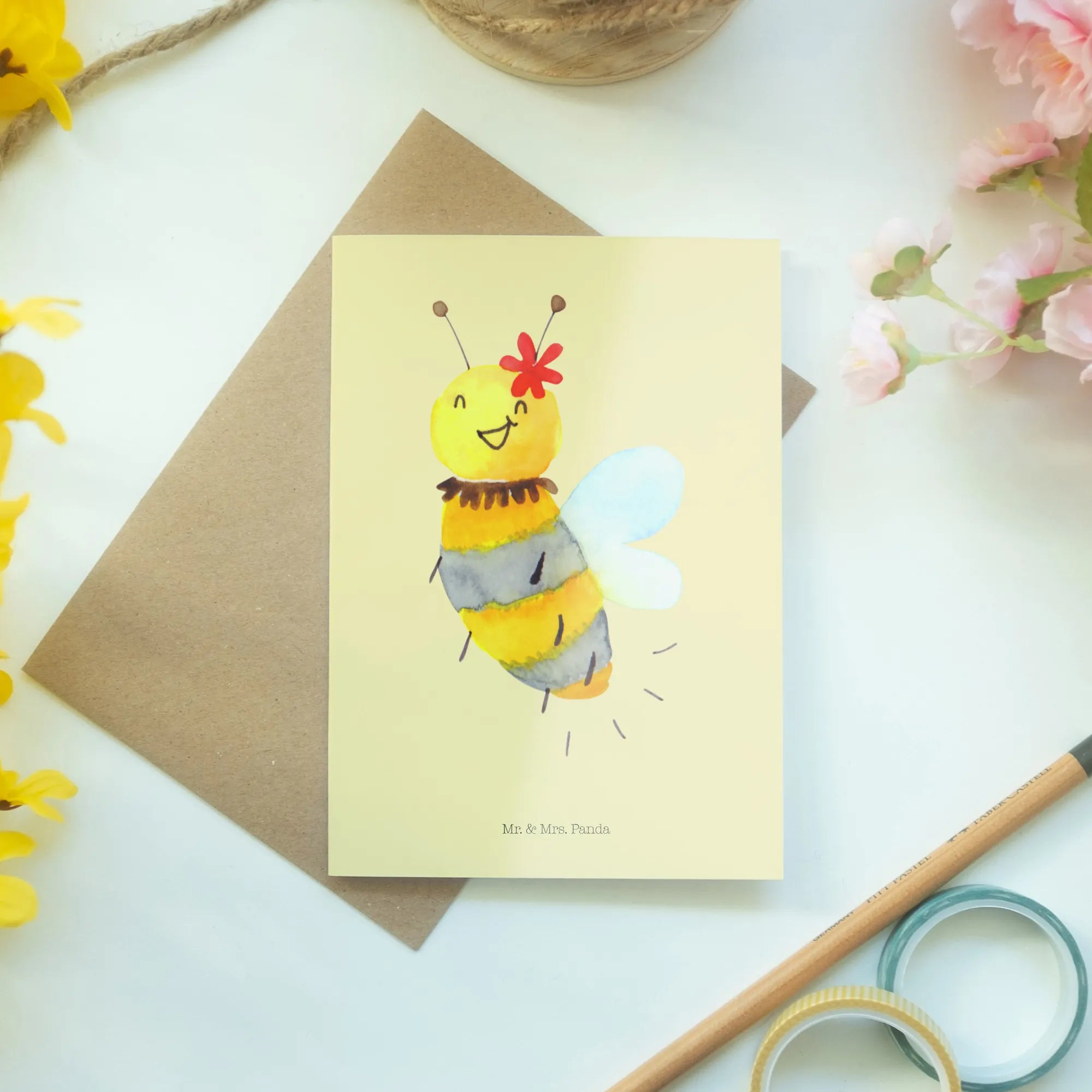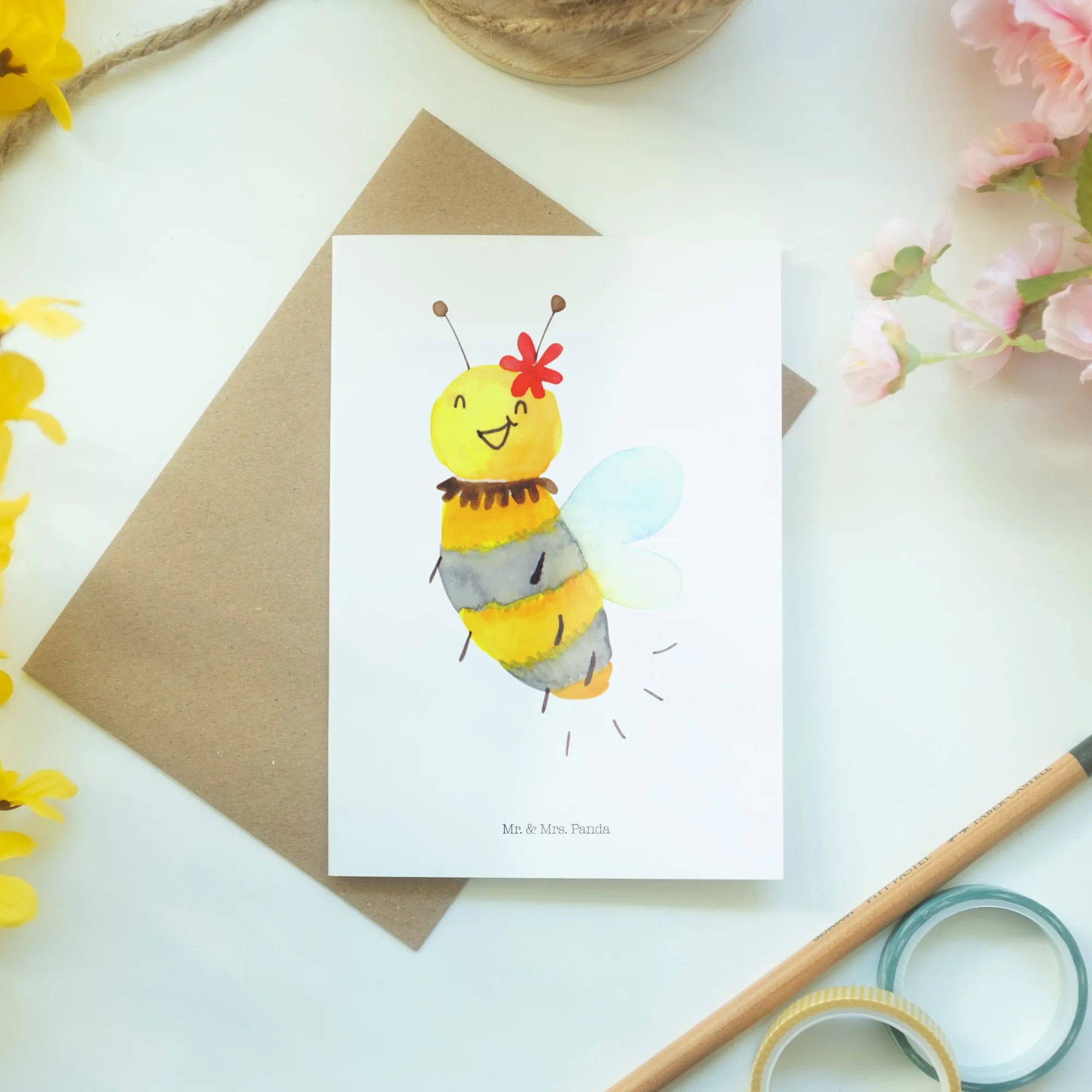 Schöne Grüße! Du suchst das perfekte Geschenk für einen besonderen Anlaß? Dann ist die Grußkarte "Biene Blume" aus der bezaubernden Bienen-Kollektion von Mr. & Mrs. Panda genau das Richtige für dich!