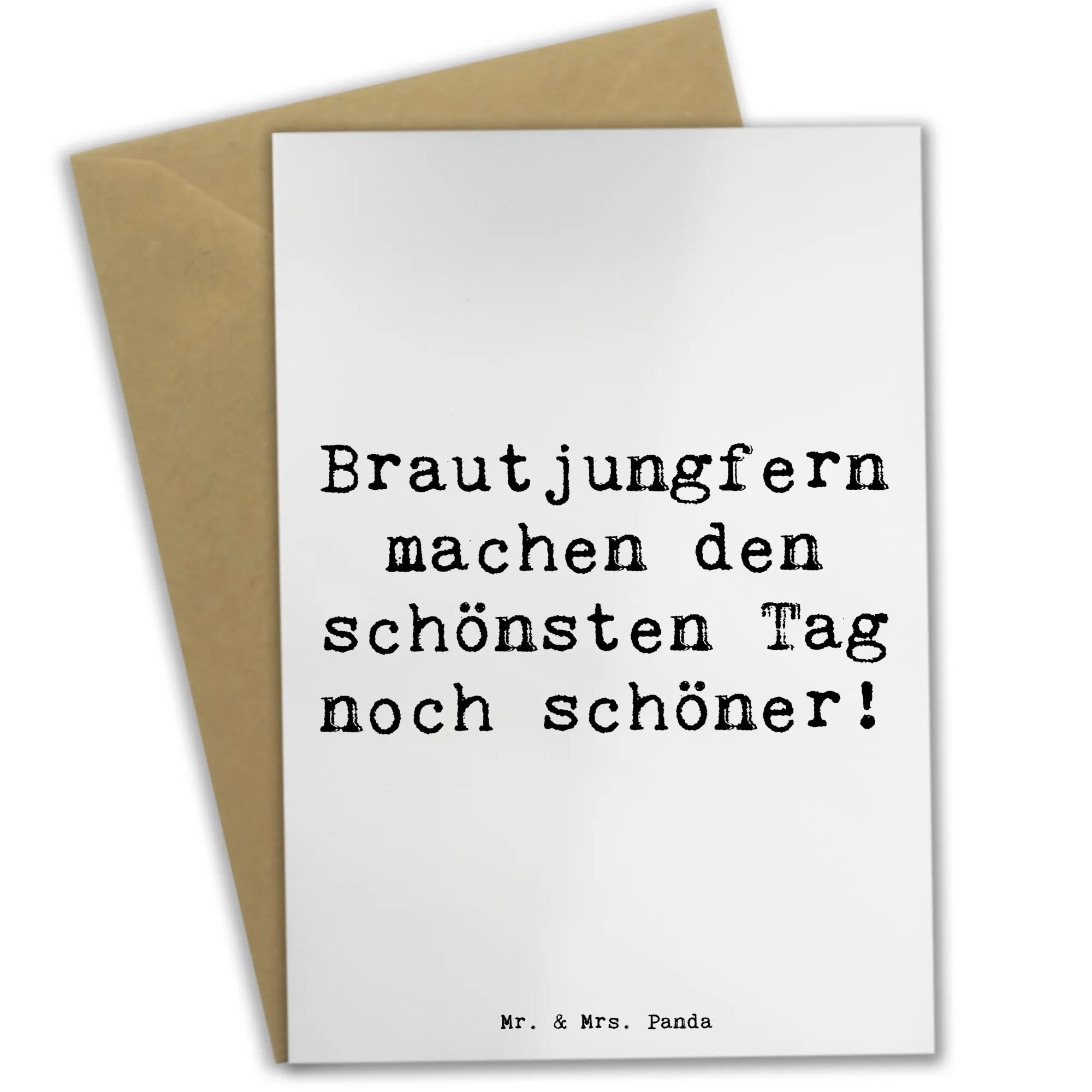 Du suchst das perfekte Geschenk für deine Brautjungfern oder möchtest einfach nur einen lieben Gruß zur Hochzeit verschicken? Dann ist die Grußkarte mit dem zauberhaften Motiv der Brautjungfern von Mr. & Mrs. Panda genau das Richtige für dich! Mit dem Herzen und einem Spruch, der sagt: „Brautjungfern machen den schönsten Tag noch schöner!“, wird diese Karte zu einem ganz besonderen Highlight auf jeder Hochzeitsfeier.